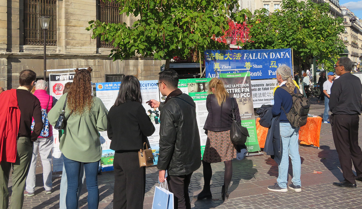 二零二二年九月十七日是欧洲遗产日,巴黎市中心夏特莱(Châtelet)街区游人很多。法轮功学员在这里举行活动,向人们介绍功法,揭露中共对法轮功学员的迫害,并呼吁停止迫害。