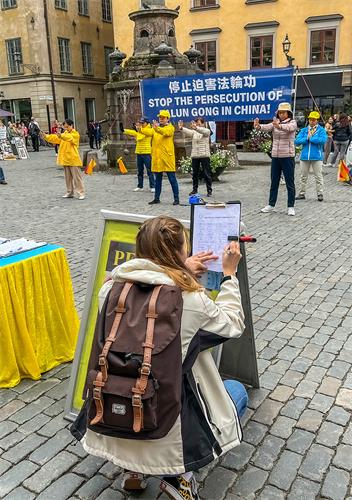【明慧网二零二二年九月二十七日】(明慧记者何平斯德哥尔摩报道)“非常感谢你们(法轮功学员)的努力和付出,这么多年你们在世界各地坚持不懈地反迫害,令人敬佩!以前我们都上当受骗了,误会了法轮功,现在明白了你们都是好人。”这是瑞典居民,香港华裔安(Ann)在诺贝尔博物馆前遇到法轮功学员时表达的肺腑之言,并表示向法轮功道歉。