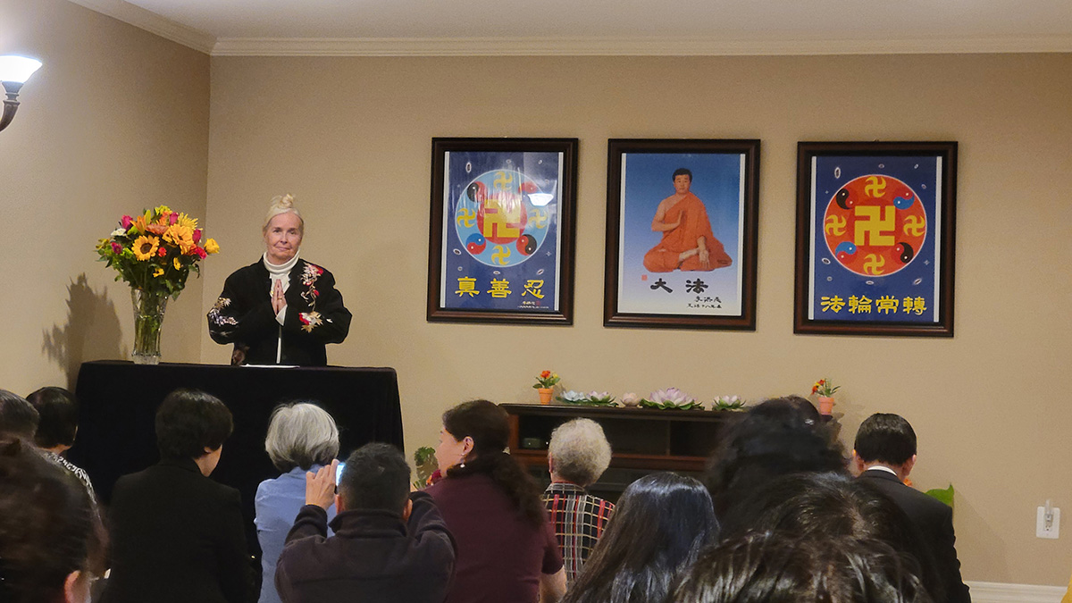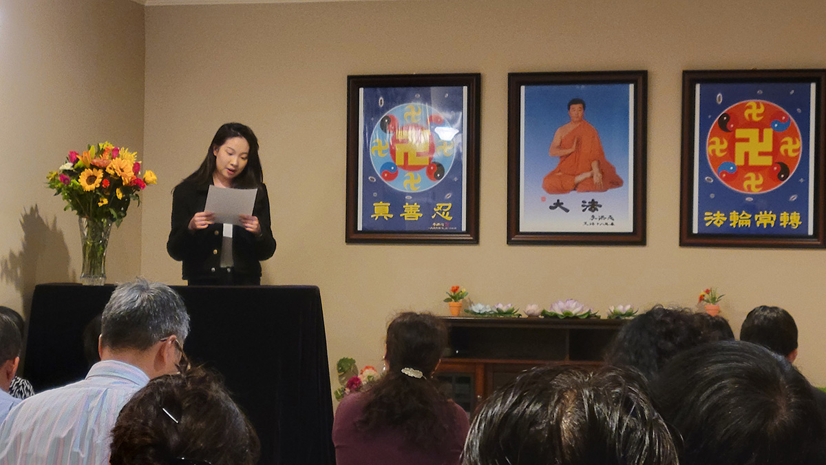 这次法会从下午一点半至下午五点,以中、英文双语举行,并有两种语言的同声翻译。二十名法轮功学员发言,年龄从二十岁至七十多岁不等,交流了他们各自在家庭中、工作中、洪法活动中的修炼心得。与会的学员在交流会结束后感觉受益良多。