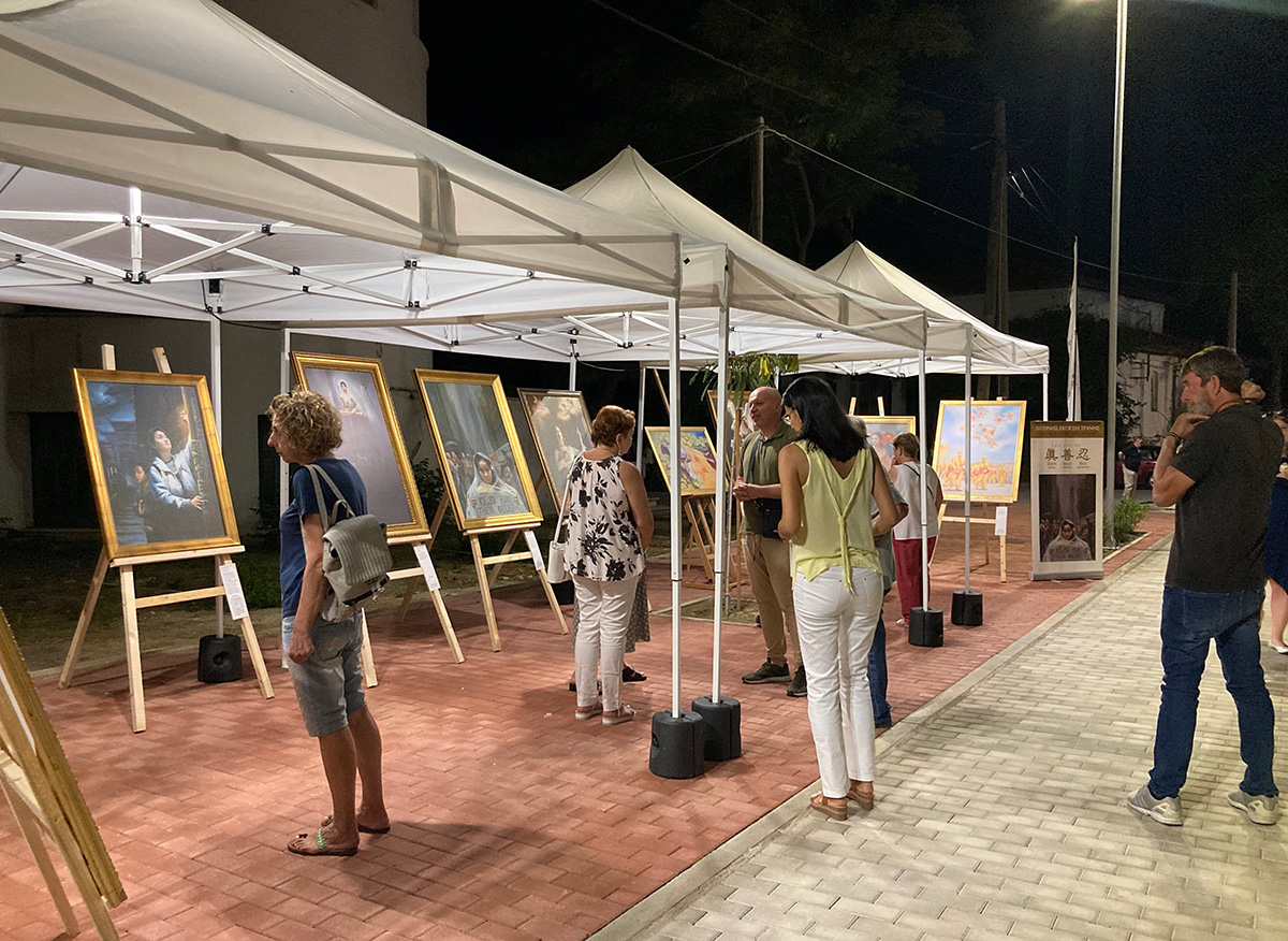 中文名为梁善、梁洁的希腊夫妻,与双方的父母来度假。看了画作后,梁洁说:“虽然我不了解法轮大法,但我认识一些在中国秘密信神的人,他们受到了打压。”
