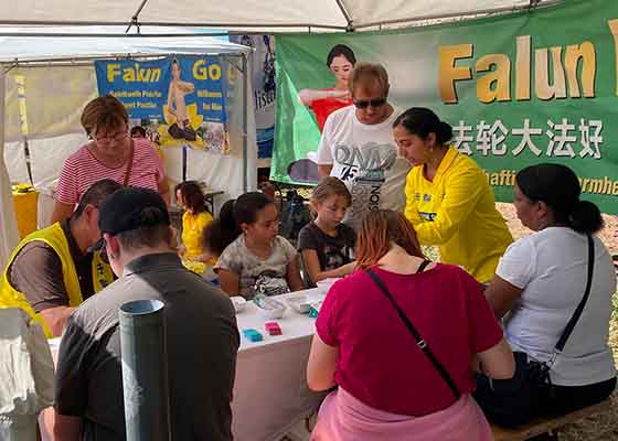 九月二日至四日,在德国中部哈瑙市的传统民间节日上,法轮功学员通过展示功法、折叠小莲花和讲真相,向民众介绍法轮功。