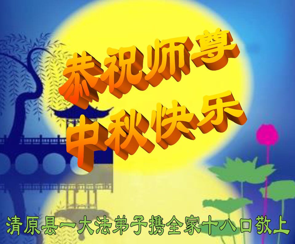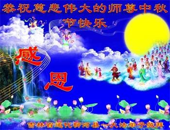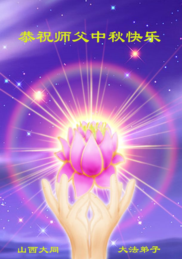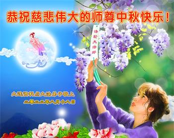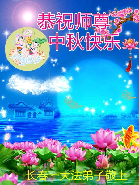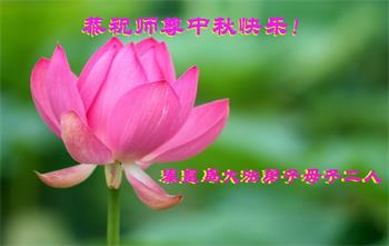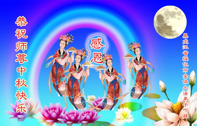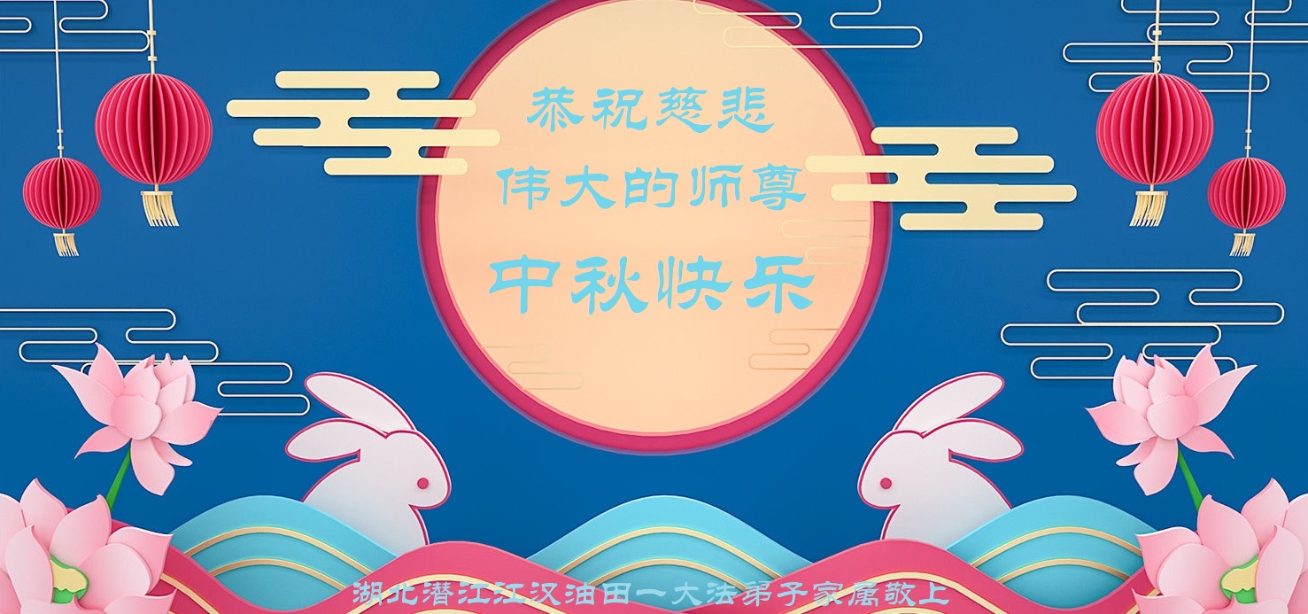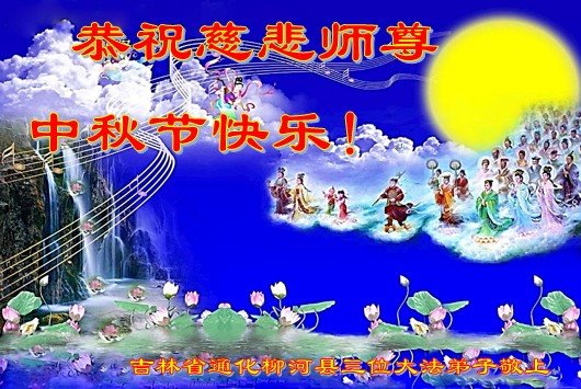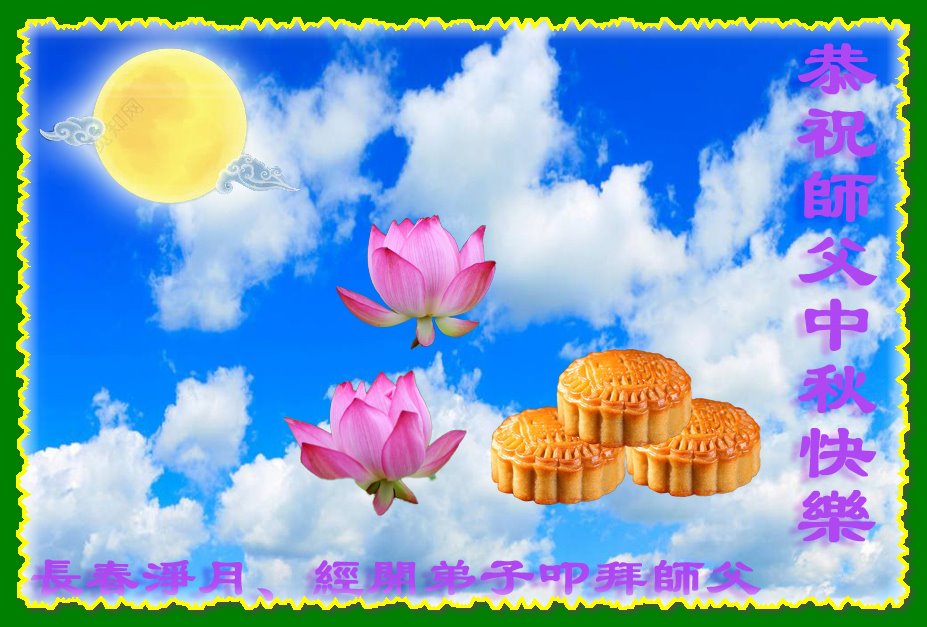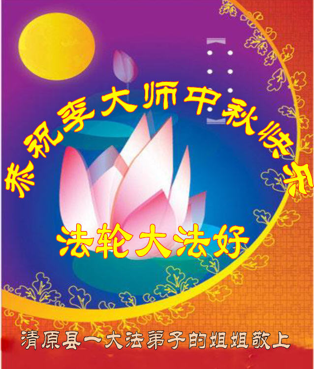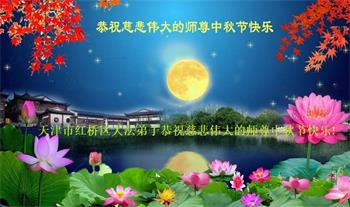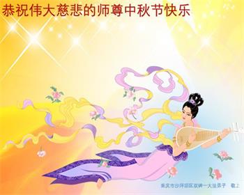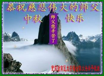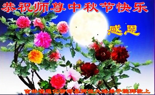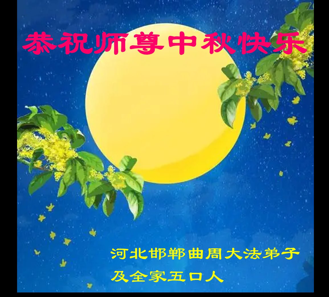 是师父的巨大承受才使我们又迎来了一个温馨的中秋。弟子们怀着感恩的心恭祝恩师中秋佳节快乐!历史走到今天的关键时刻,诚念“九字真言”而逢凶化吉、遇难呈祥的真实例子,证实了法轮大法在人间的神奇,破除了中共的欺世谎言。弟子每一个前進的步伐都浸透着师父的心血,我们一定更加努力,踏踏实实的修好自己,抓紧救度众生,完成史前大愿!