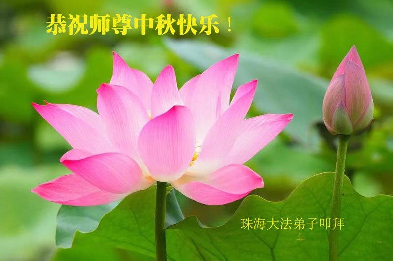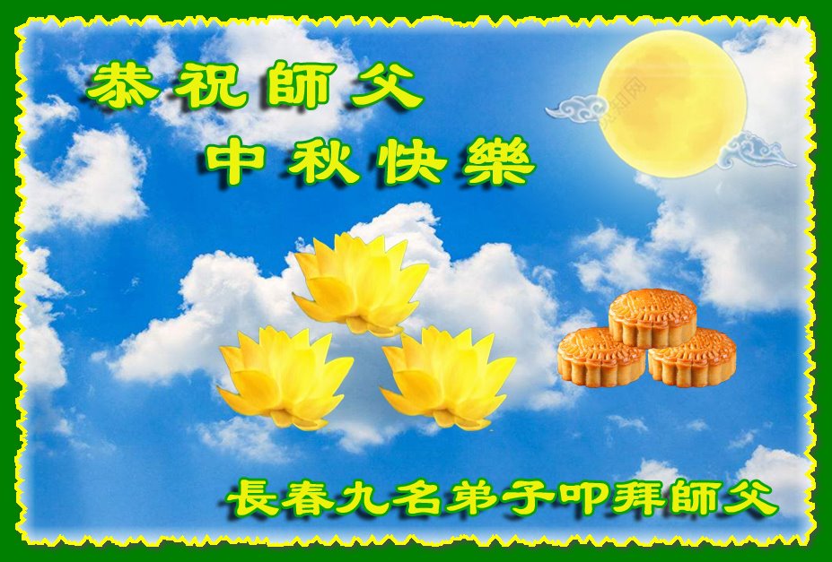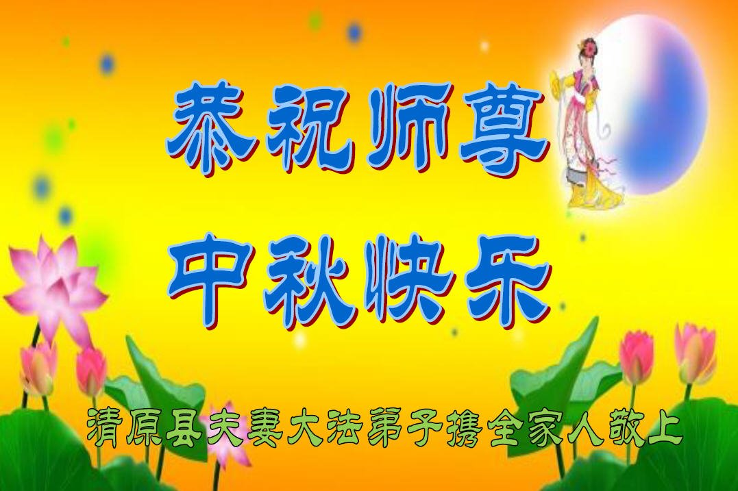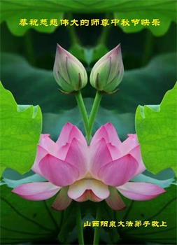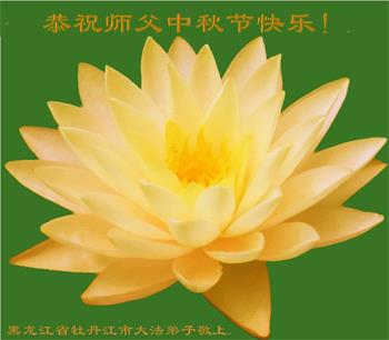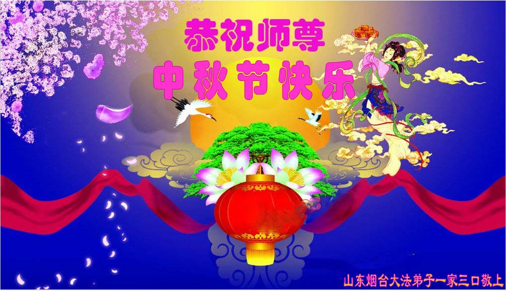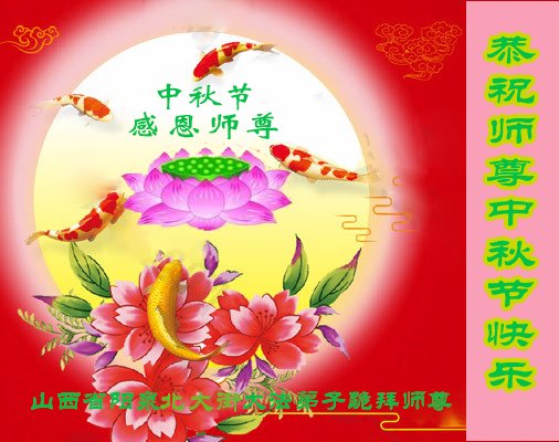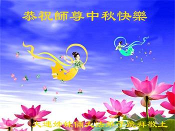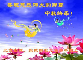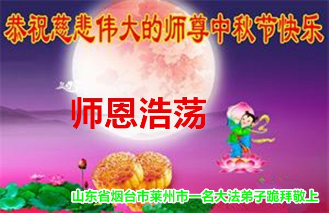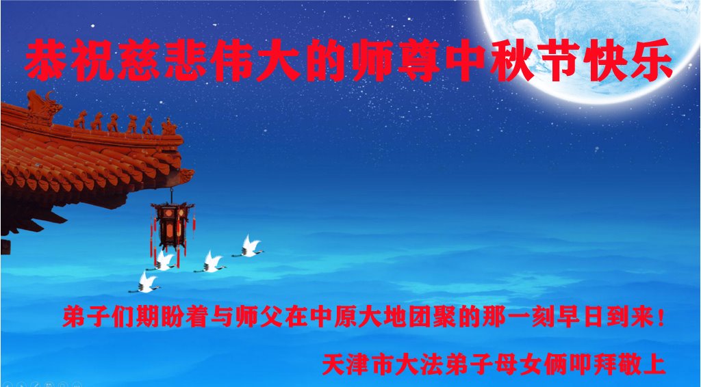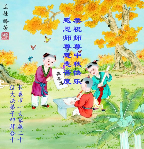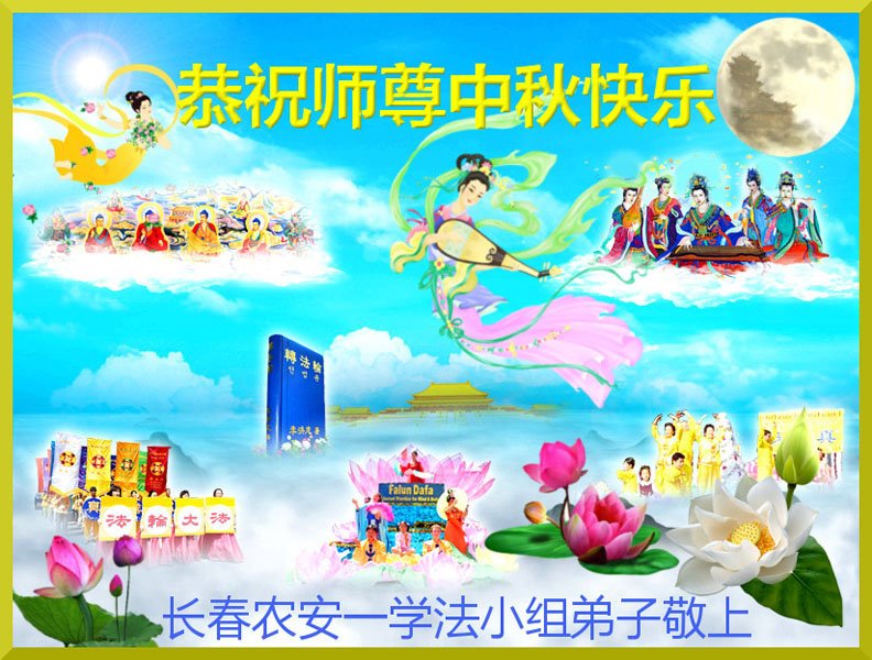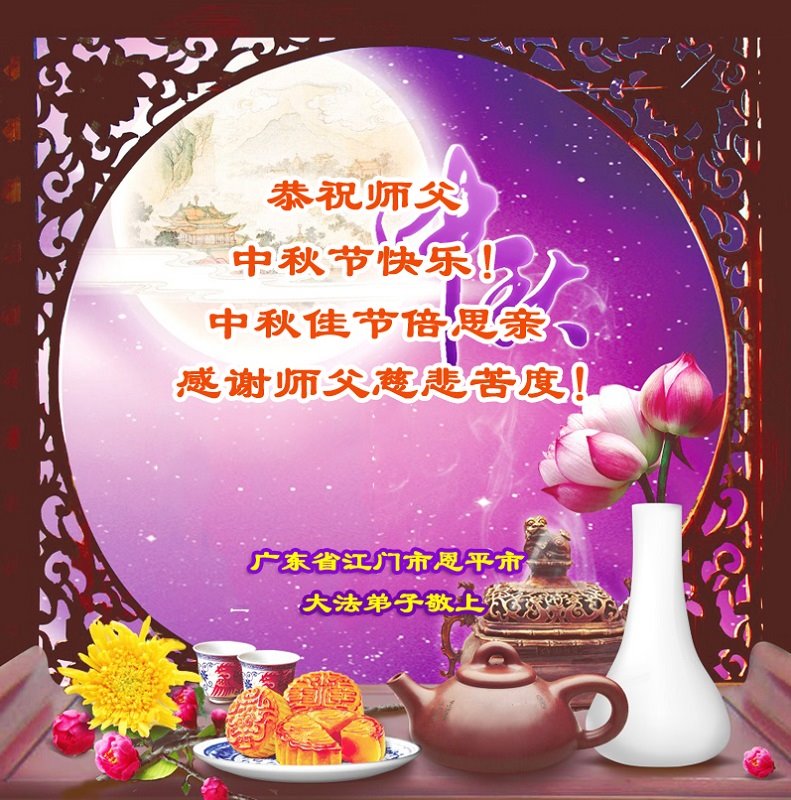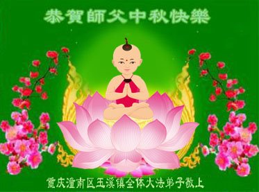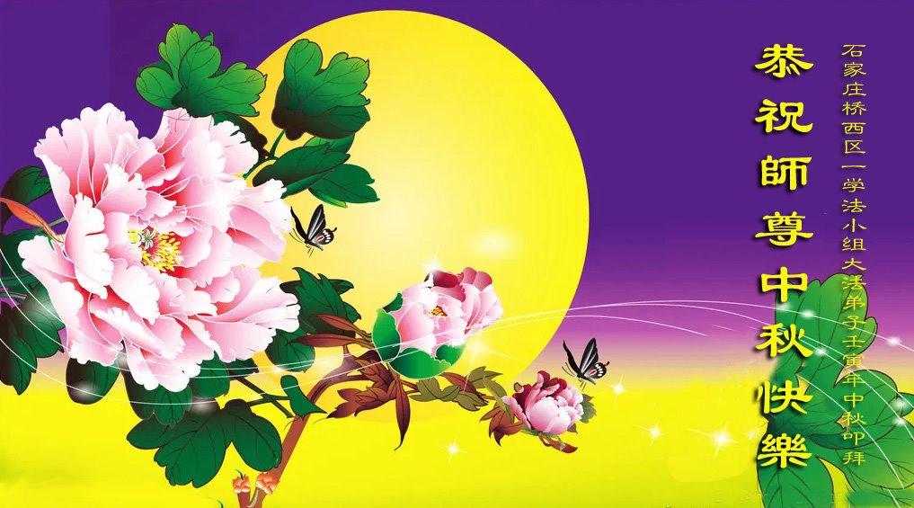 是师父的巨大承受才使我们又迎来了一个温馨的中秋。弟子们怀着感恩的心恭祝恩师中秋佳节快乐!历史走到今天的关键时刻,诚念“九字真言”而逢凶化吉、遇难呈祥的真实例子,证实了法轮大法在人间的神奇,破除了中共的欺世谎言。弟子每一个前進的步伐都浸透着师父的心血,我们一定更加努力,踏踏实实的修好自己,抓紧救度众生,完成史前大愿!