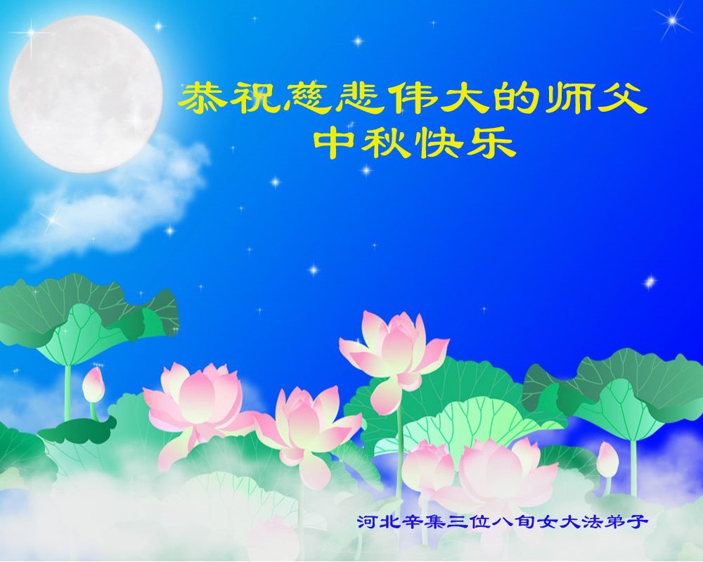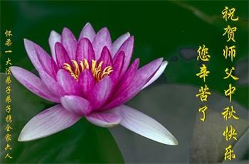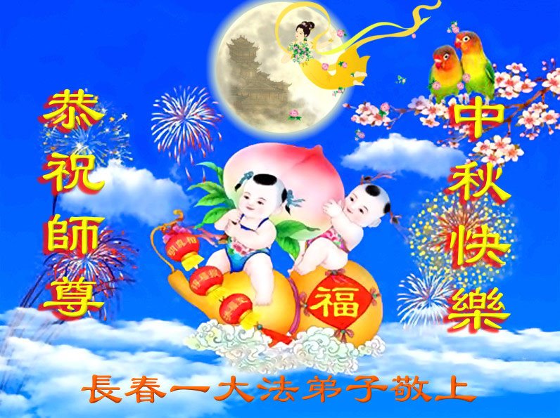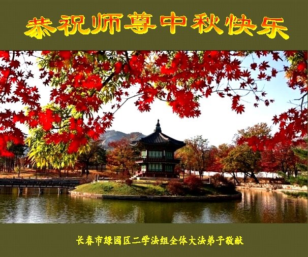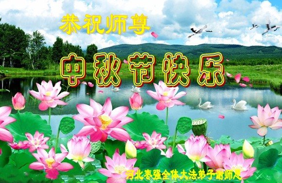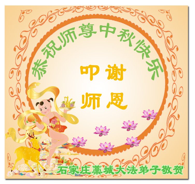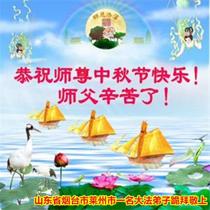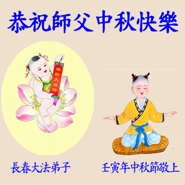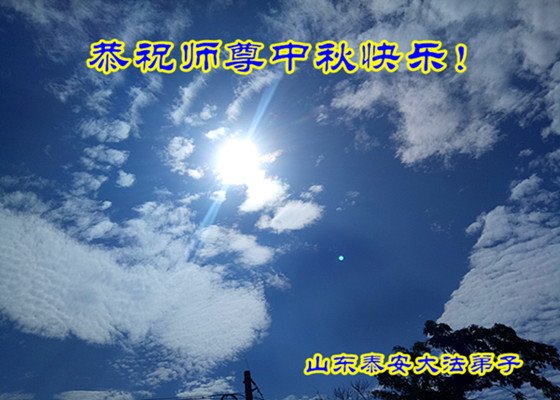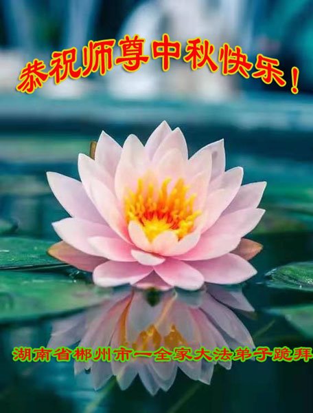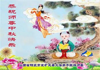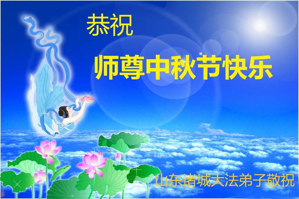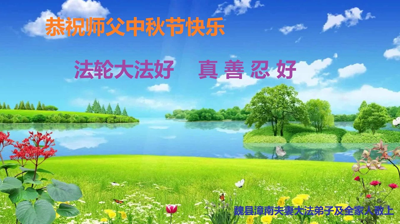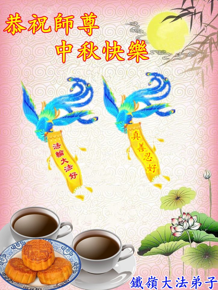 是师父的巨大承受才使我们又迎来了一个温馨的中秋。弟子们怀着感恩的心恭祝恩师中秋佳节快乐!历史走到今天的关键时刻,诚念“九字真言”而逢凶化吉、遇难呈祥的真实例子,证实了法轮大法在人间的神奇,破除了中共的欺世谎言。弟子每一个前進的步伐都浸透着师父的心血,我们一定更加努力,踏踏实实的修好自己,抓紧救度众生,完成史前大愿!