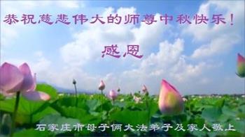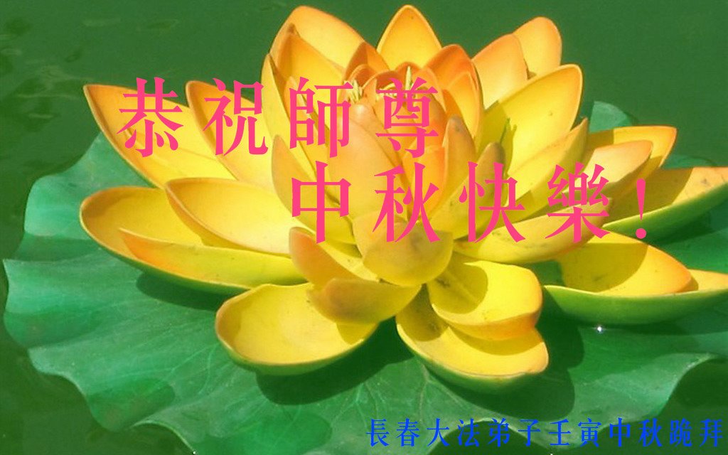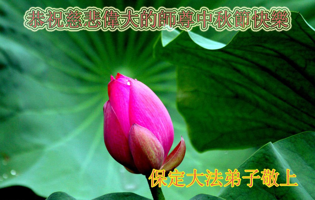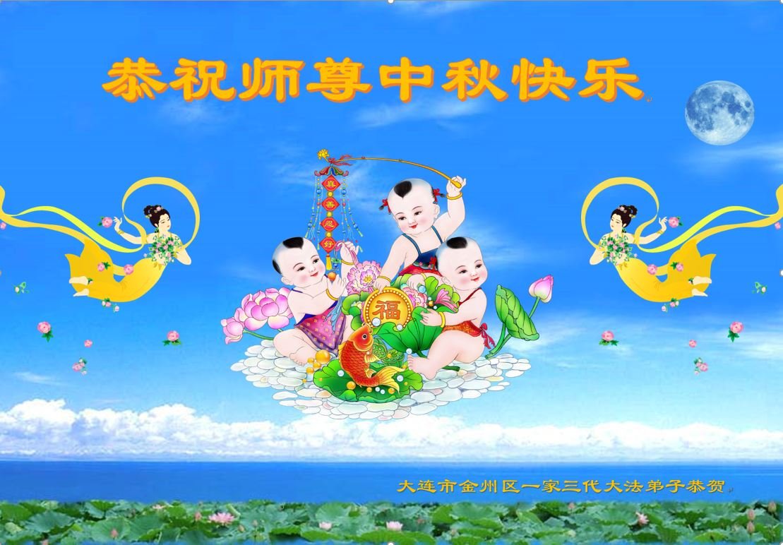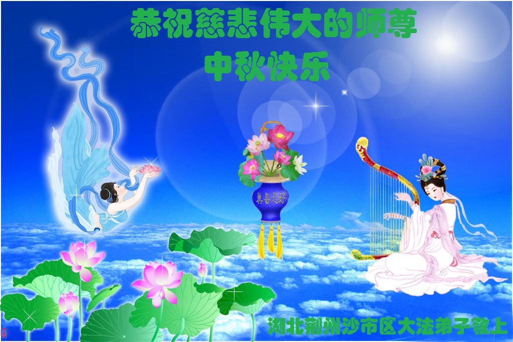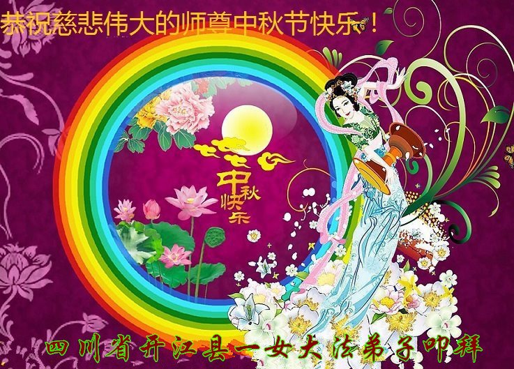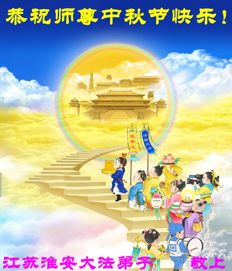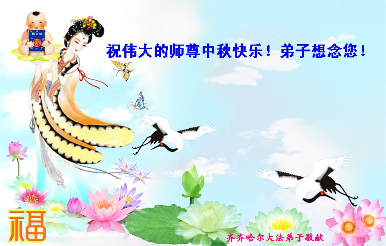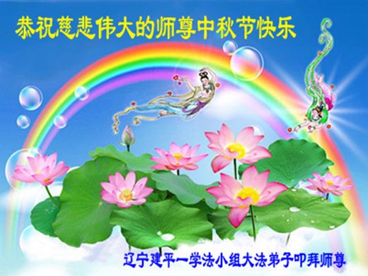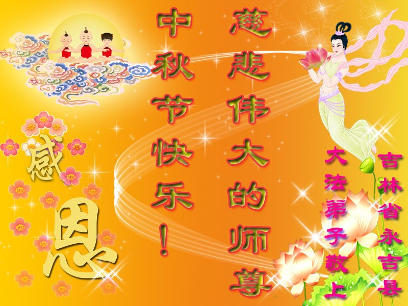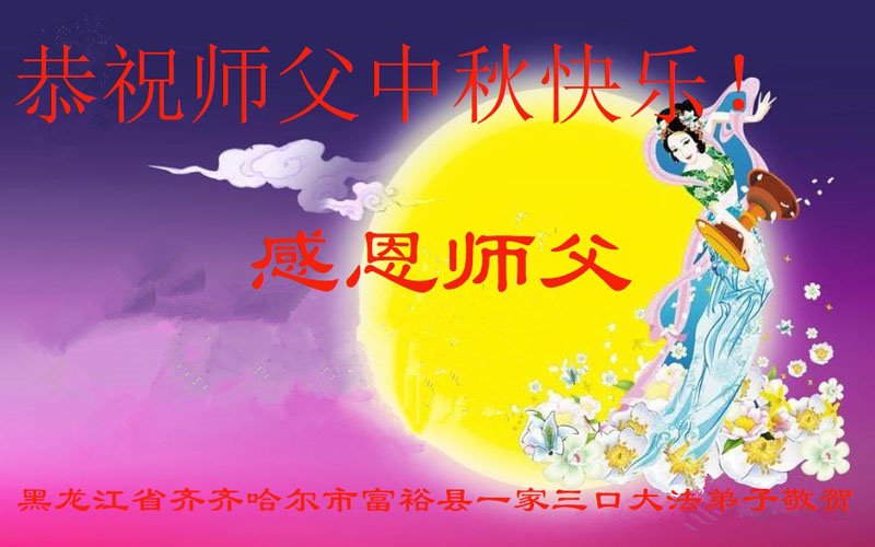 是师父的巨大承受才使我们又迎来了一个温馨的中秋。弟子们怀着感恩的心恭祝恩师中秋佳节快乐!历史走到今天的关键时刻,诚念“九字真言”而逢凶化吉、遇难呈祥的真实例子,证实了法轮大法在人间的神奇,破除了中共的欺世谎言。弟子每一个前進的步伐都浸透着师父的心血,我们一定更加努力,踏踏实实的修好自己,抓紧救度众生,完成史前大愿!