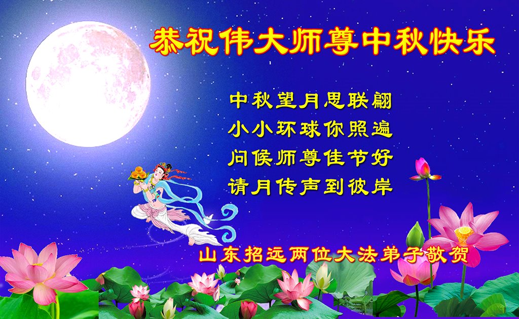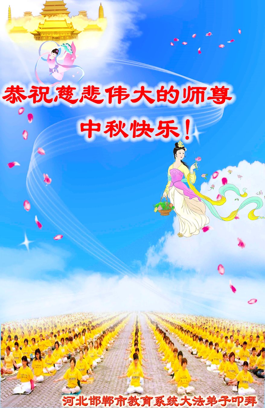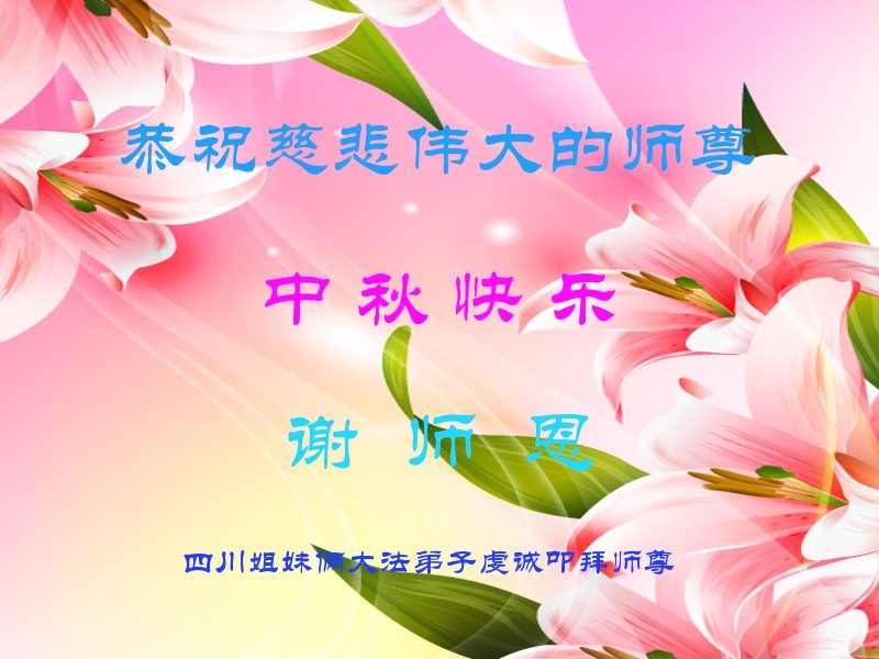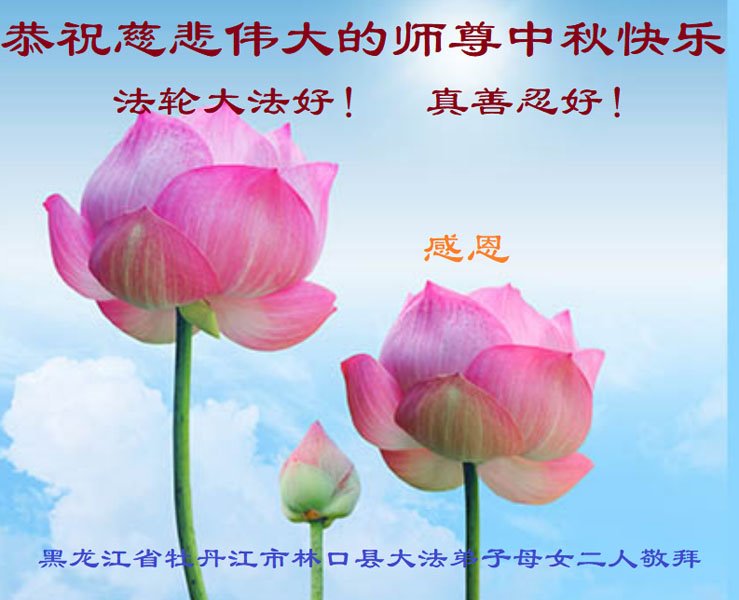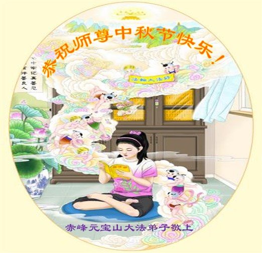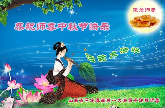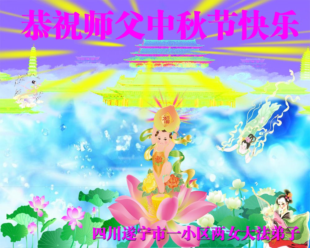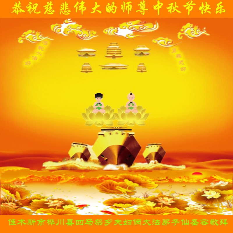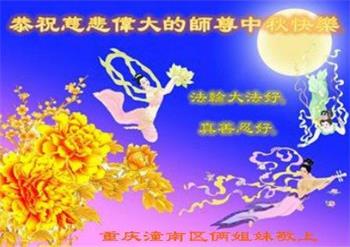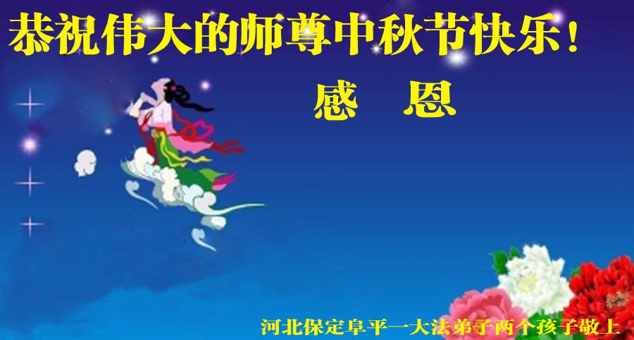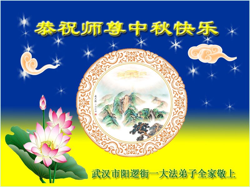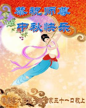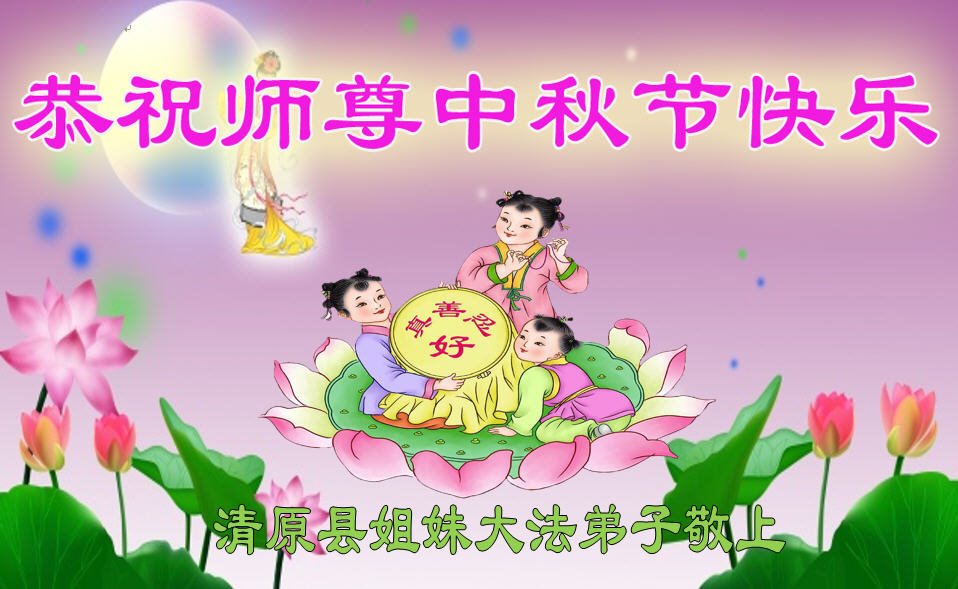 是师父的巨大承受才使我们又迎来了一个温馨的中秋。弟子们怀着感恩的心恭祝恩师中秋佳节快乐!历史走到今天的关键时刻,诚念“九字真言”而逢凶化吉、遇难呈祥的真实例子,证实了法轮大法在人间的神奇,破除了中共的欺世谎言。弟子每一个前進的步伐都浸透着师父的心血,我们一定更加努力,踏踏实实的修好自己,抓紧救度众生,完成史前大愿!