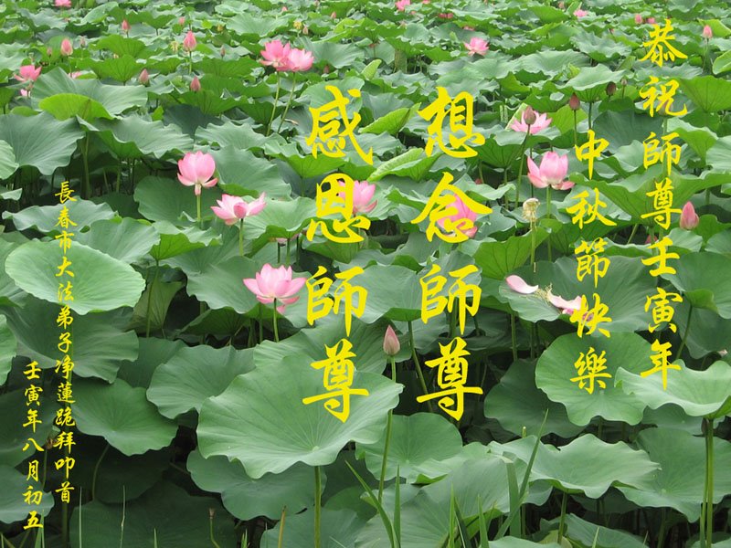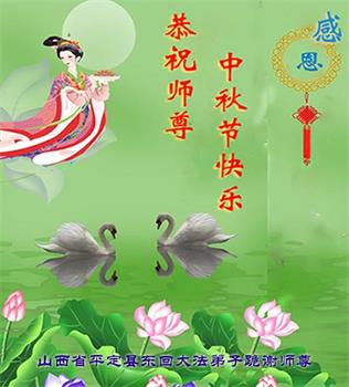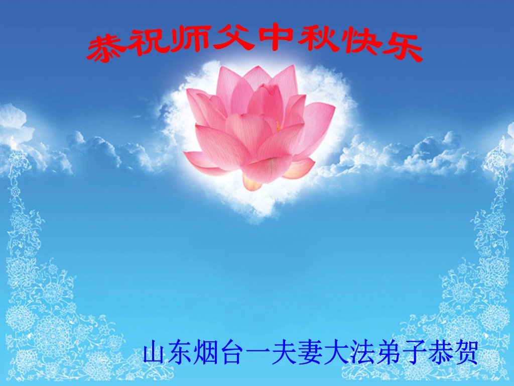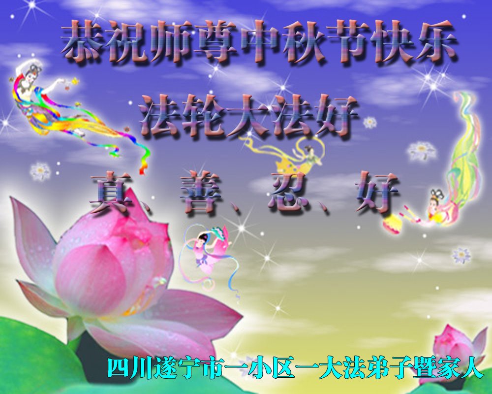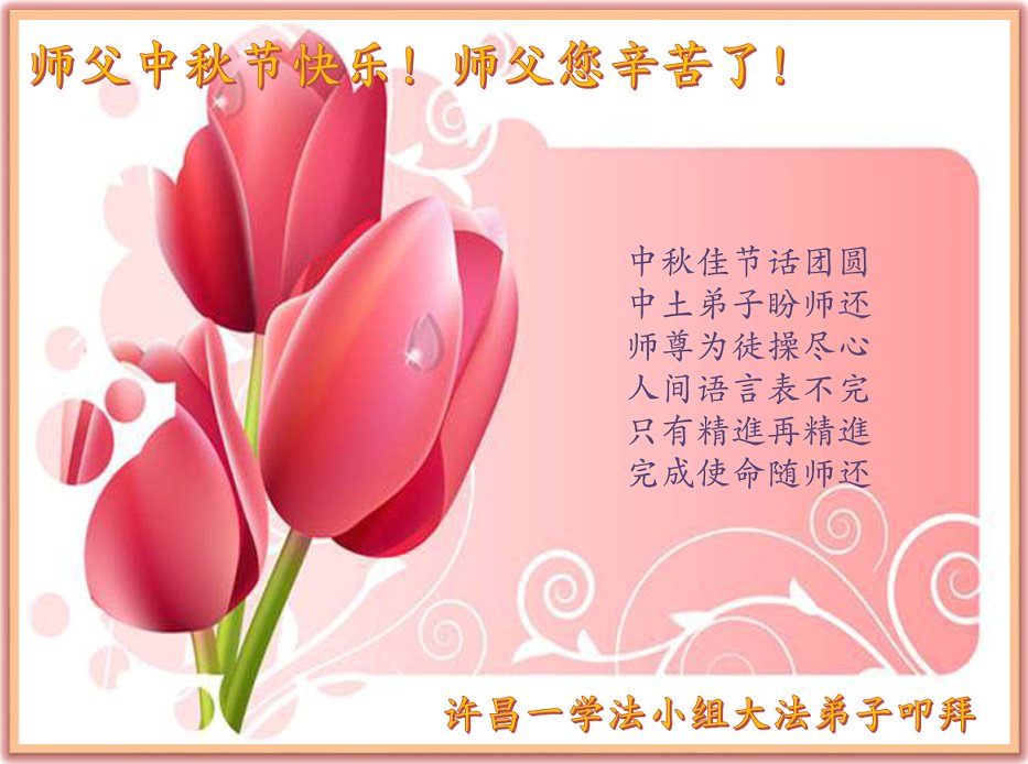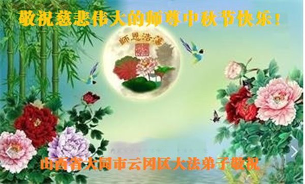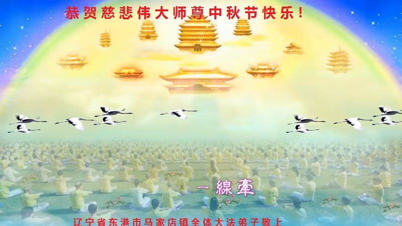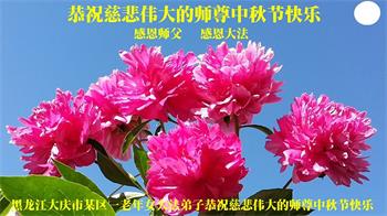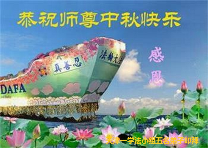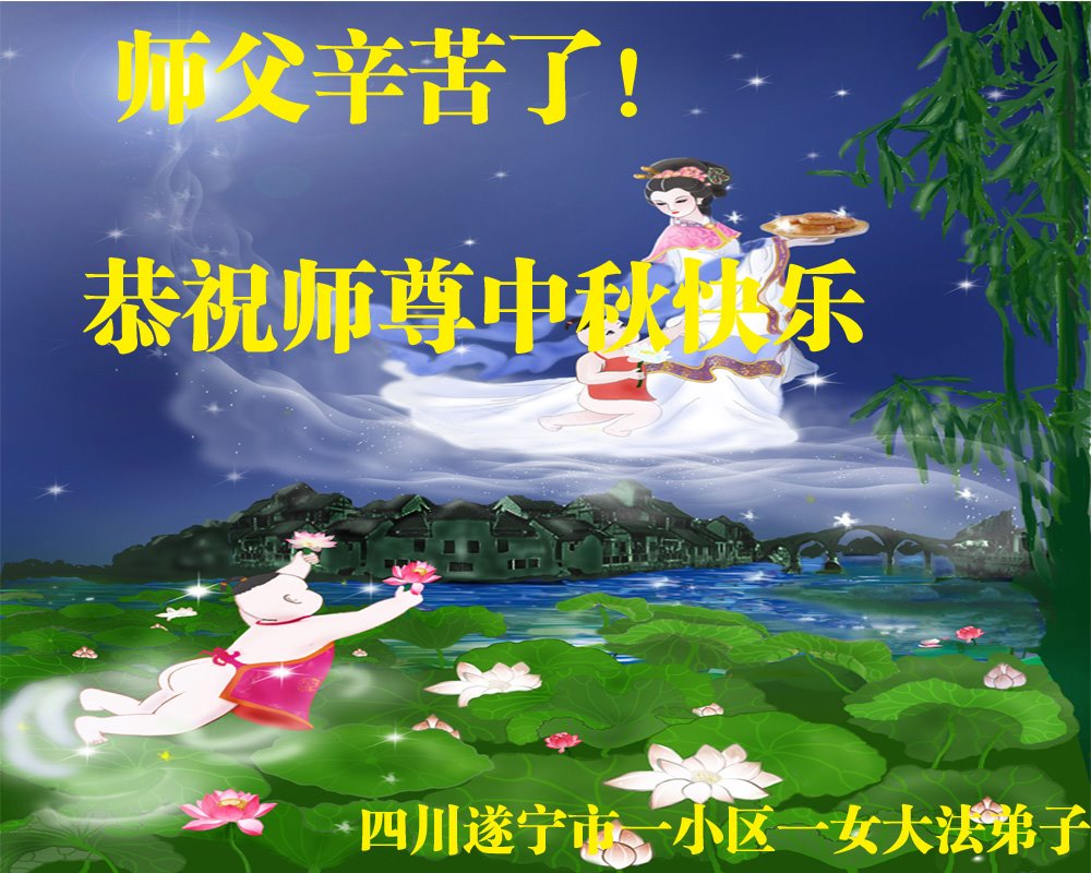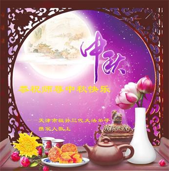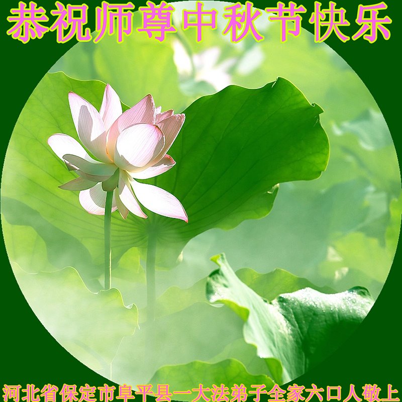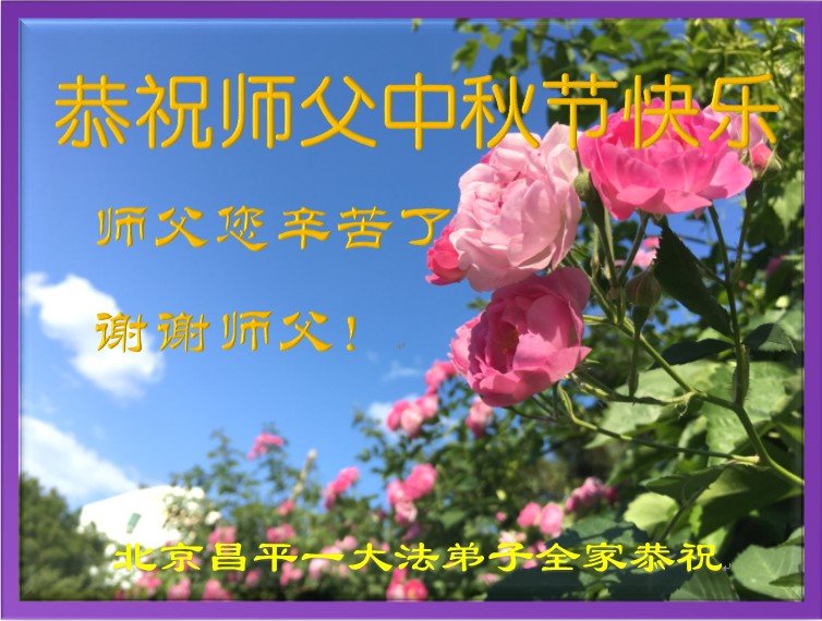 是师父的巨大承受才使我们又迎来了一个温馨的中秋。弟子们怀着感恩的心恭祝恩师中秋佳节快乐!历史走到今天的关键时刻,诚念“九字真言”而逢凶化吉、遇难呈祥的真实例子,证实了法轮大法在人间的神奇,破除了中共的欺世谎言。弟子每一个前進的步伐都浸透着师父的心血,我们一定更加努力,踏踏实实的修好自己,抓紧救度众生,完成史前大愿!