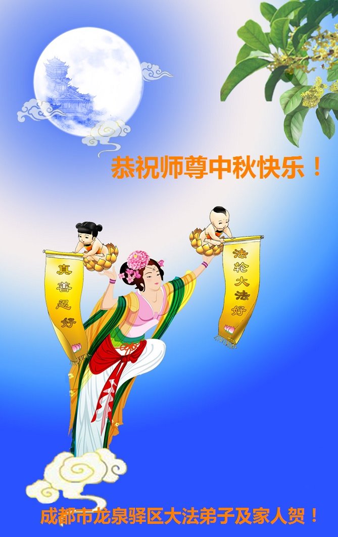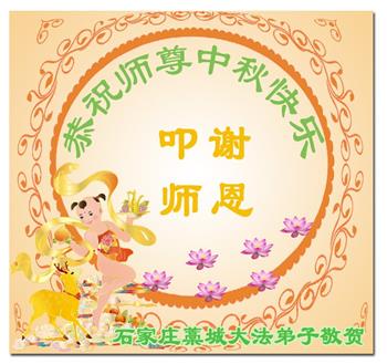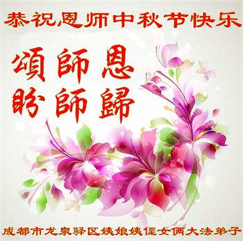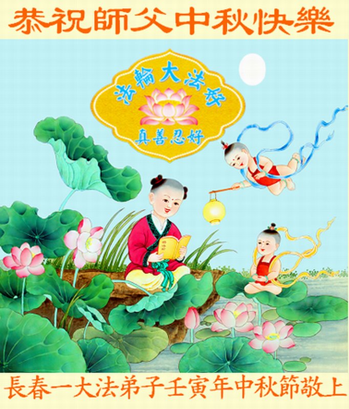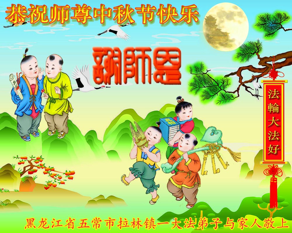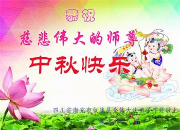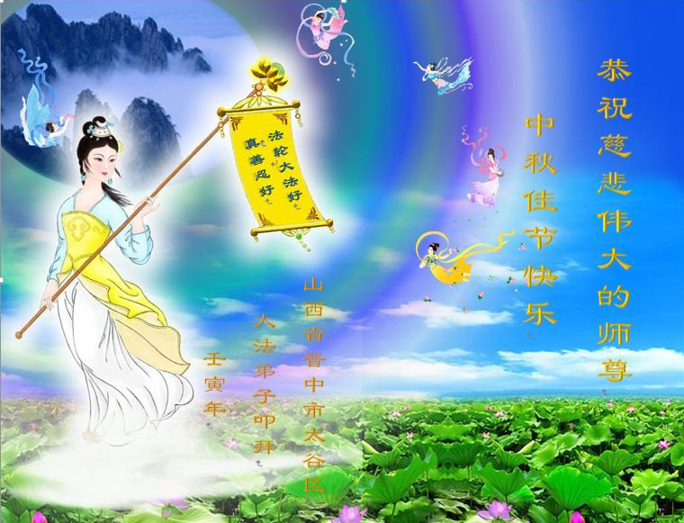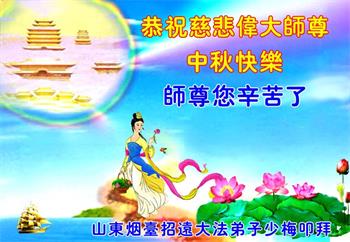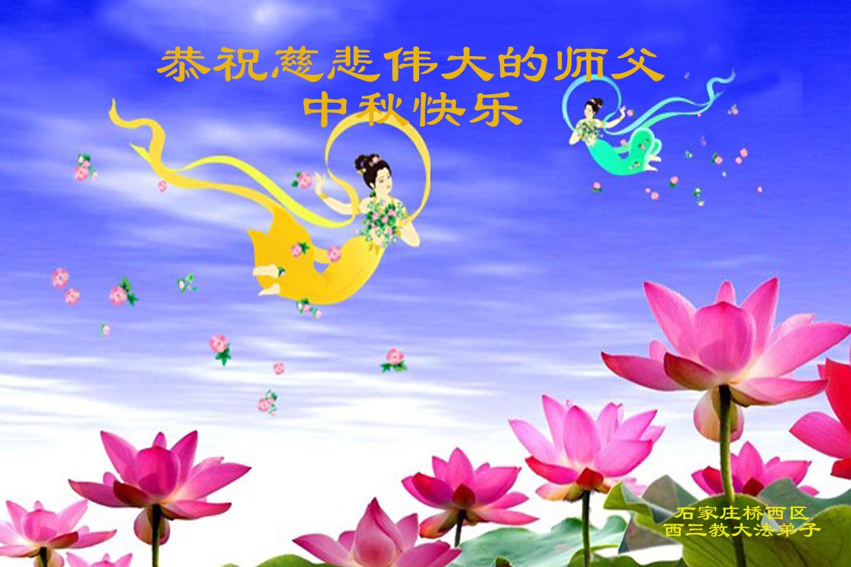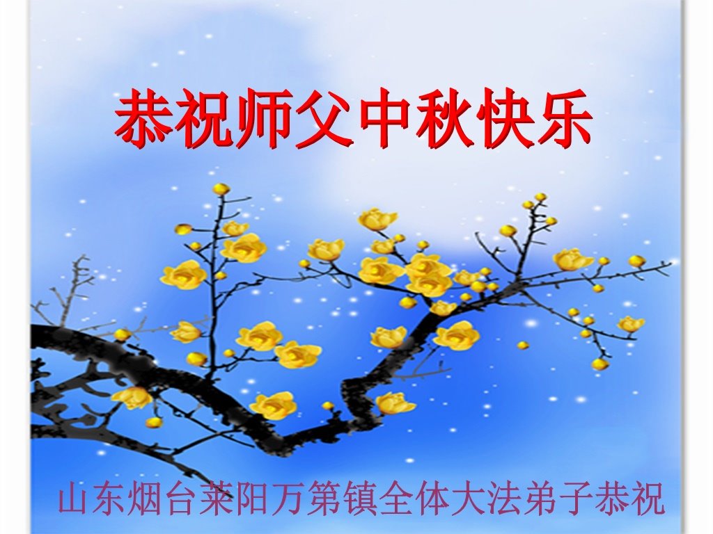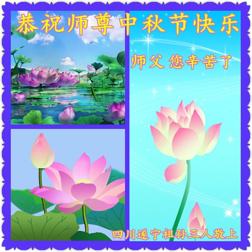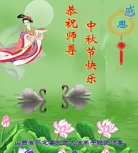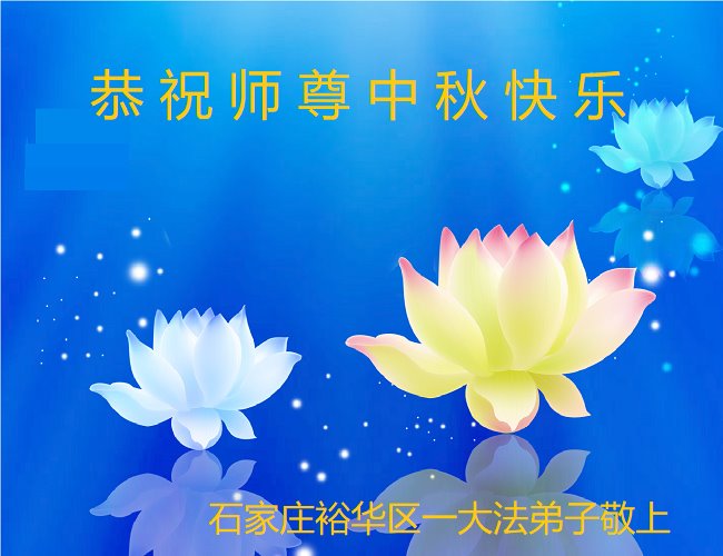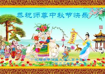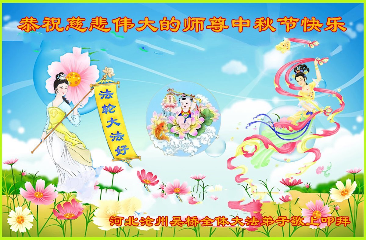 是师父的巨大承受才使我们又迎来了一个温馨的中秋。弟子们怀着感恩的心恭祝恩师中秋佳节快乐!历史走到今天的关键时刻,诚念“九字真言”而逢凶化吉、遇难呈祥的真实例子,证实了法轮大法在人间的神奇,破除了中共的欺世谎言。弟子每一个前進的步伐都浸透着师父的心血,我们一定更加努力,踏踏实实的修好自己,抓紧救度众生,完成史前大愿!