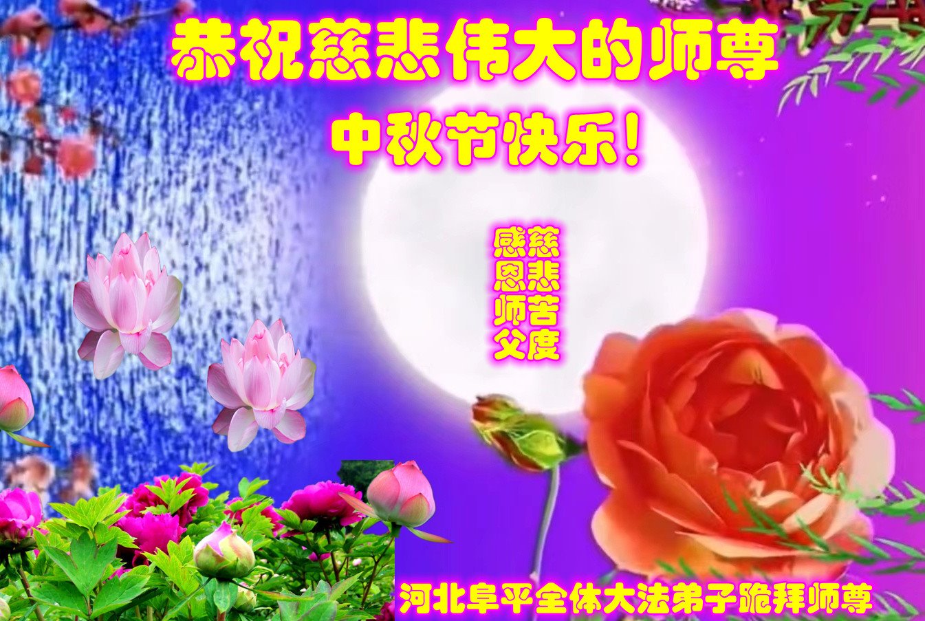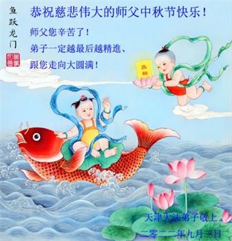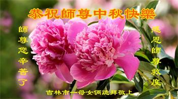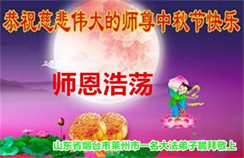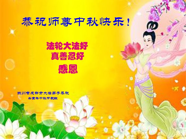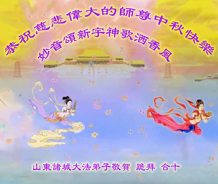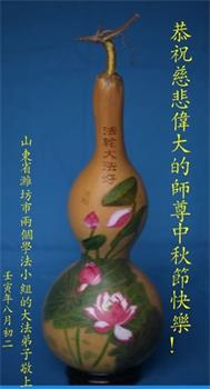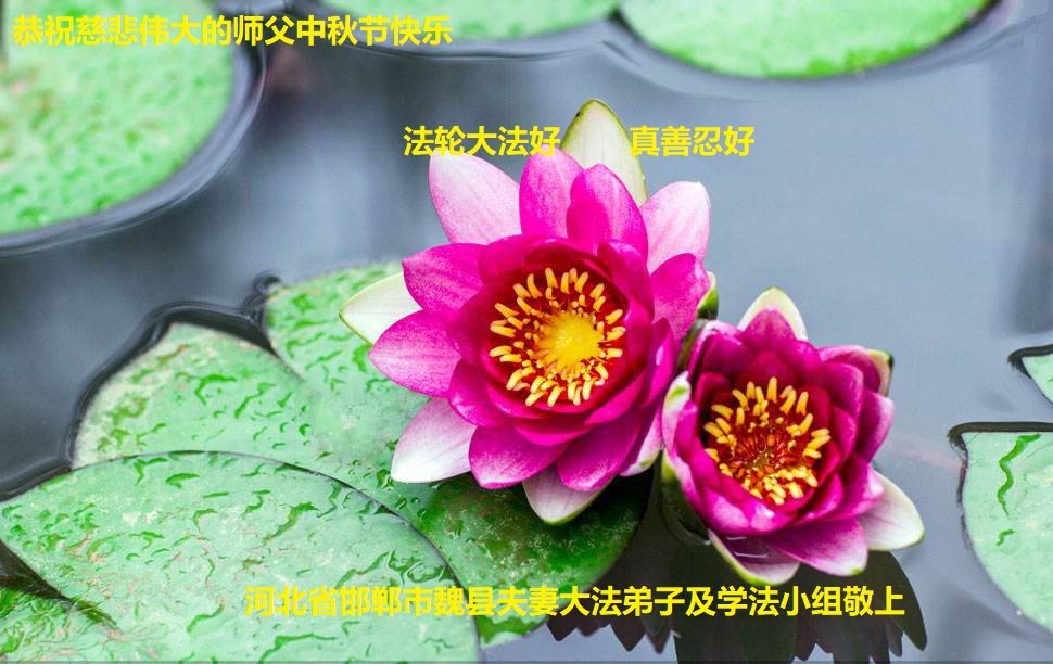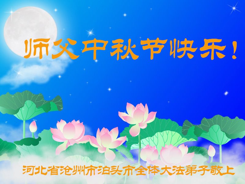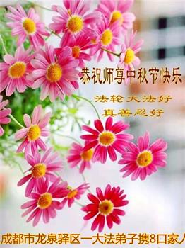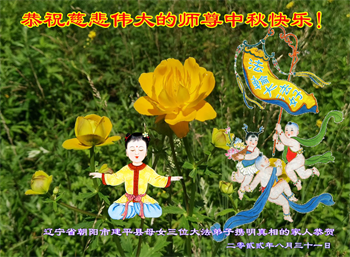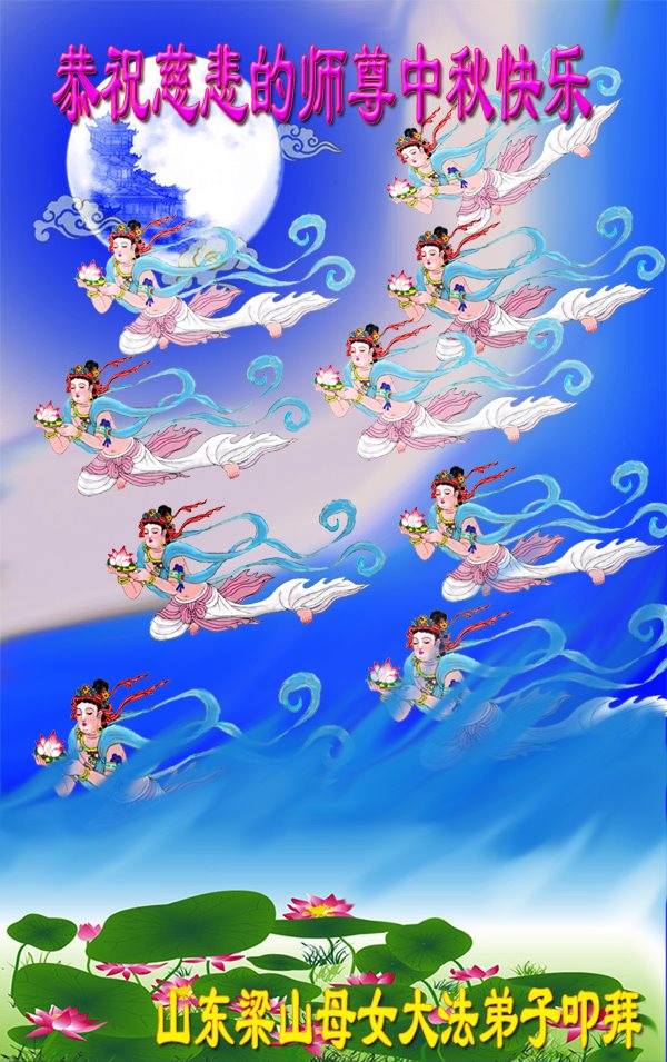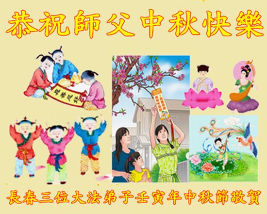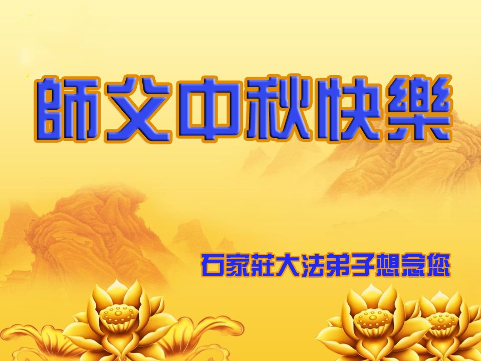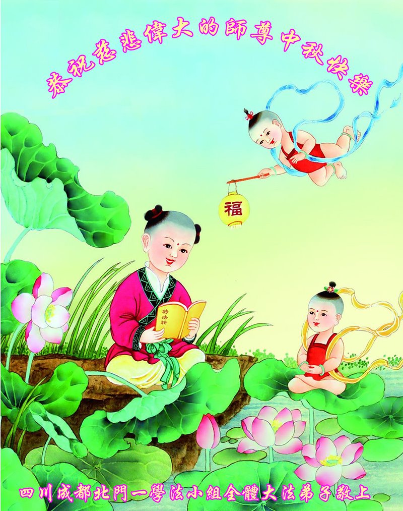 是师父的巨大承受才使我们又迎来了一个温馨的中秋。弟子们怀着感恩的心恭祝恩师中秋佳节快乐!历史走到今天的关键时刻,诚念“九字真言”而逢凶化吉、遇难呈祥的真实例子,证实了法轮大法在人间的神奇,破除了中共的欺世谎言。弟子每一个前進的步伐都浸透着师父的心血,我们一定更加努力,踏踏实实的修好自己,抓紧救度众生,完成史前大愿!