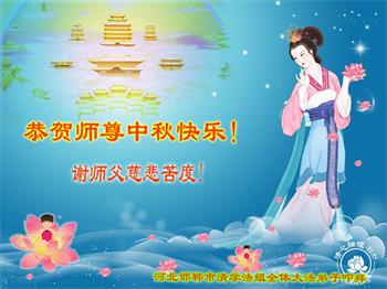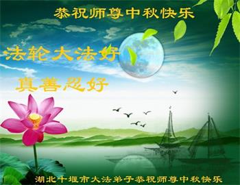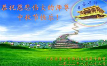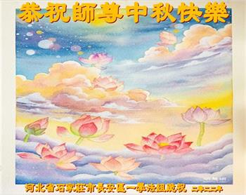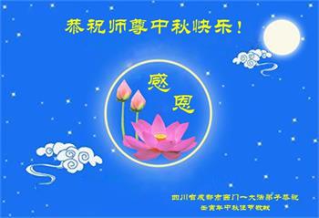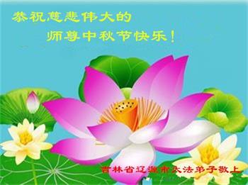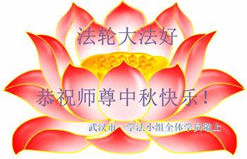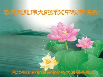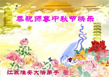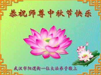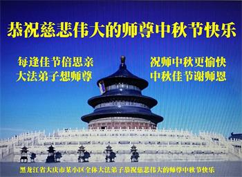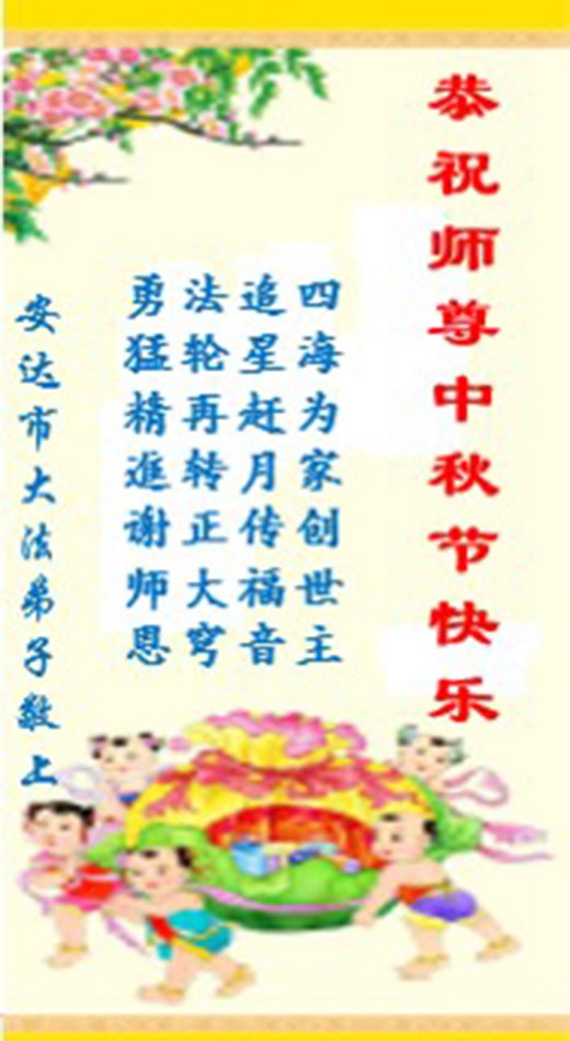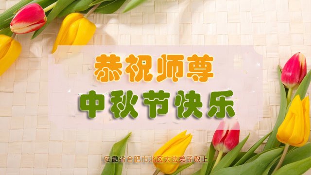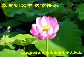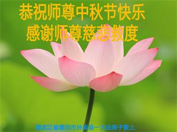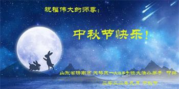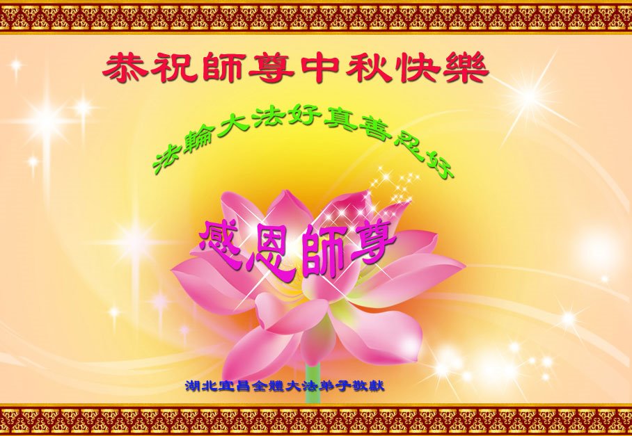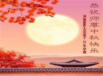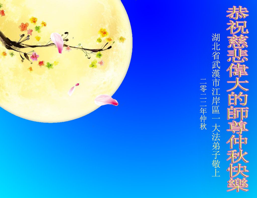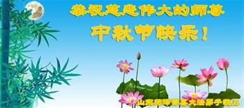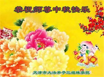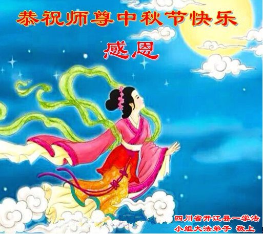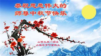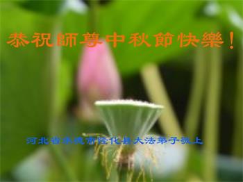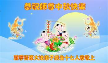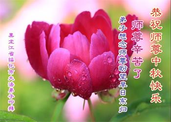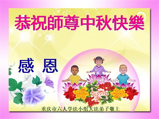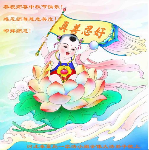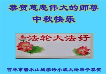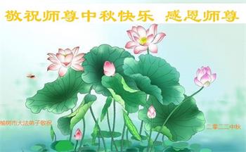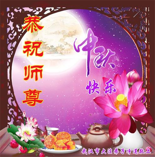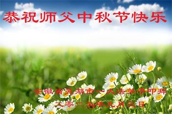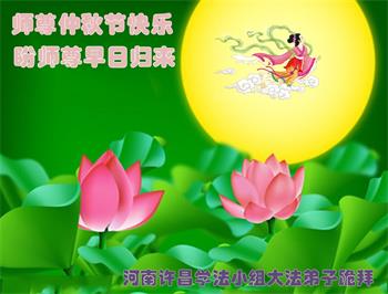 湖北省黄冈市一学法小组大法弟子在贺词中说:“月到中秋分外明,每逢佳节倍思亲。在这美好的时刻,我们十分想念师尊,伟大的师尊所承受的、付出的,弟子不知道用何语言来形容表达。在正法最后时刻,唯弟子勇猛精進,遵师言,做好三件事,快救人,多救人。”