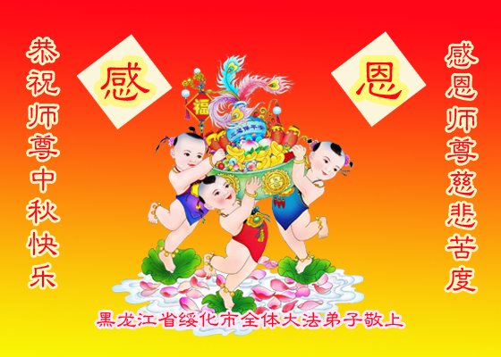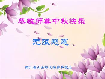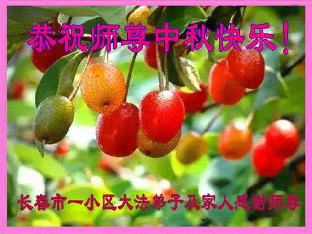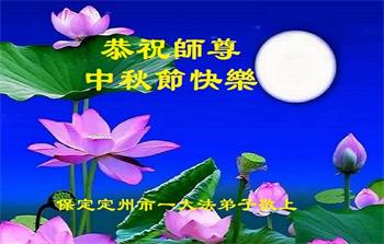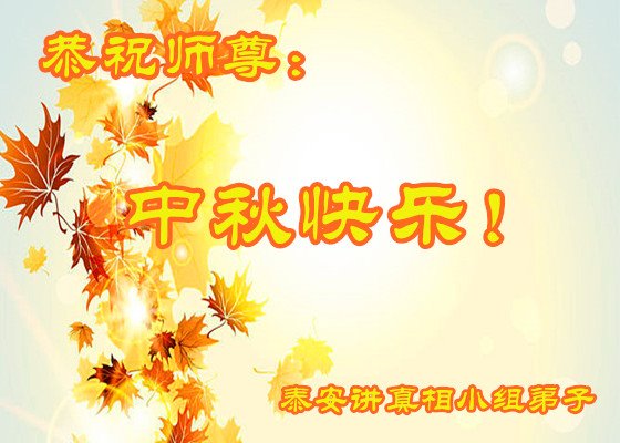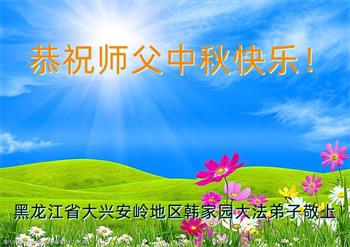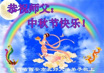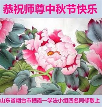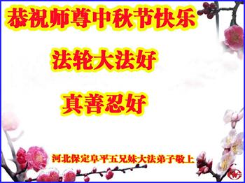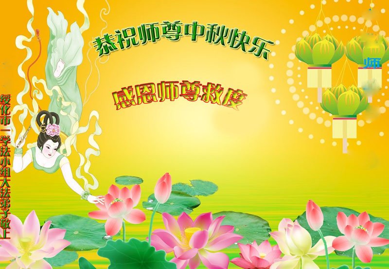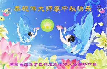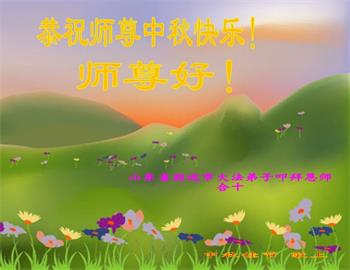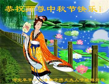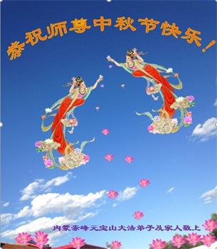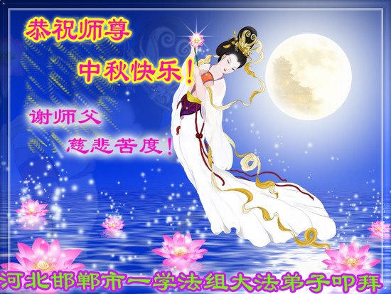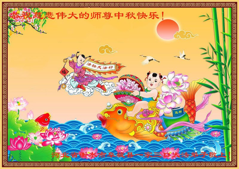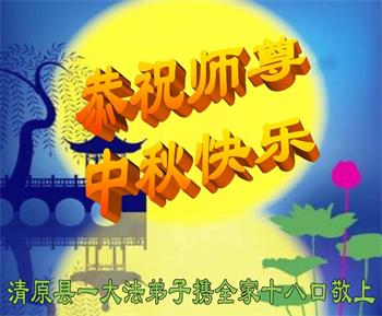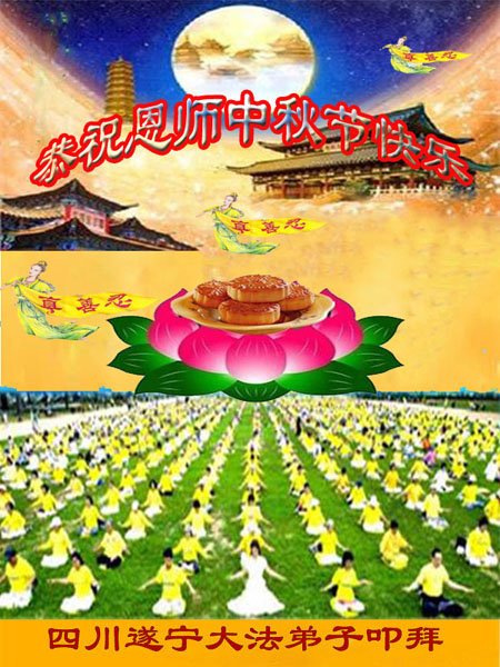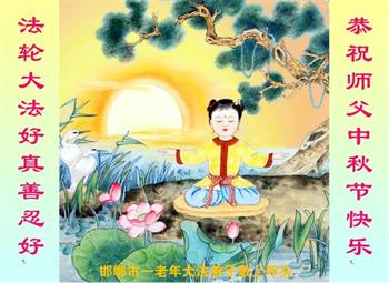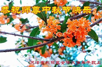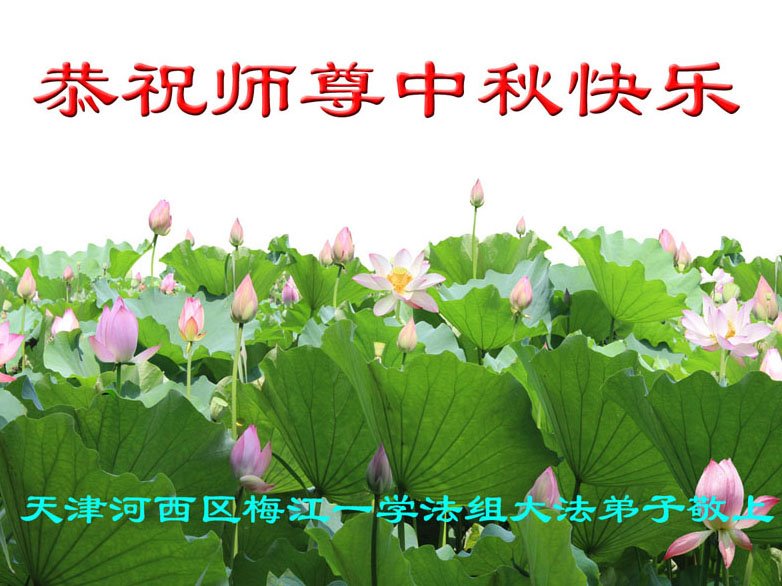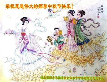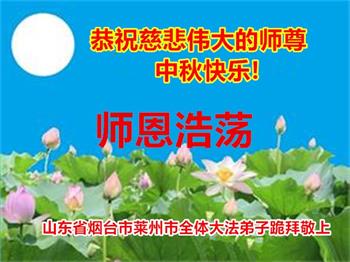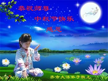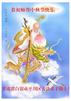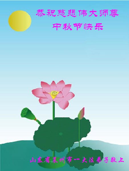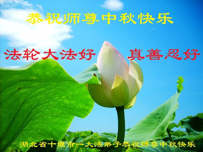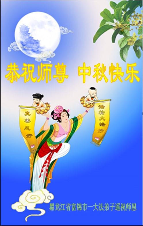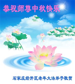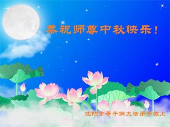 湖北省黄冈市一学法小组大法弟子在贺词中说:“月到中秋分外明,每逢佳节倍思亲。在这美好的时刻,我们十分想念师尊,伟大的师尊所承受的、付出的,弟子不知道用何语言来形容表达。在正法最后时刻,唯弟子勇猛精進,遵师言,做好三件事,快救人,多救人。”