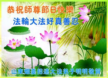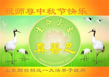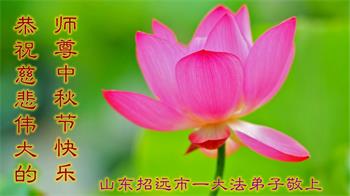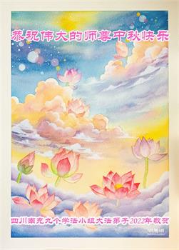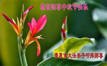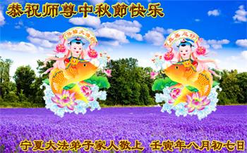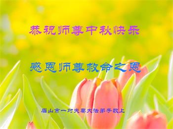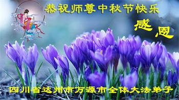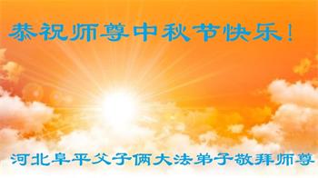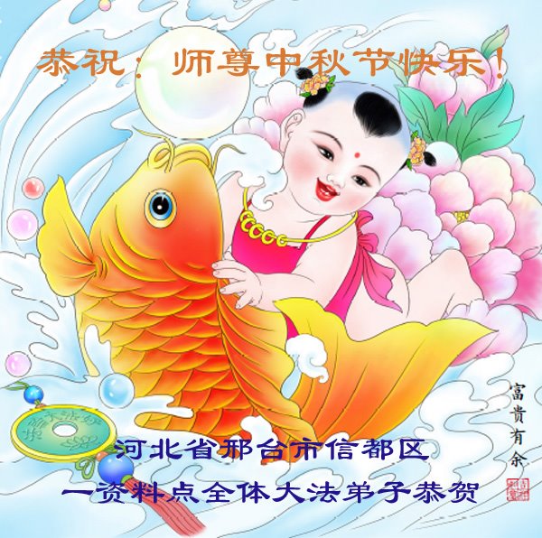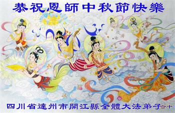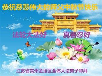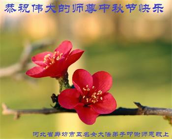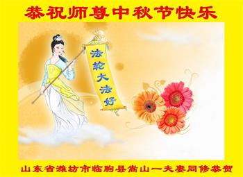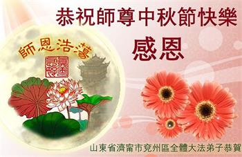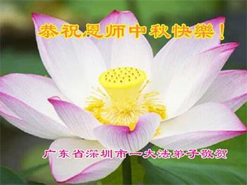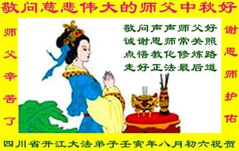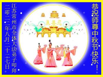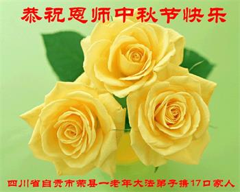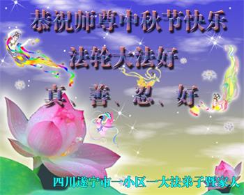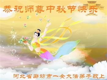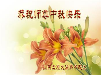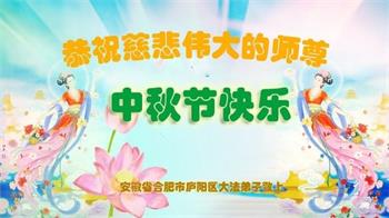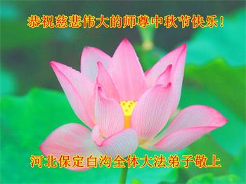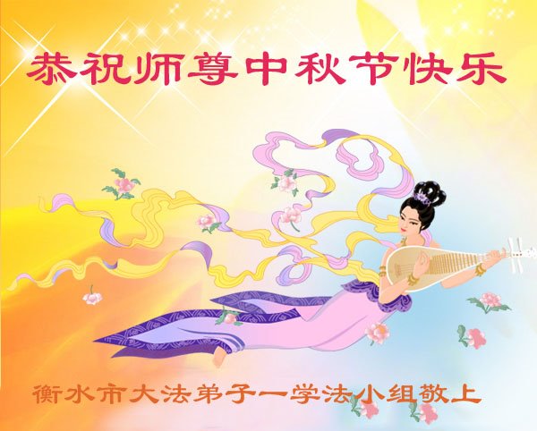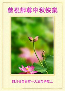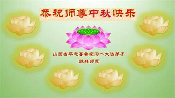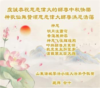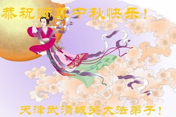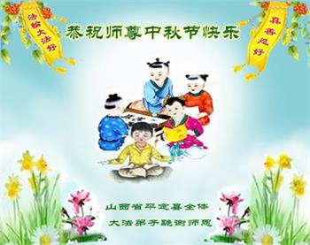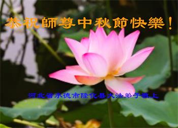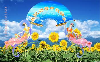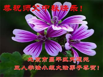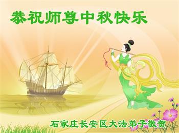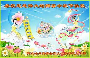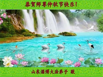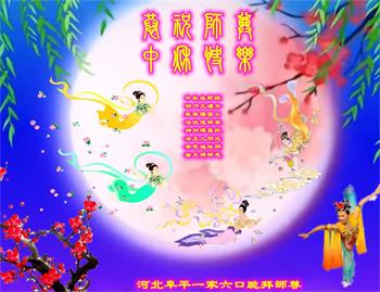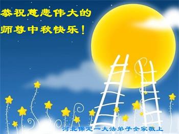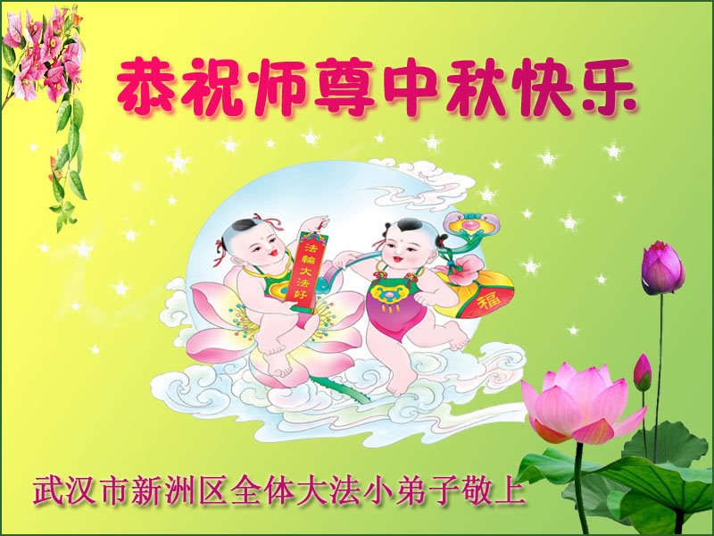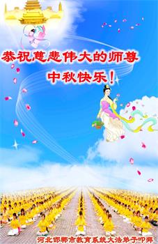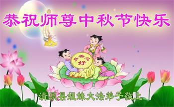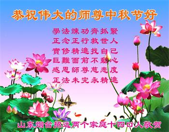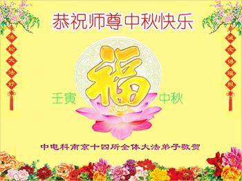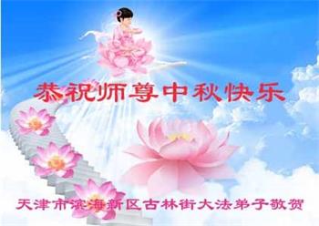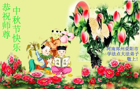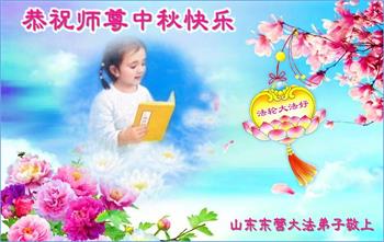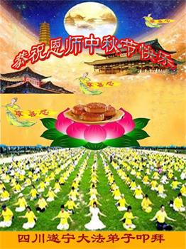 湖北省黄冈市一学法小组大法弟子在贺词中说:“月到中秋分外明,每逢佳节倍思亲。在这美好的时刻,我们十分想念师尊,伟大的师尊所承受的、付出的,弟子不知道用何语言来形容表达。在正法最后时刻,唯弟子勇猛精進,遵师言,做好三件事,快救人,多救人。”
