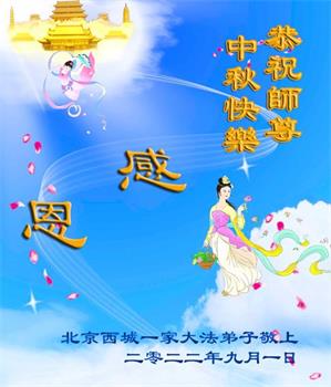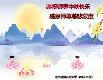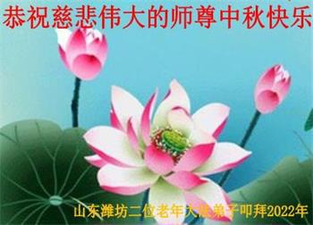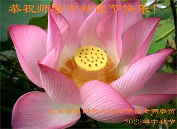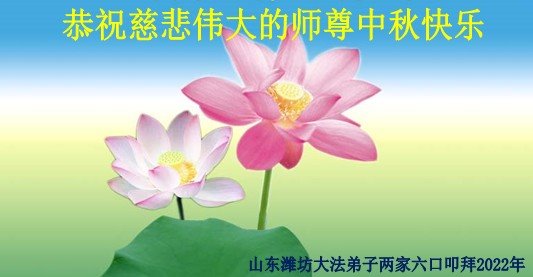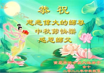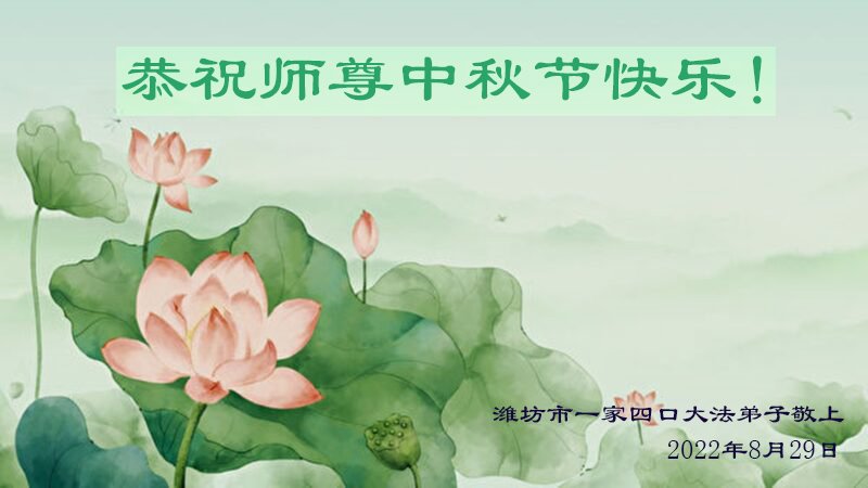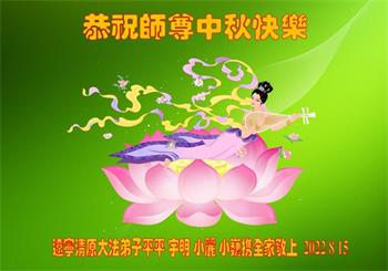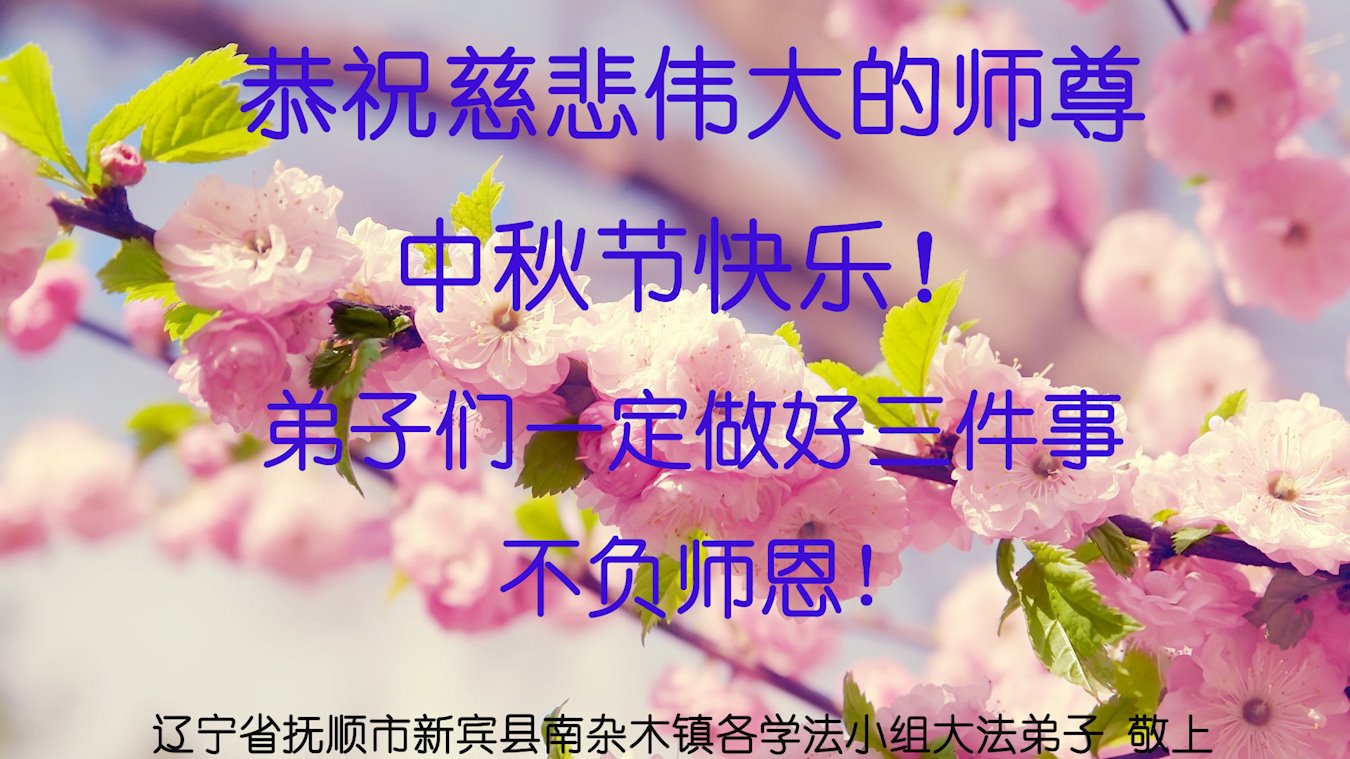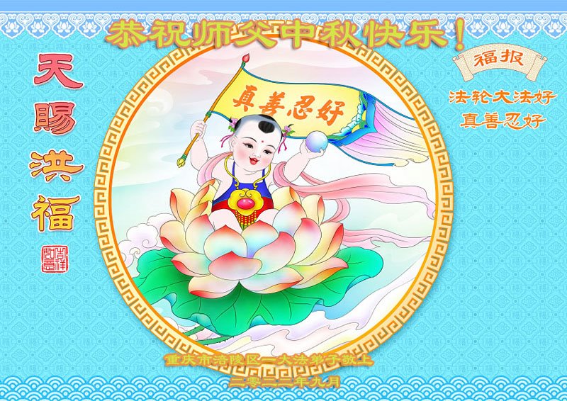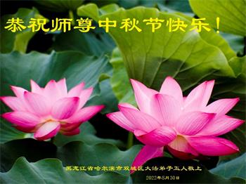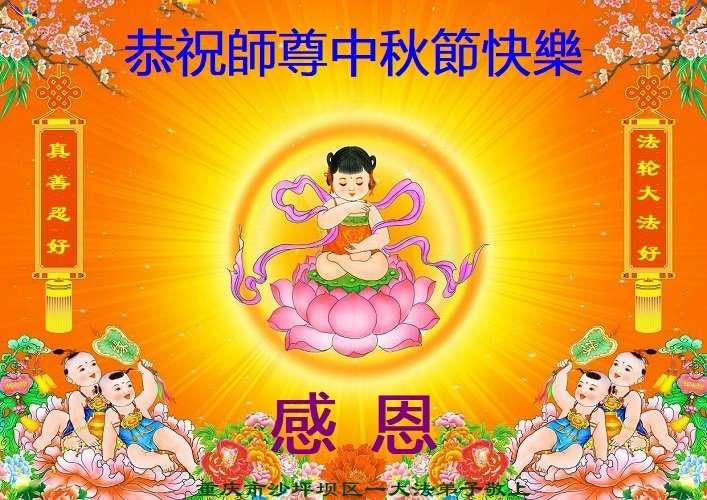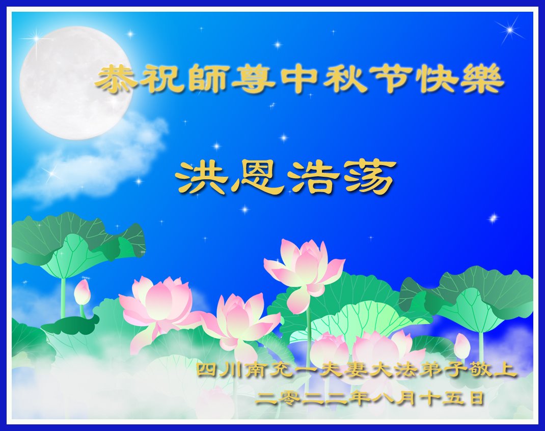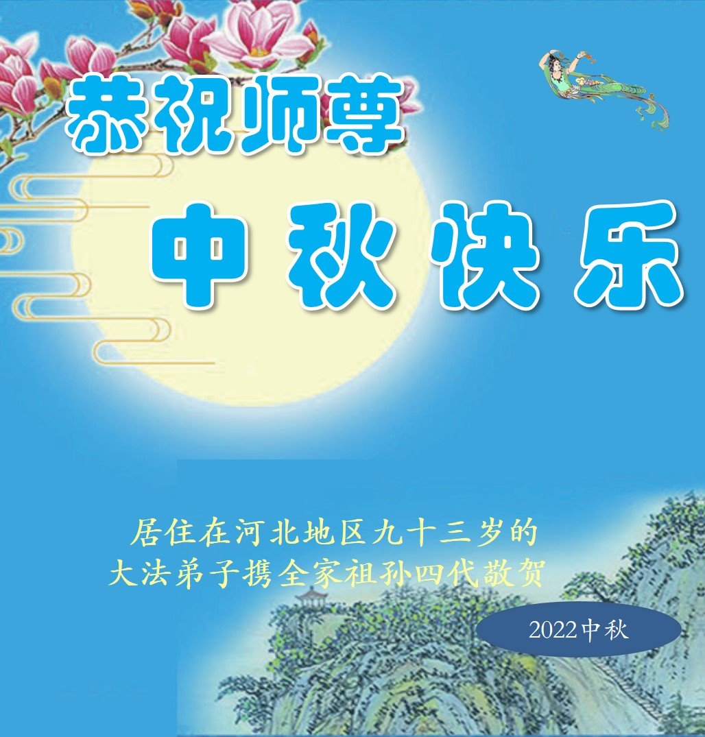 【明慧网二零二二年九月八日】法轮大法洪传世间,李洪志师尊慈悲的教诲和度化弟子,也慈悲的看护着世上每一个有缘人,把法轮大法的甘露洒向世界的每个角落,诚信“法轮大法好、真善忍好”的人们得到了大法给予的福祉。在二零二二年中秋节即将到来之际,明白法轮大法好的中国百姓向尊敬的李大师表达发自心底的感恩,恭祝大法师父中秋节快乐!