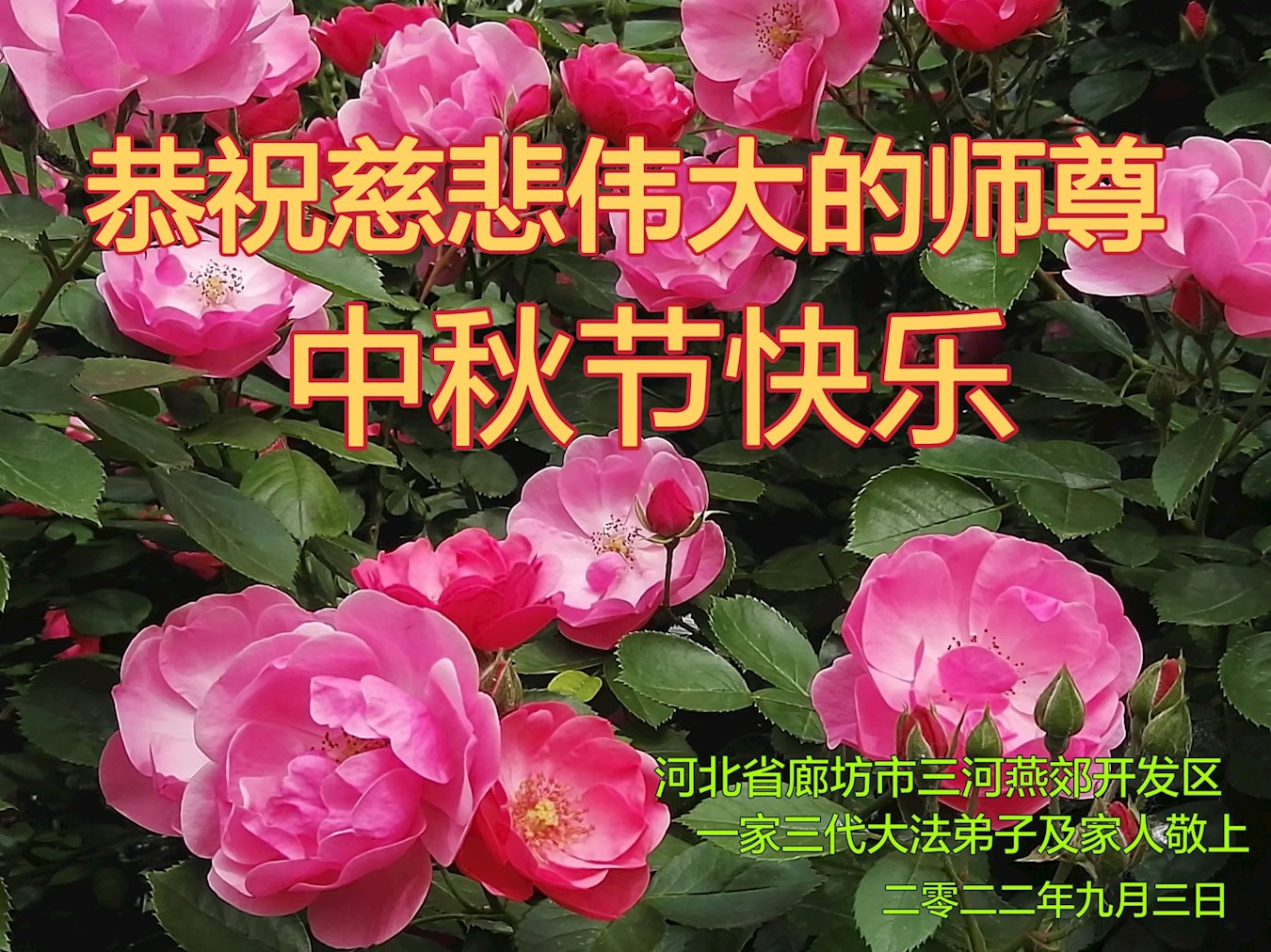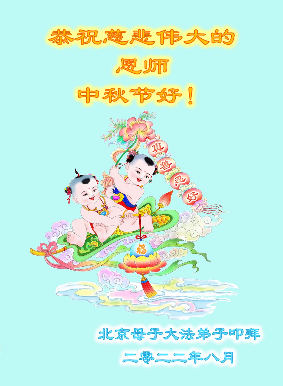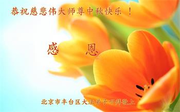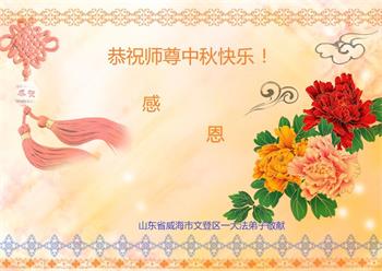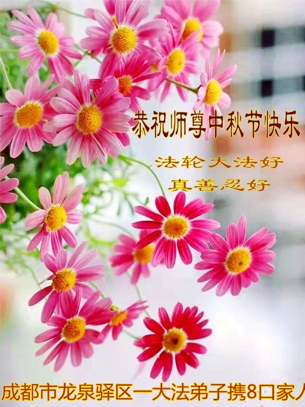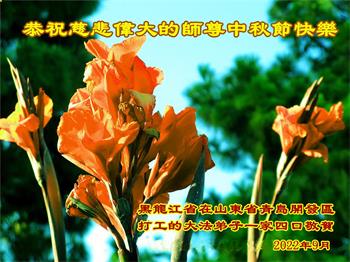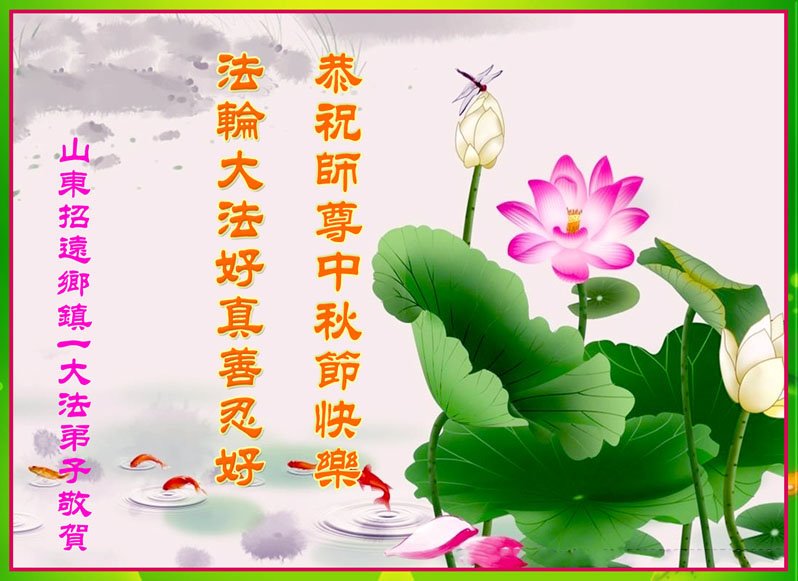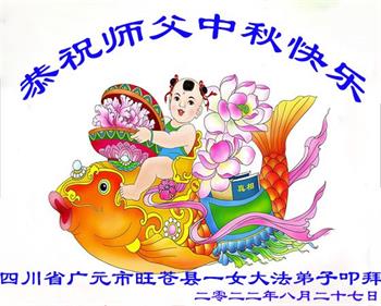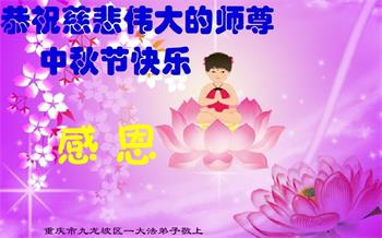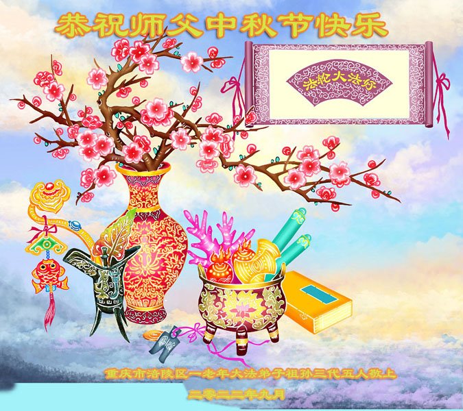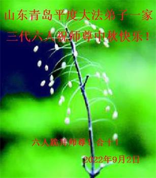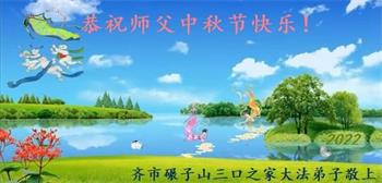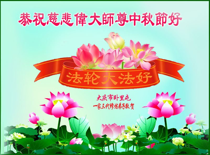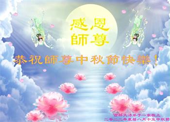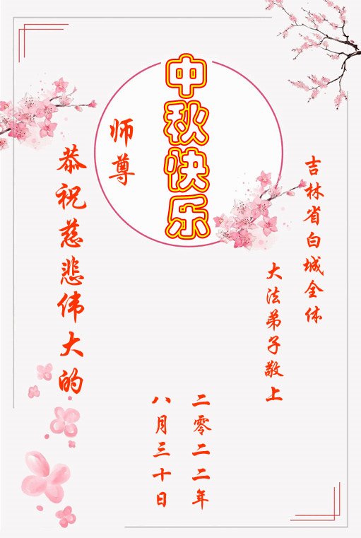 【明慧网二零二二年九月八日】法轮大法洪传世间,李洪志师尊慈悲的教诲和度化弟子,也慈悲的看护着世上每一个有缘人,把法轮大法的甘露洒向世界的每个角落,诚信“法轮大法好、真善忍好”的人们得到了大法给予的福祉。在二零二二年中秋节即将到来之际,明白法轮大法好的中国百姓向尊敬的李大师表达发自心底的感恩,恭祝大法师父中秋节快乐!