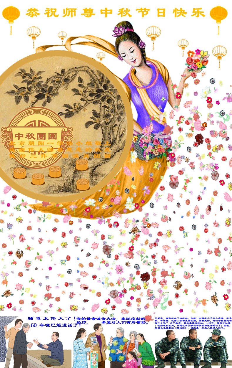 我是大法弟子的家属,在这疫情蔓延,邪党的迫害下,我坚定信仰大法,支持大法。恭祝师尊中秋节快乐!