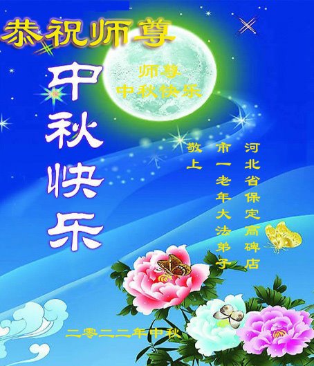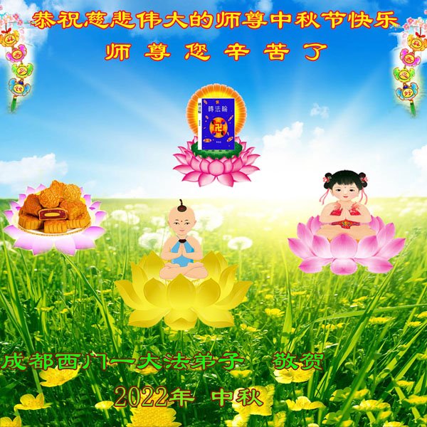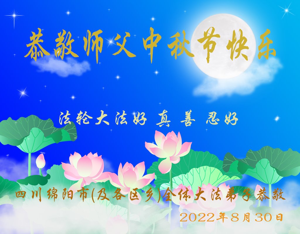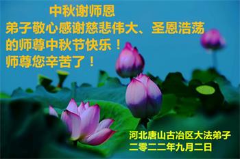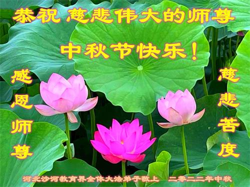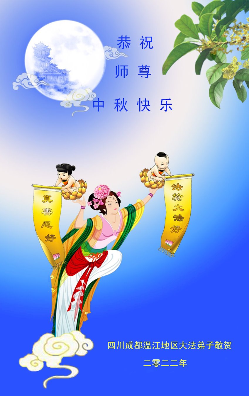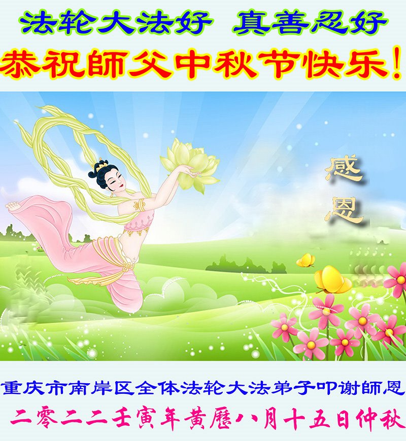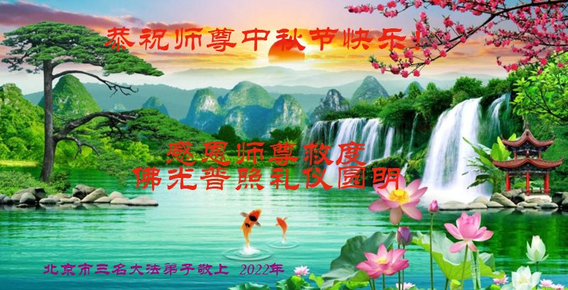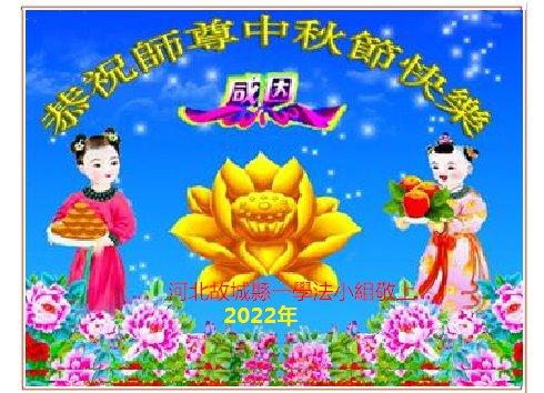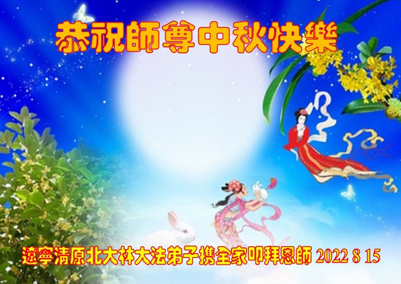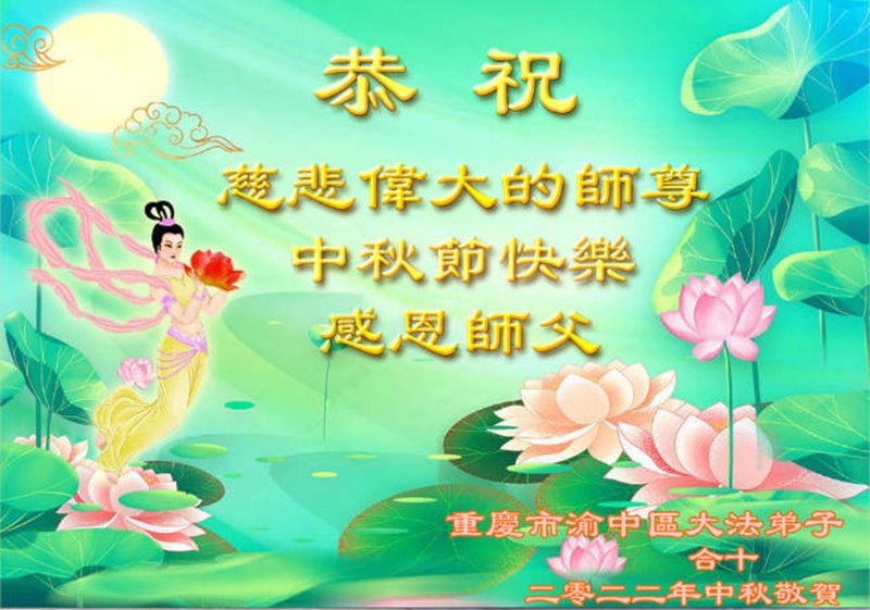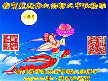 <英文版: http://en.minghui.org/html/articles/2022/9/9/203242.html>精進修己多救人 中国各省大法弟子恭贺师尊中秋快乐