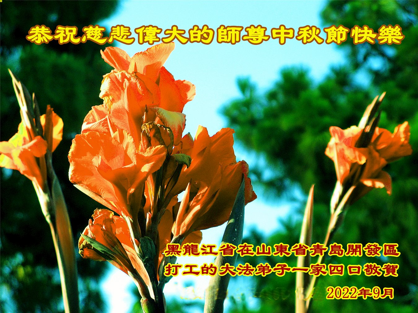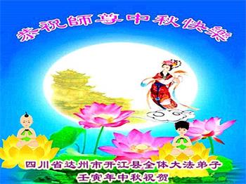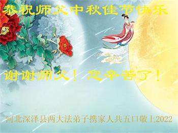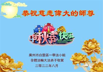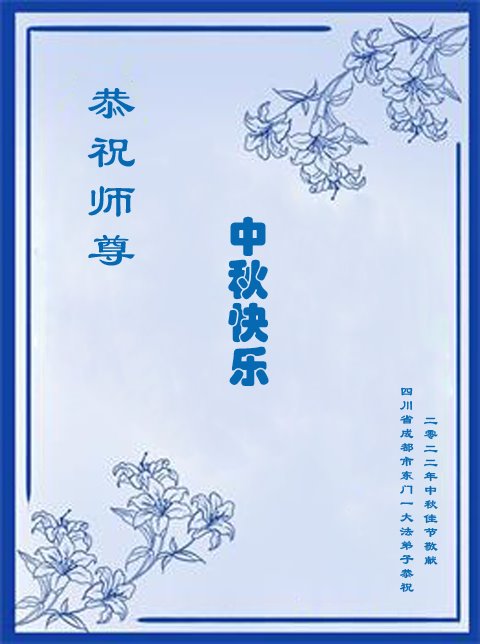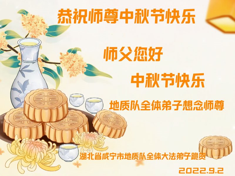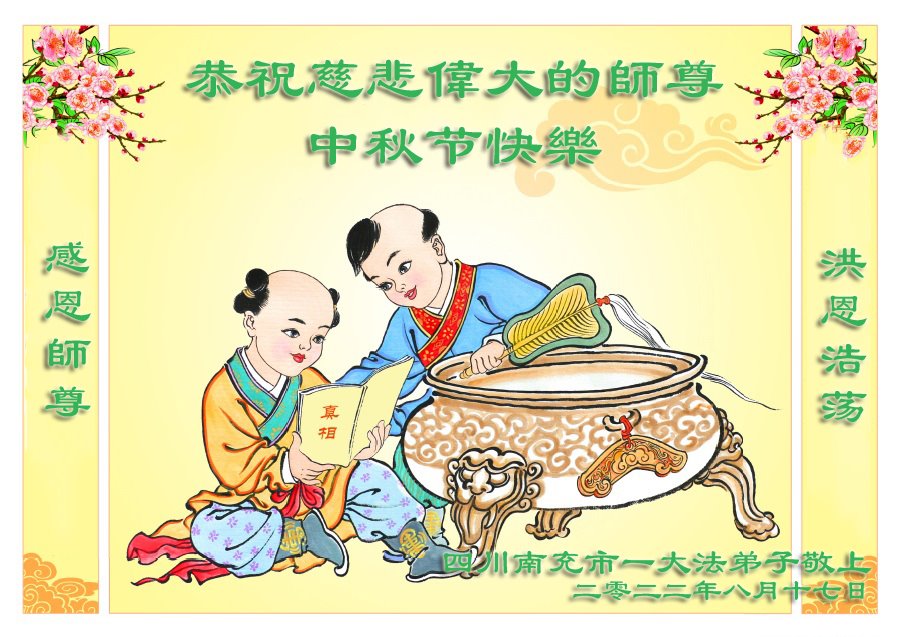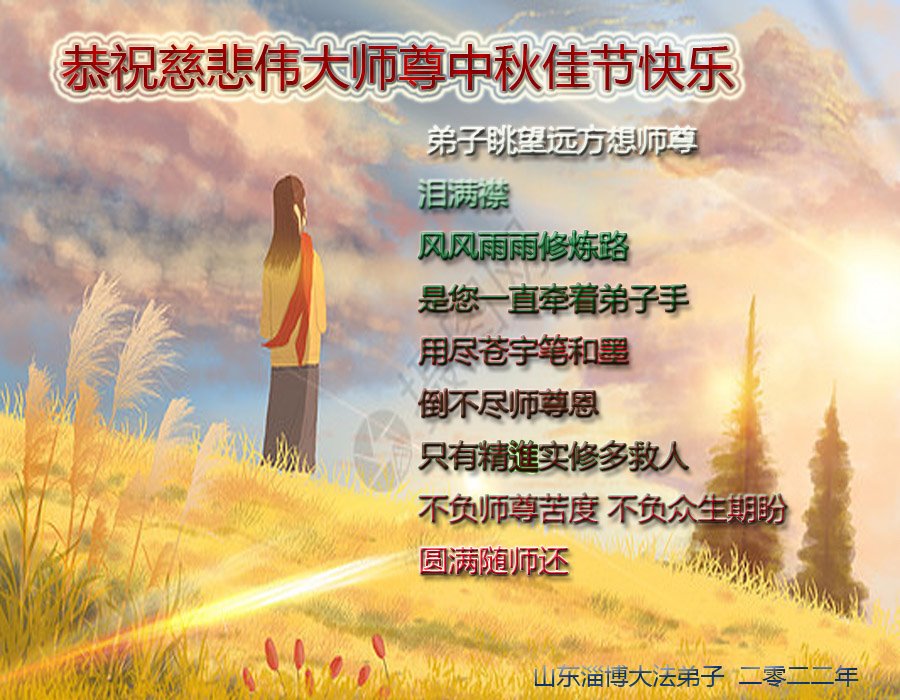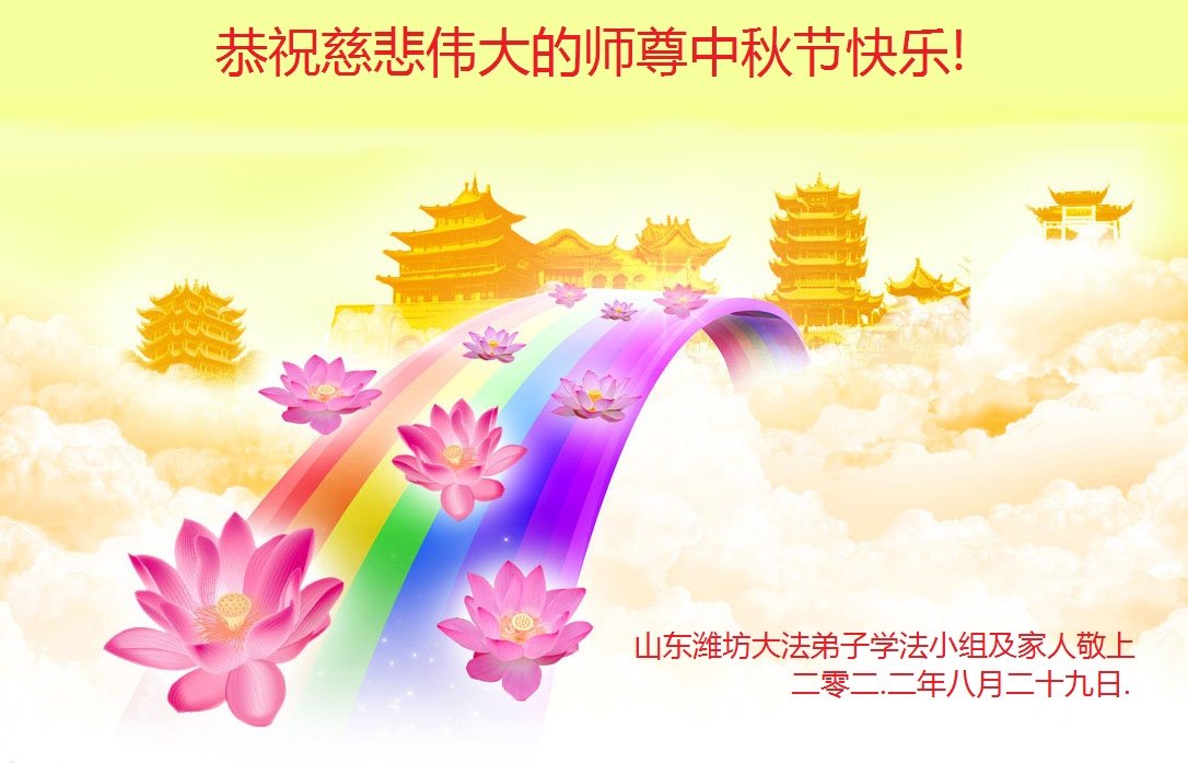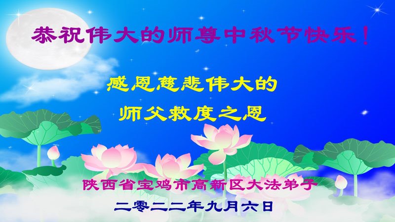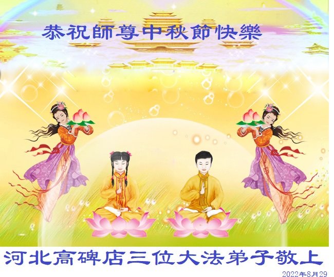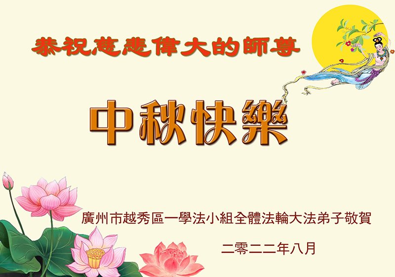 <英文版: http://en.minghui.org/html/articles/2022/9/9/203242.html>精進修己多救人 中国各省大法弟子恭贺师尊中秋快乐