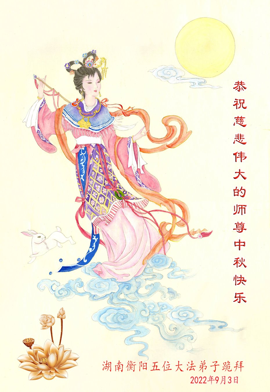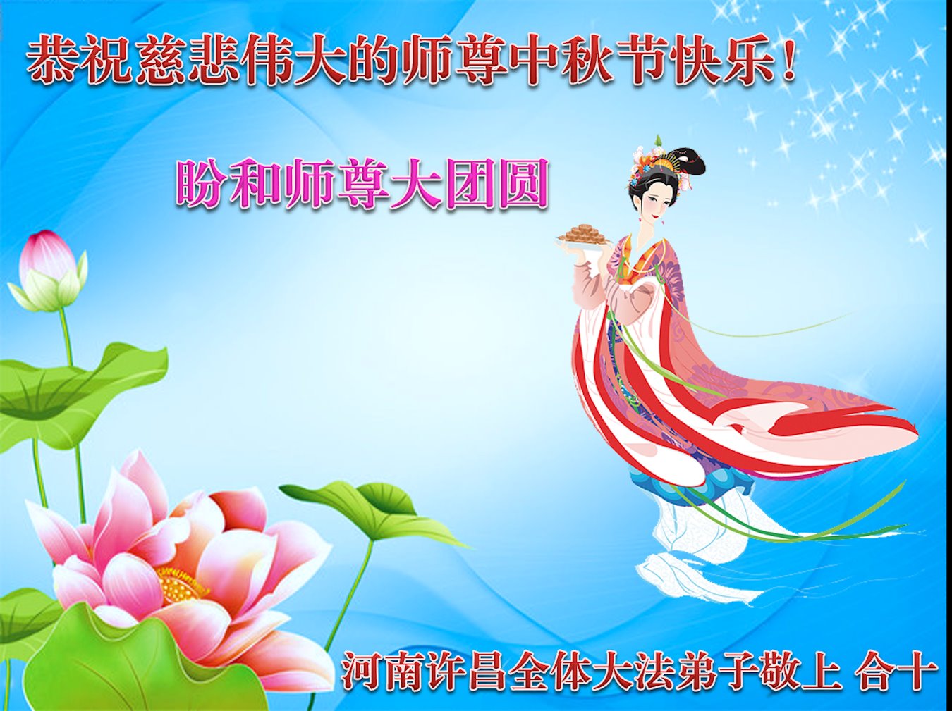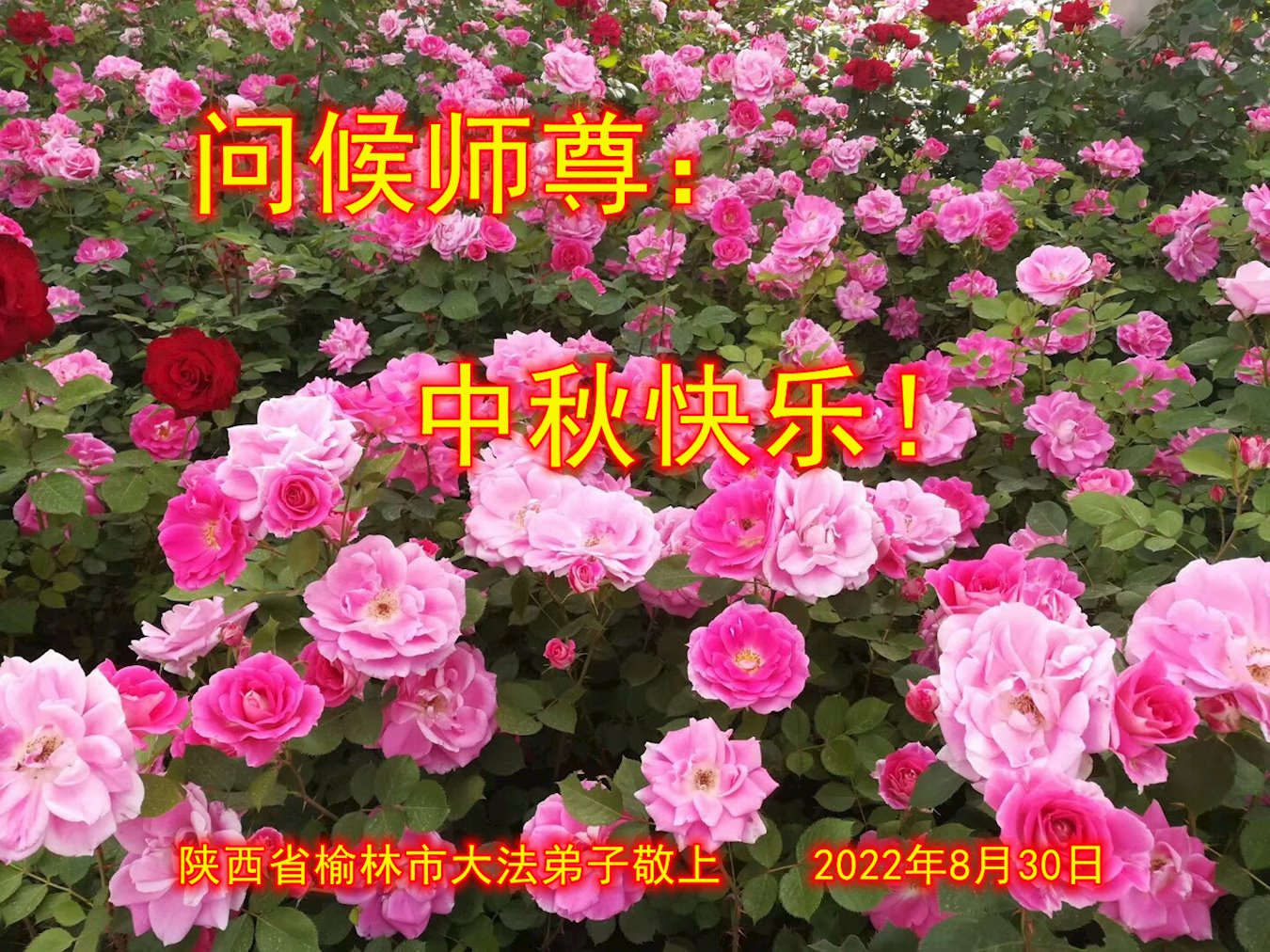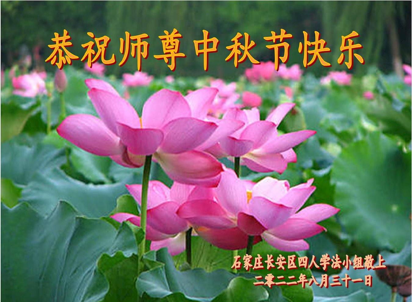 <英文版: http://en.minghui.org/html/articles/2022/9/9/203242.html>精進修己多救人 中国各省大法弟子恭贺师尊中秋快乐