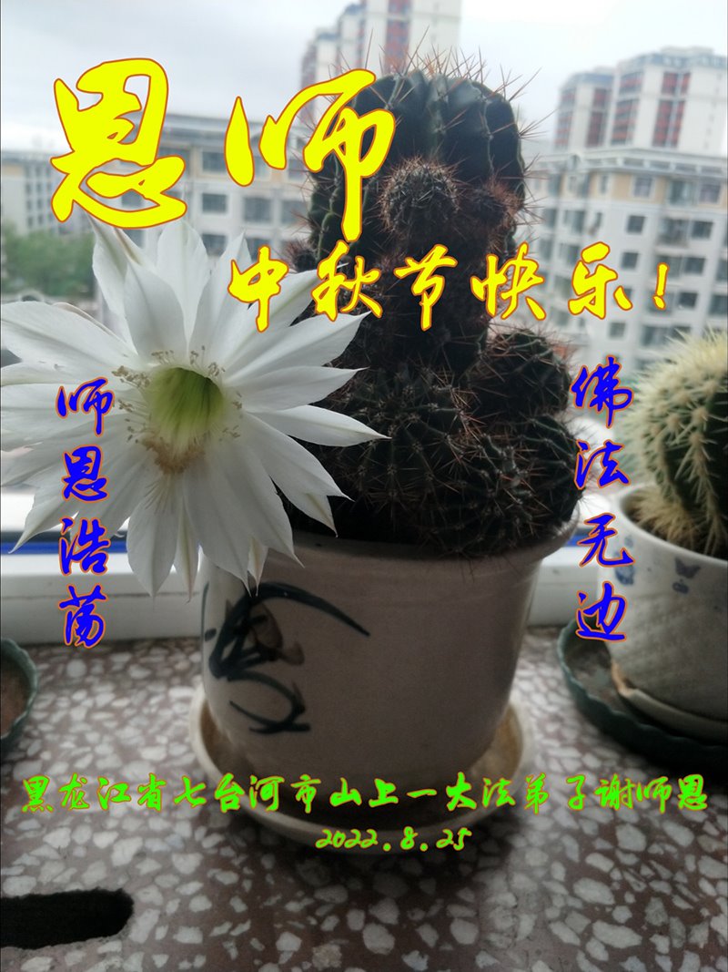 身为大法弟子,弟子倍感荣幸与自豪!走过历史的沧桑,亿万年的等待,今生终于如愿以偿。弟子荣幸成为亿万大法弟子中的一员,我们有着共同的佛恩浩荡的最伟大的师尊,千言万语也表达不了弟子们对师尊的感恩,感谢师尊对弟子们的慈悲救度,师尊为弟子们、为众生操尽了心。弟子唯有精進实修,做好三件事,圆满随师还!弟子叩拜师尊,遥祝师尊中秋快乐!惟愿师尊笑!