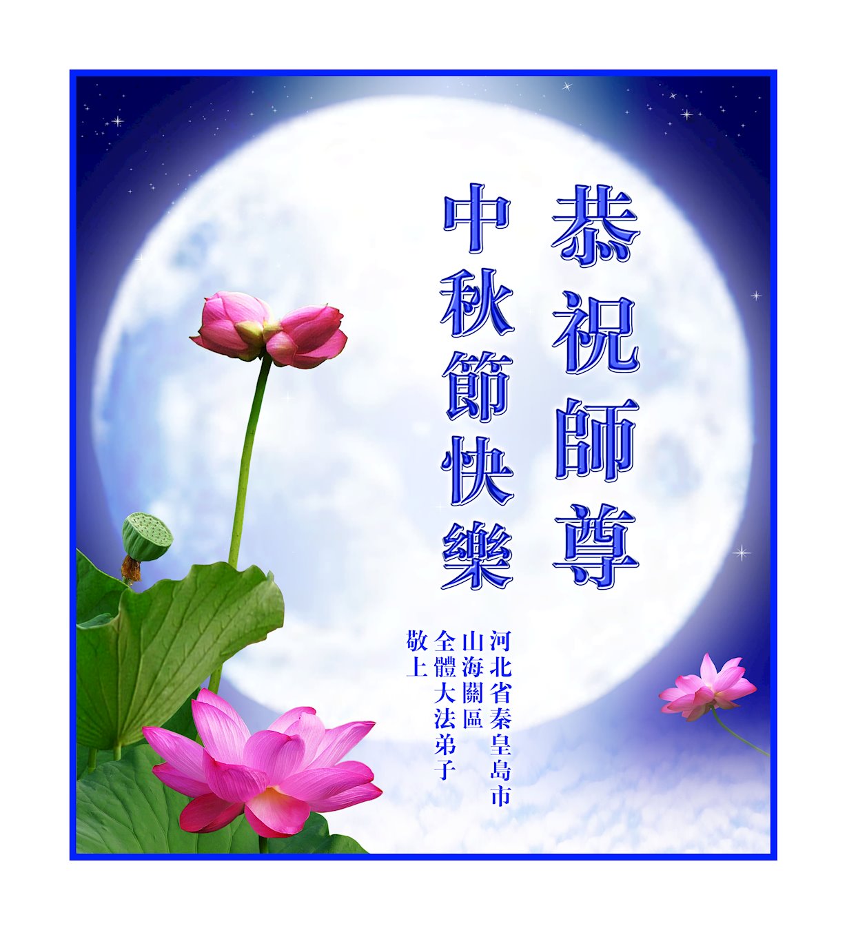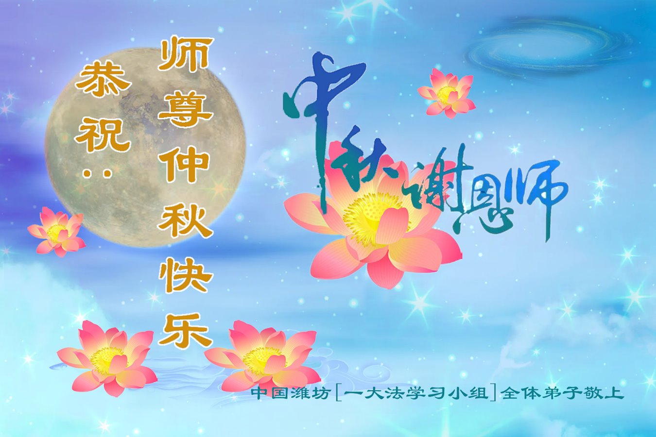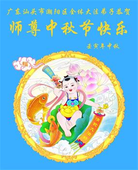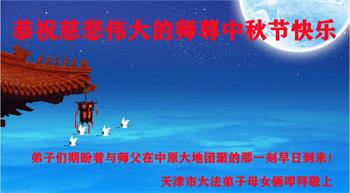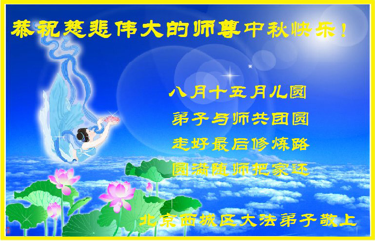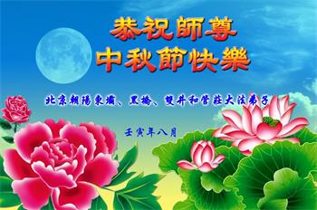 在中秋月圆之际,中国各省市地区的学法小组大法弟子、共同配合讲真相的大法弟子们恭祝慈悲伟大的师父中秋佳节好!