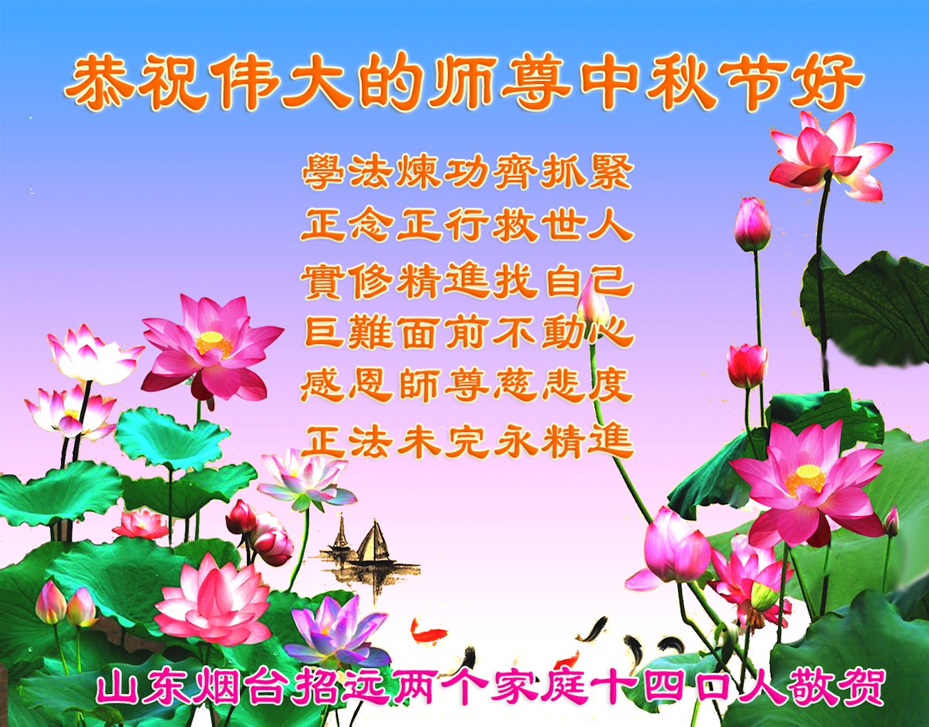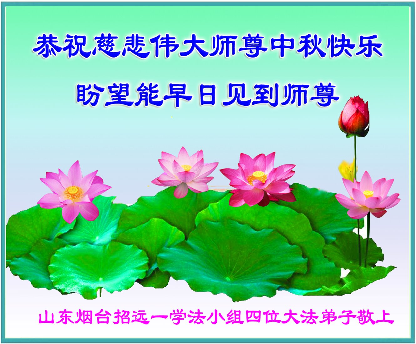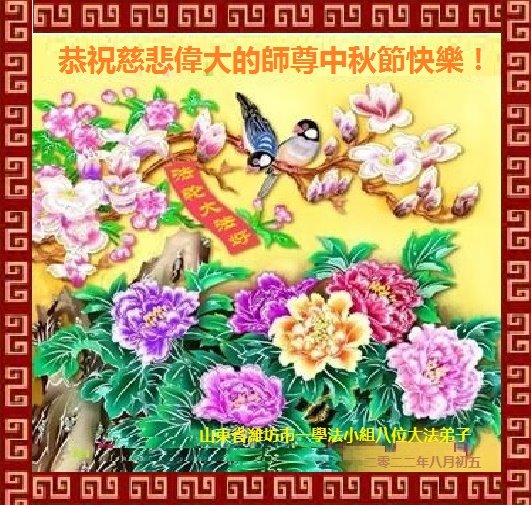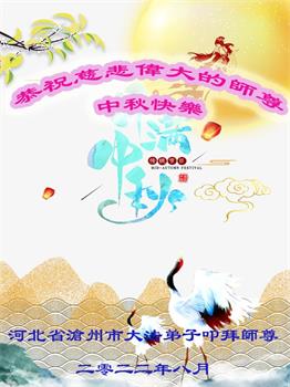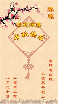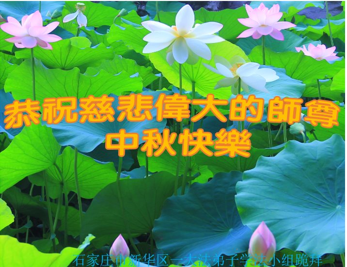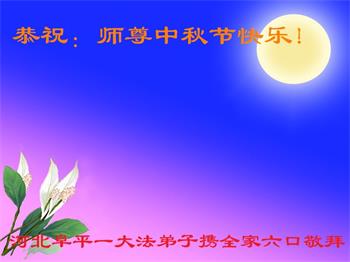 在正法所剩不多的日子里,我们一定多学法,向内找修好自己,多救人,多发正念,排除一切干扰,完成自己的历史使命。我们全体大法弟子恭祝师尊中秋节快乐!
