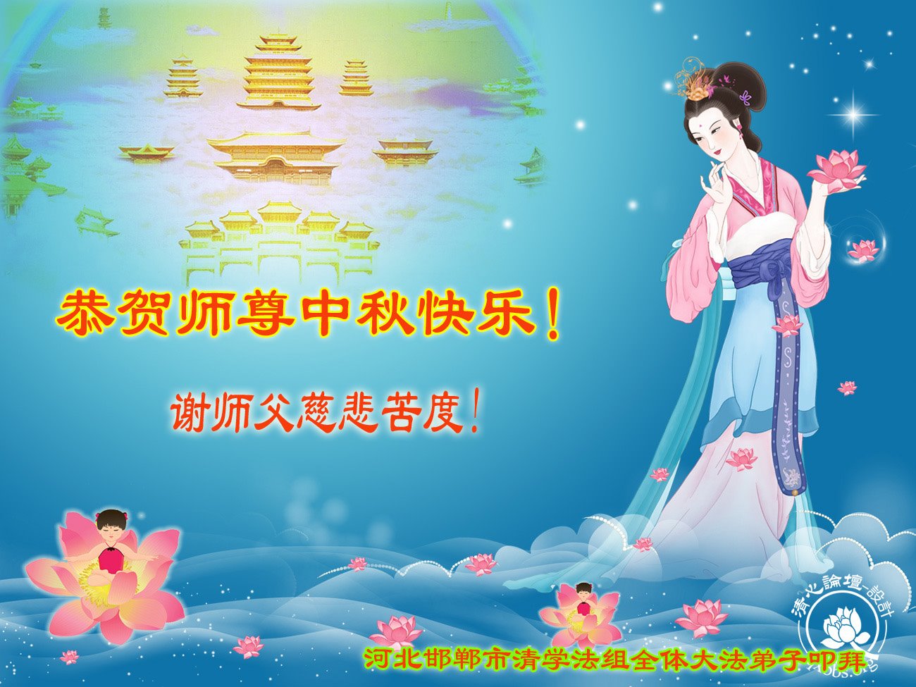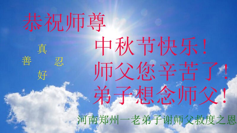 师尊您好!弟子们祝您中秋节快乐!我们救人小组一定做好三件事,修好自己多救人,让您多一份欣慰,少一些操劳,完成使命,跟师父回家!