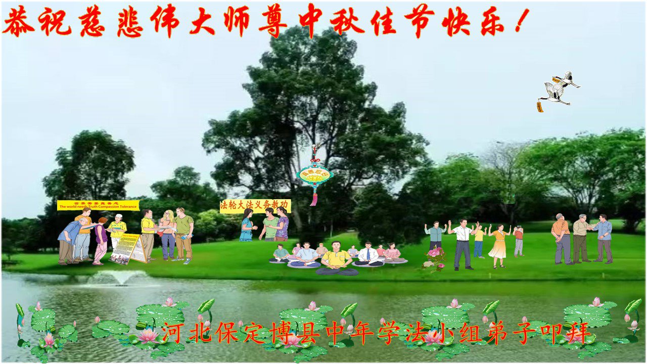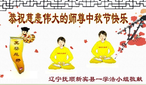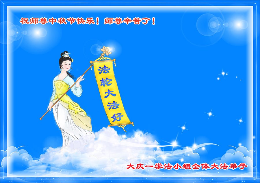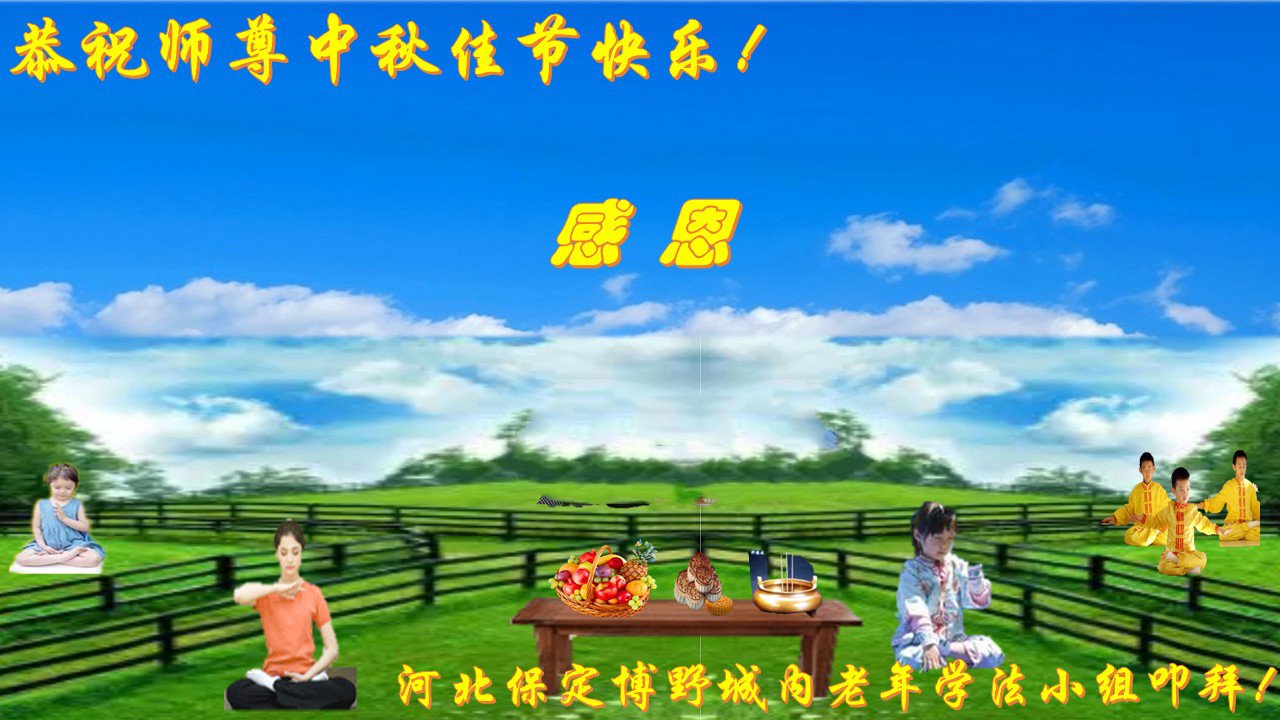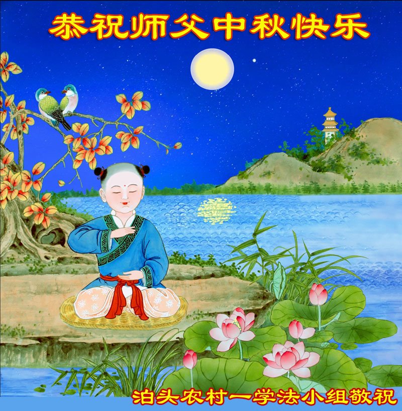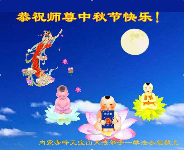 一年一度的中秋节又要到了,在中国边陲小镇的一学法小组大法弟子在此衷心遥祝慈悲伟大的师尊中秋节快乐!师尊,您为弟子及众生操尽了心,弟子无以为报,只有在修炼的路上抓紧时间,在有限的时间里多救人。同时修好自己,做好三件事,以报师恩,跟师父返家园!合十