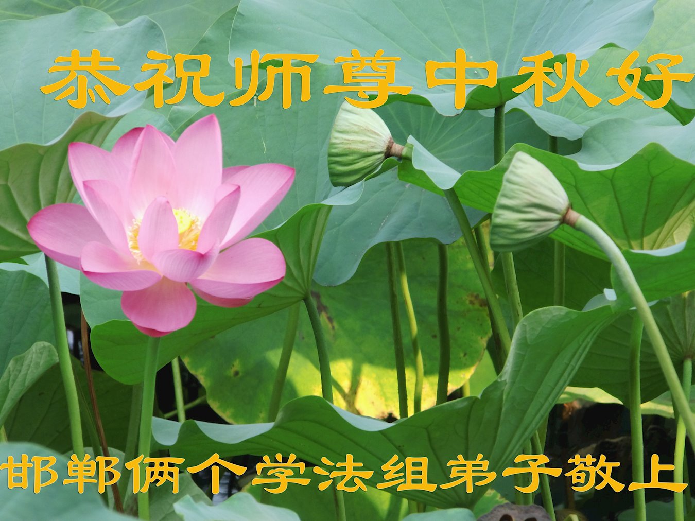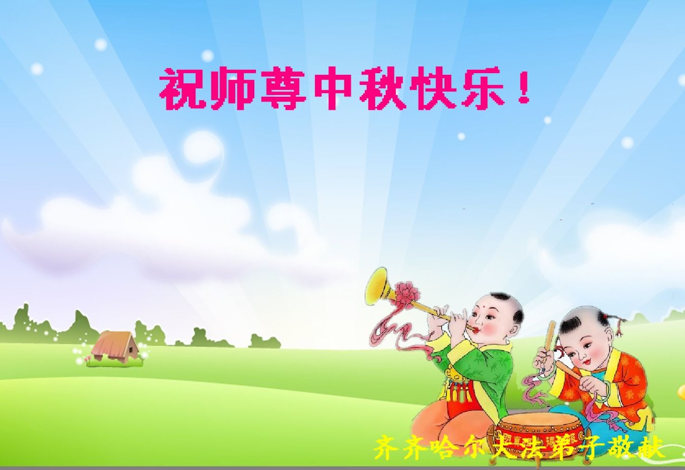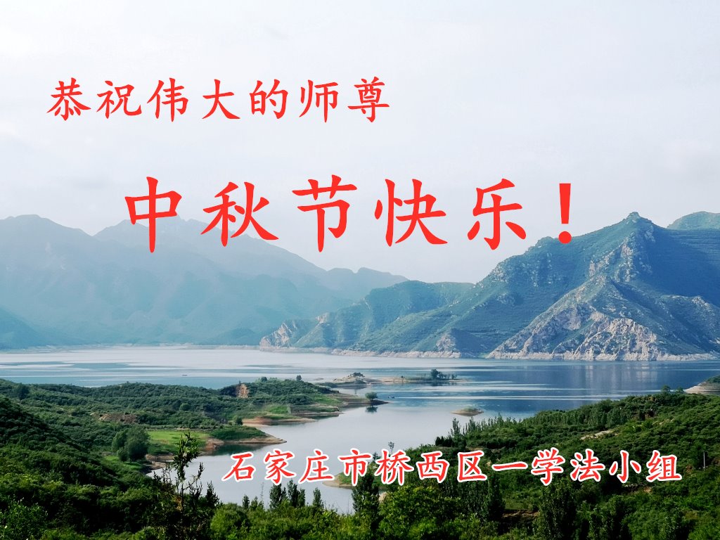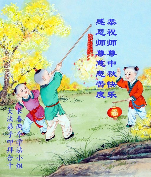 一年一度的中秋节又要到了,在中国边陲小镇的一学法小组大法弟子在此衷心遥祝慈悲伟大的师尊中秋节快乐!师尊,您为弟子及众生操尽了心,弟子无以为报,只有在修炼的路上抓紧时间,在有限的时间里多救人。同时修好自己,做好三件事,以报师恩,跟师父返家园!合十