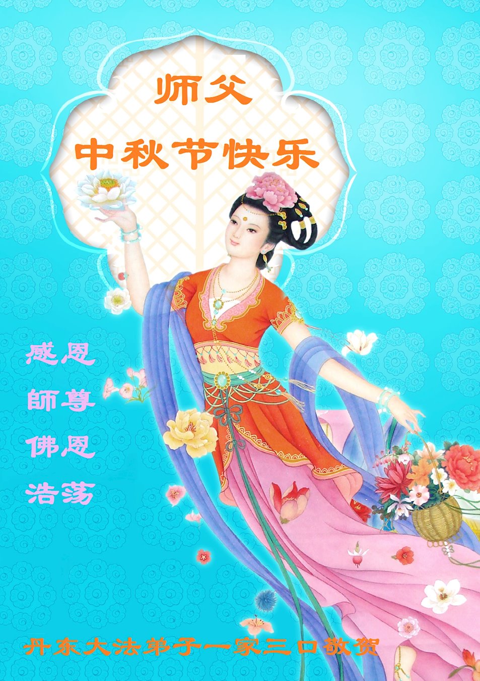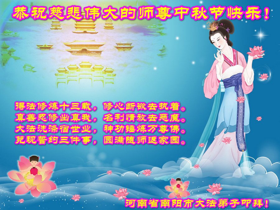感谢您用“真、善、忍”法理指导我走过这么多年人生路,在此佳节祝您中秋快乐!