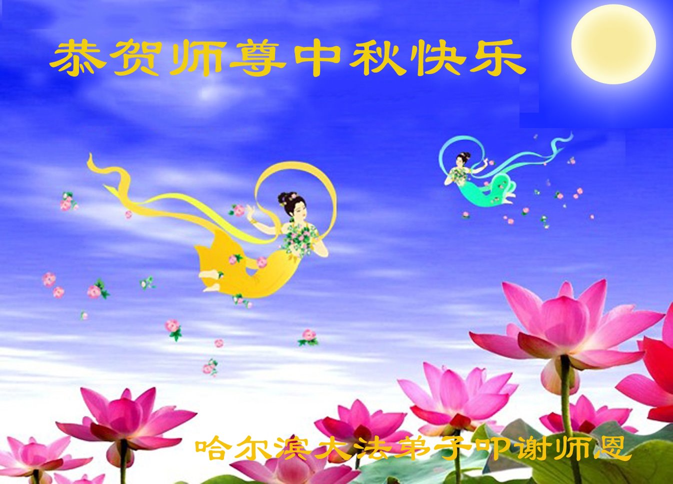 哈尔滨明真相世人恭祝李洪志大师中秋节快乐!大师辛苦了!