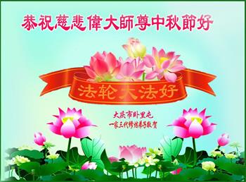 我们听到了您带领的大法弟子讲的真相,感动万分!我们看清了邪党骗人的伎俩,劝亲友们及身边人主动三退,我们得救了!遇上这高德大法,我们决定找大法弟子学大法、炼功!祝李大师中秋节快乐!
