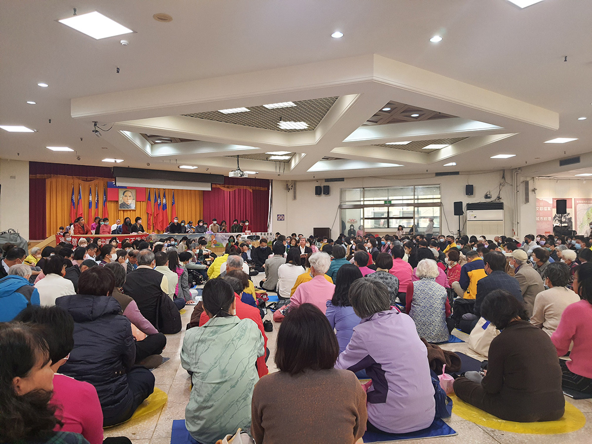 【明慧网二零二三年一月十日】(明慧记者沈容采访报道)久违的暖阳高挂天空,驱走连日的寒冬。在癸卯年到来之际,台湾北区法轮功学员于二零二三年一月八日早上学法交流后,齐聚板桥第二运动场,双手合十、齐声高喊“恭祝师尊新年好!法轮大法好!”学员们响彻云霄的声音,是对师尊无尽的感谢。