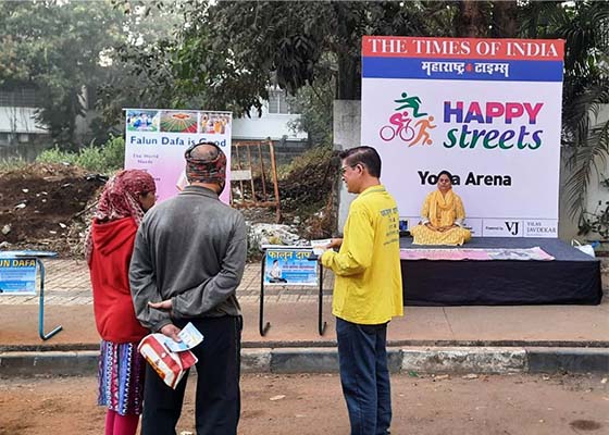 最近,印度浦那市学员在两个不同的地方参加了“幸福街”活动,向居民介绍法轮大法。