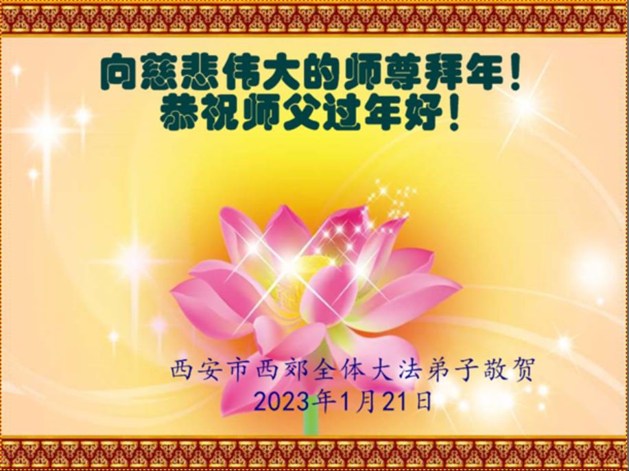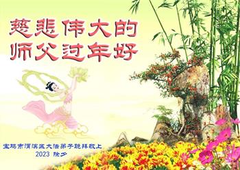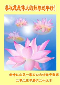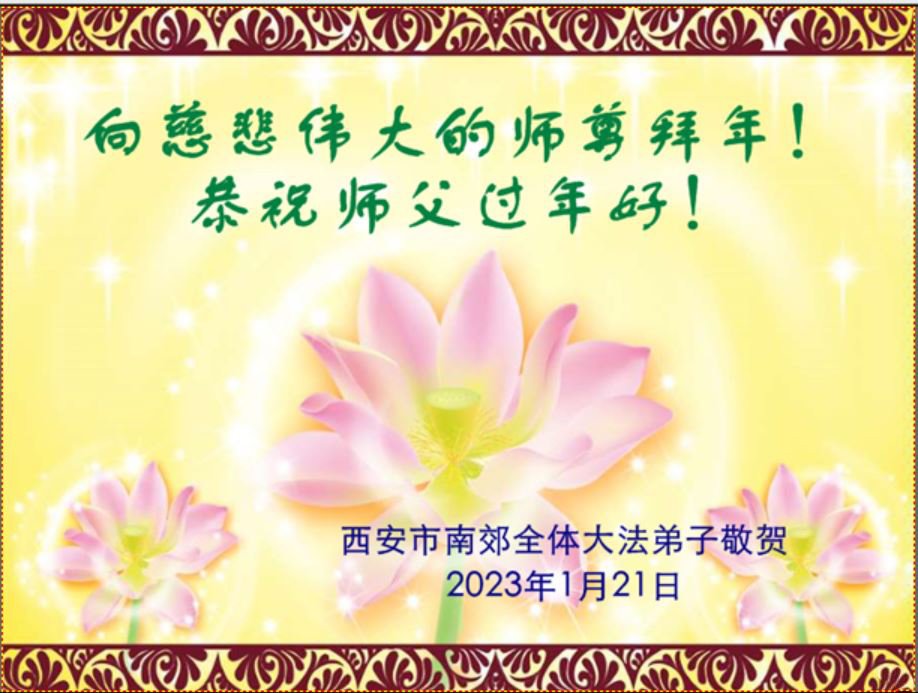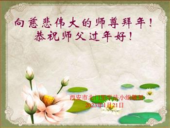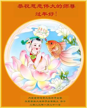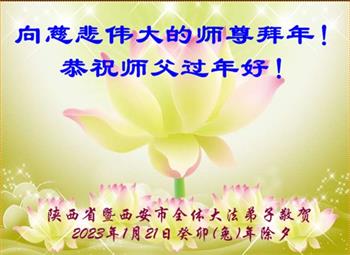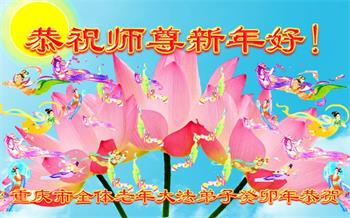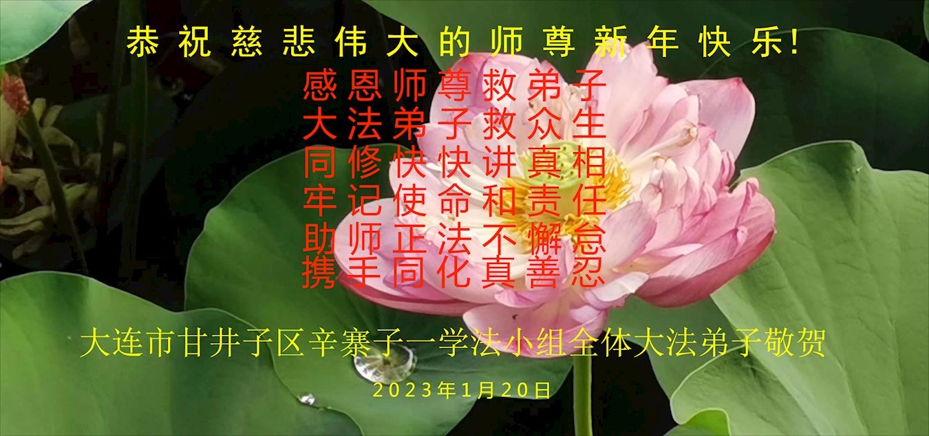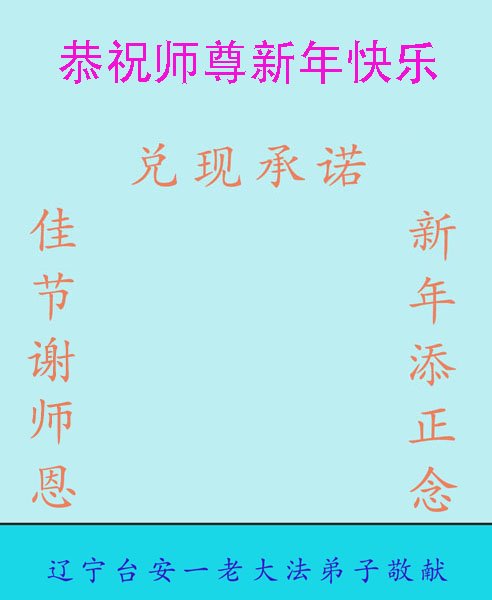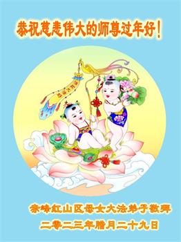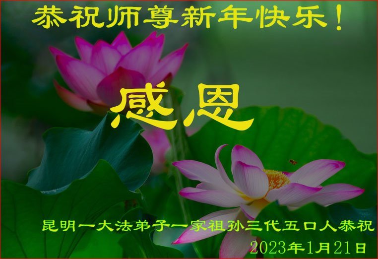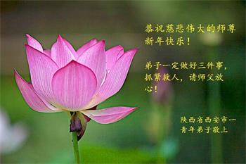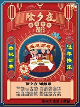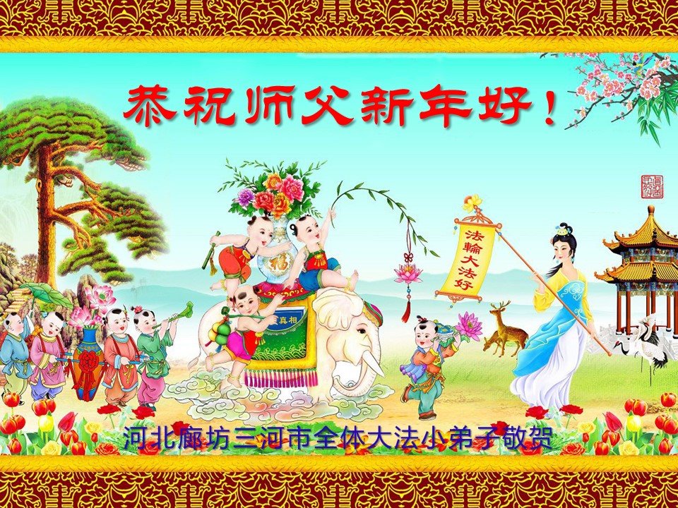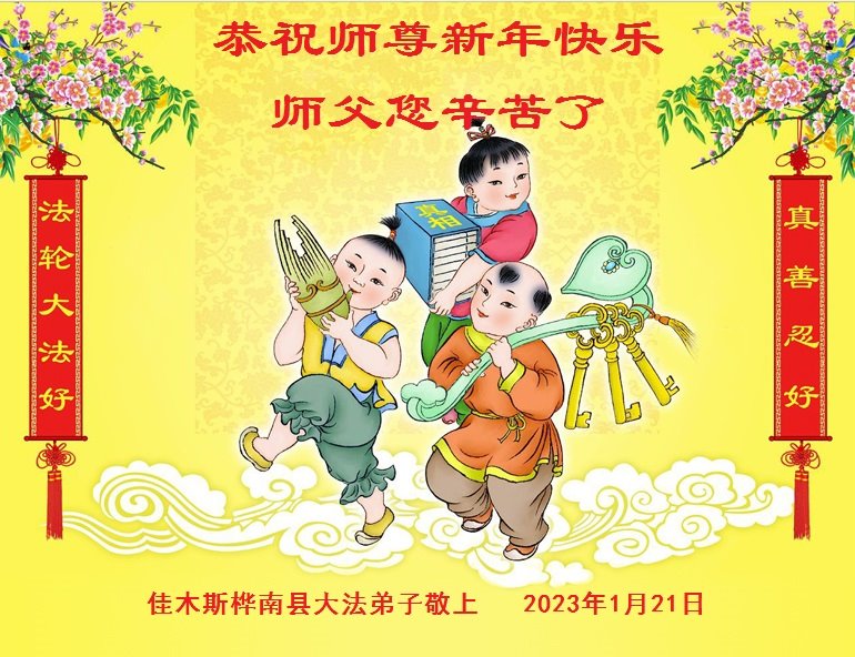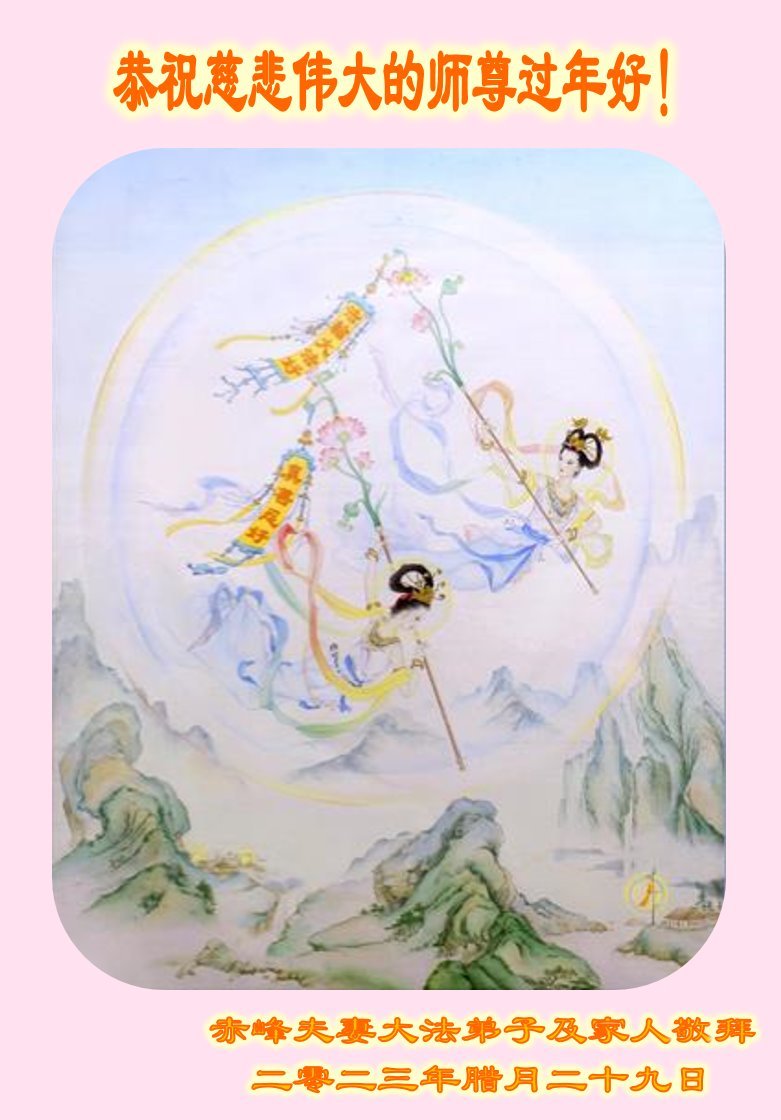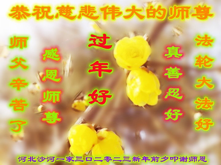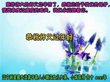师恩浩荡!感恩师尊的慈悲救度!唯有在有限的时间里认真做好三件事,以报师恩。恭祝师尊过年好!浙江省宁波市一大法弟子敬上。