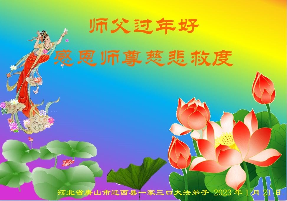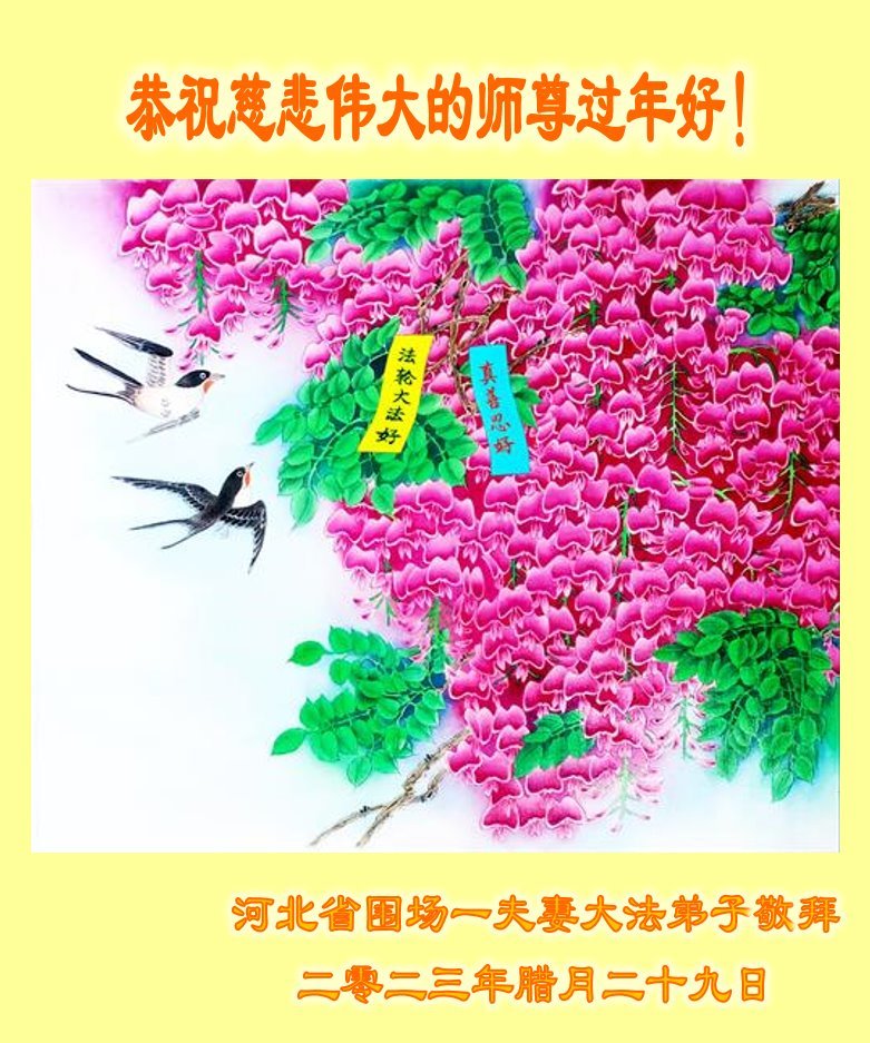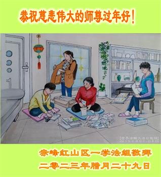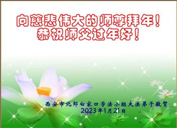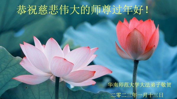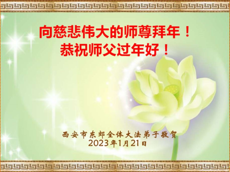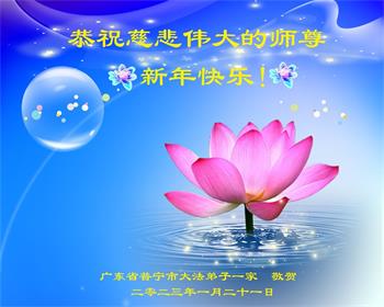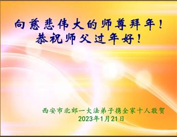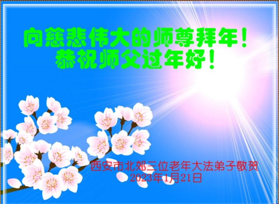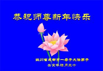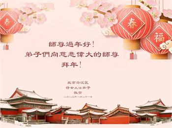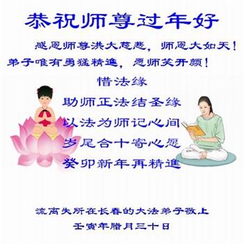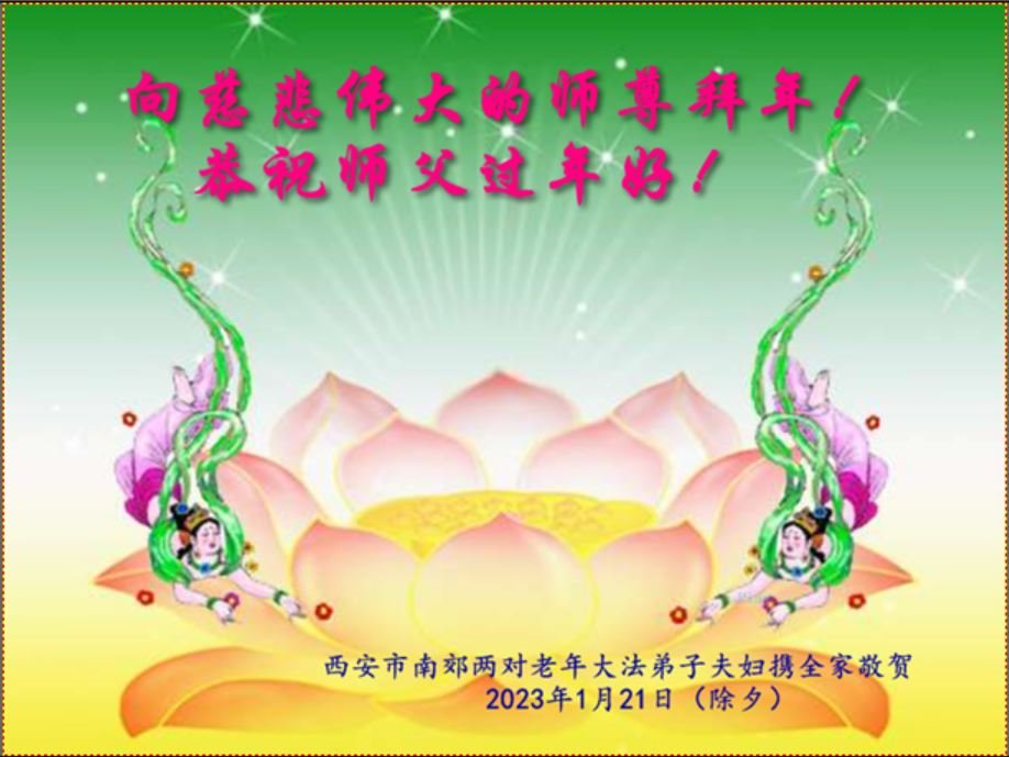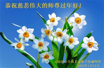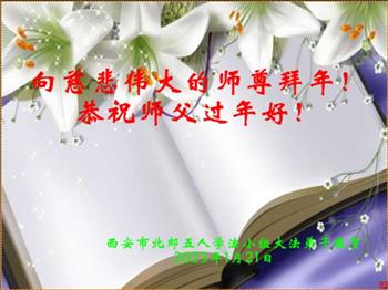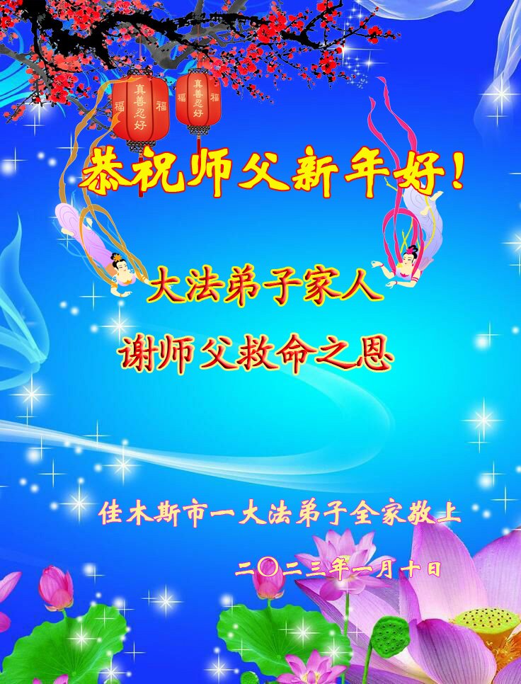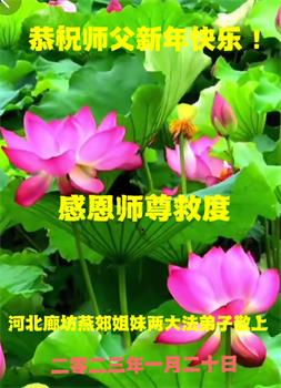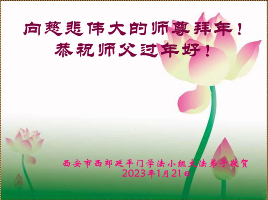 师恩浩荡!感恩师尊的慈悲救度!唯有在有限的时间里认真做好三件事,以报师恩。恭祝师尊过年好!浙江省宁波市一大法弟子敬上。