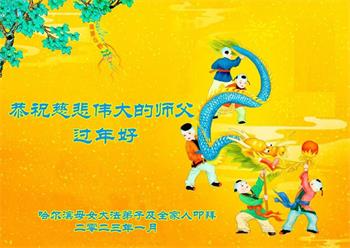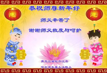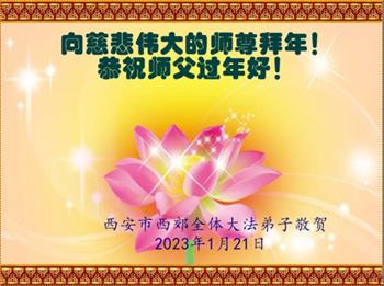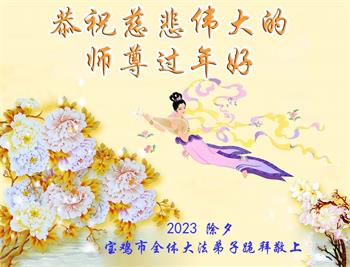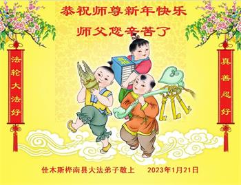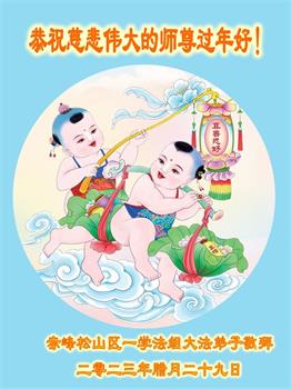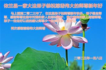 法轮大法洪传全人类,救度一切有缘人,更是福泽众生。明白真相得福报的中国民众在中国传统的节假中,将发自内心敬仰和感恩制作各种精美的和贺词来表达对师尊的崇高敬意。作为大法弟子,深深的知道慈悲伟大的师尊为了众生能多救度,一次又一次延缓时间,师尊付出了难以想象的巨大承受。作为大法弟子没有任何理由不做好三件事,一定救度更多的有缘人。