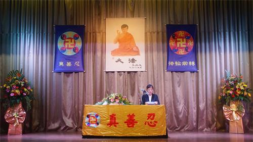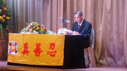 '图3~8:法轮功学员在二零二二年马来西亚法会上交流修炼心得'