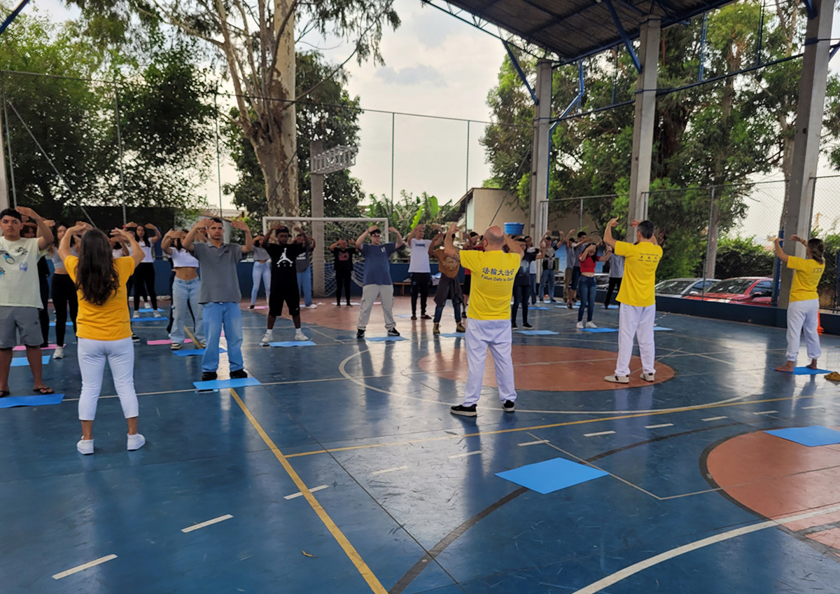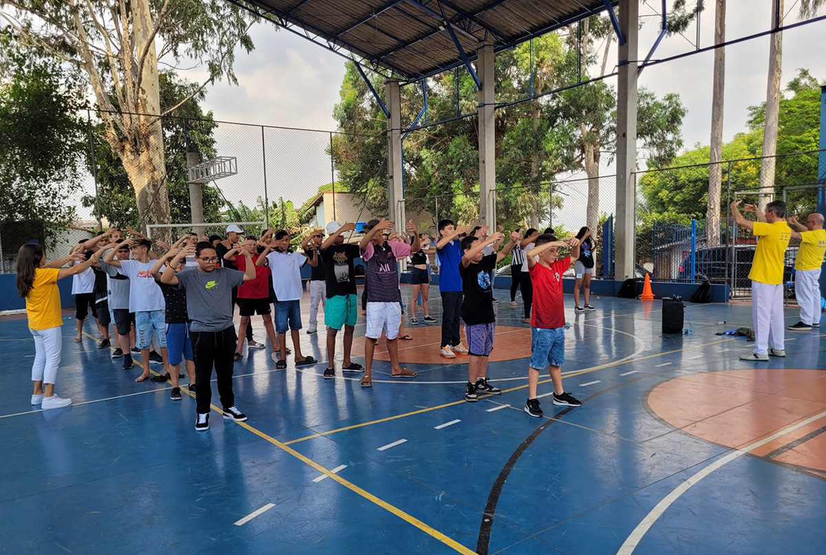 【明慧网二零二三年十月十一日】二零二三年九月二十七日,巴西法轮功学员来到圣保罗若阿金·路易斯·德·布里托(Joaquim Luiz de Brito)州立学校,教一百五十名学生和老师学炼五套功法,并向他们讲述中共迫害法轮功的真相。