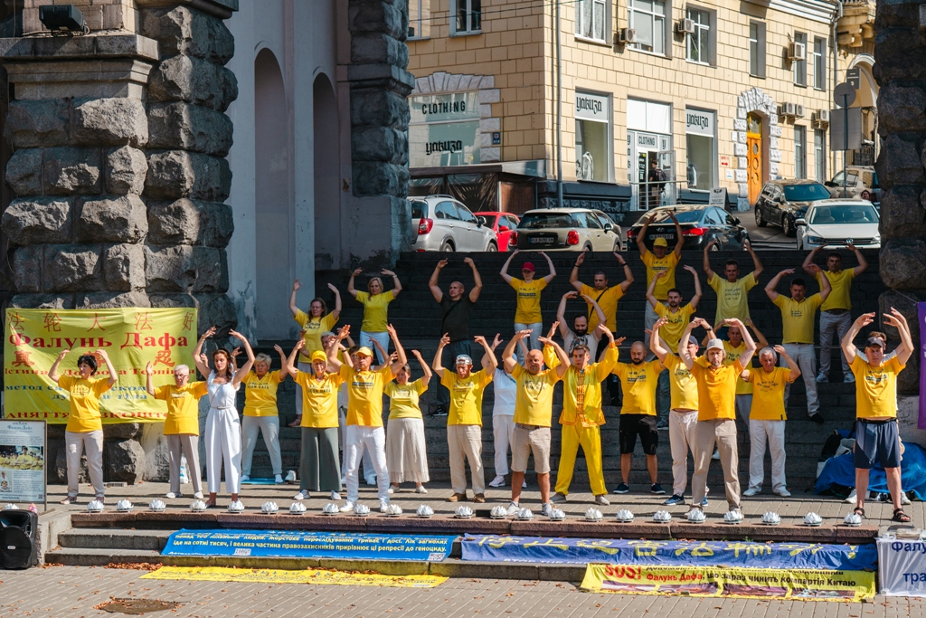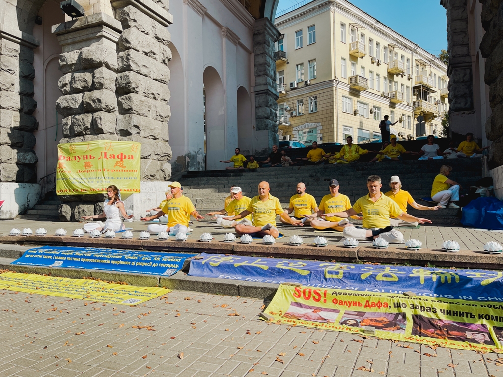 许多学员已经修炼法轮大法十几年,他们在活动中向乌克兰人讲述什么是法轮大法,让他们明白什么是真正的善良。