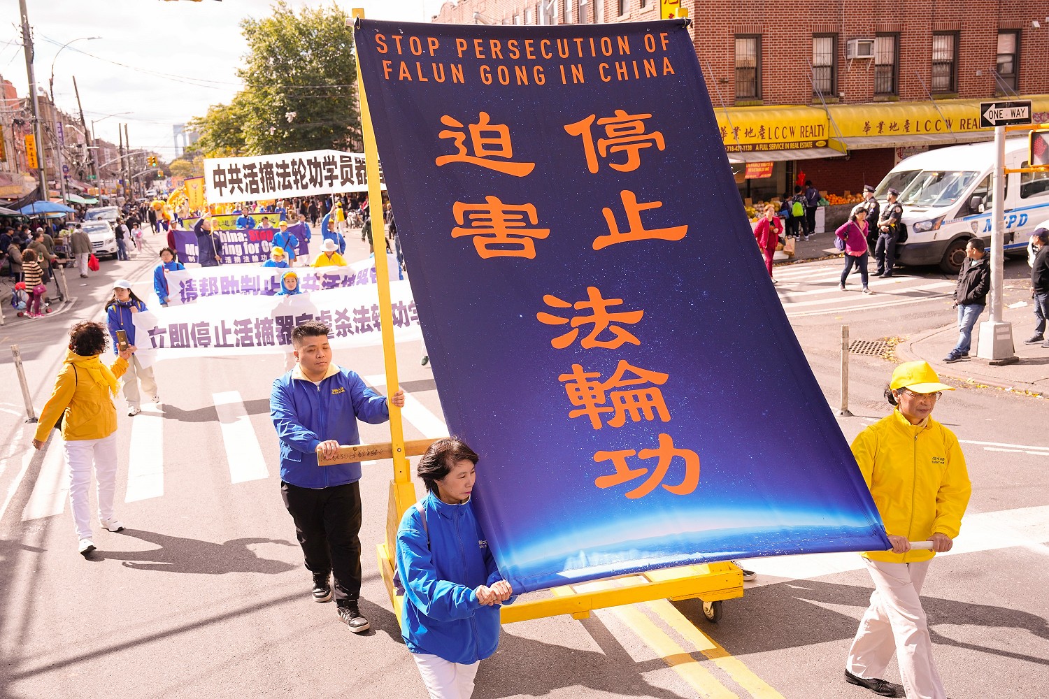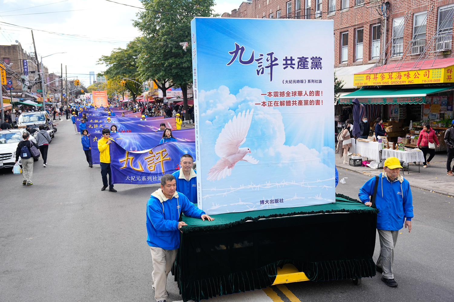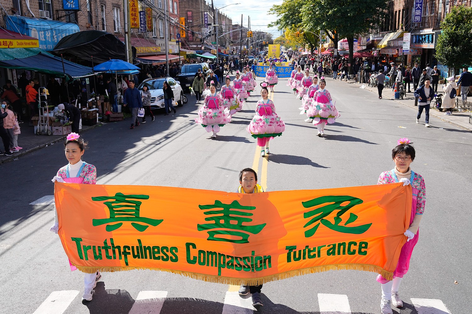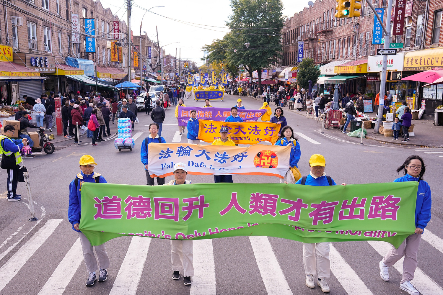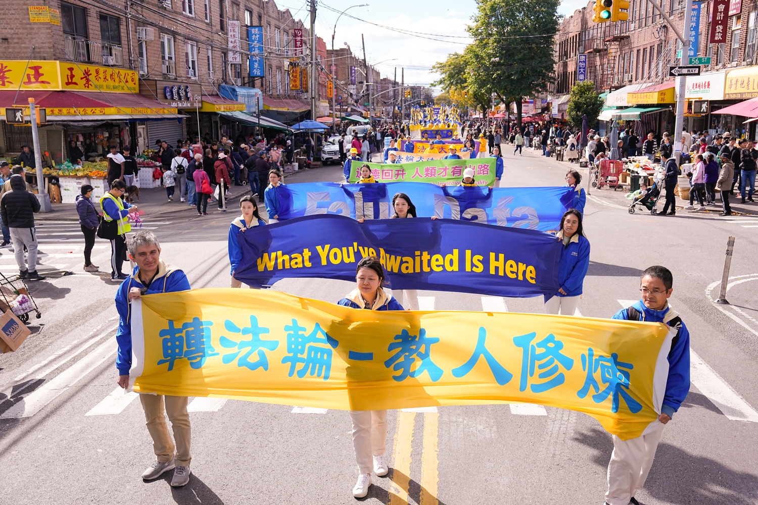 图1~11:二零二三年十月十五日,千名中西族裔法轮功学员,在纽约的第三大华人小区—布鲁克林八大道举行大游行,呼吁停止迫害法轮功,声援4.2亿中国人退出中共党团队组织。