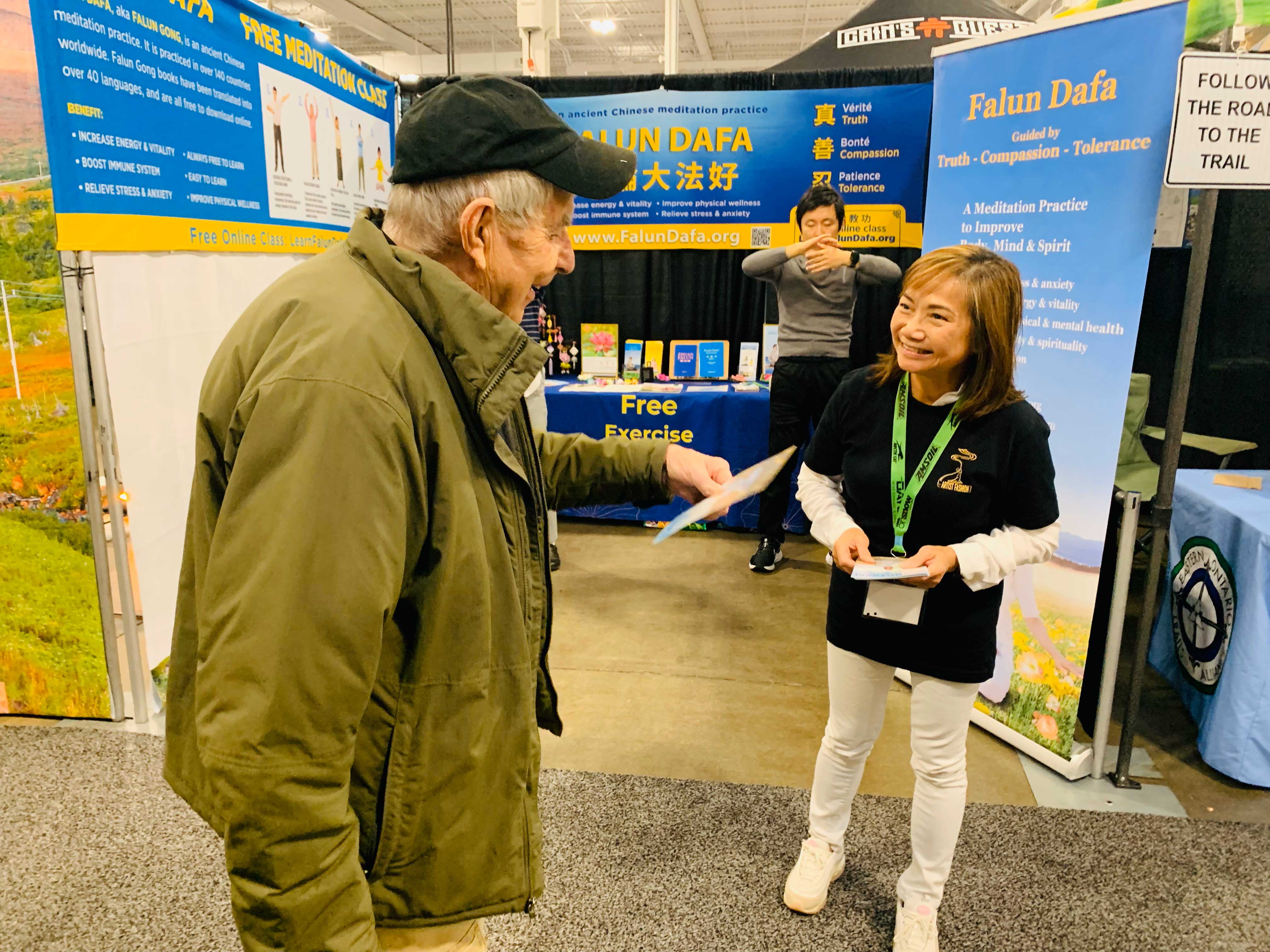 学员接着说,法轮功的自我提升体系中,除了炼功,还要遵守真、善、忍的原则。史蒂夫说,“在这里,我就能感受到真、善、忍的场围绕着展位,所以这个地方让人感到平静、美好。人们能感受到学员的包容和善意,我认为所有人都应该来学。”