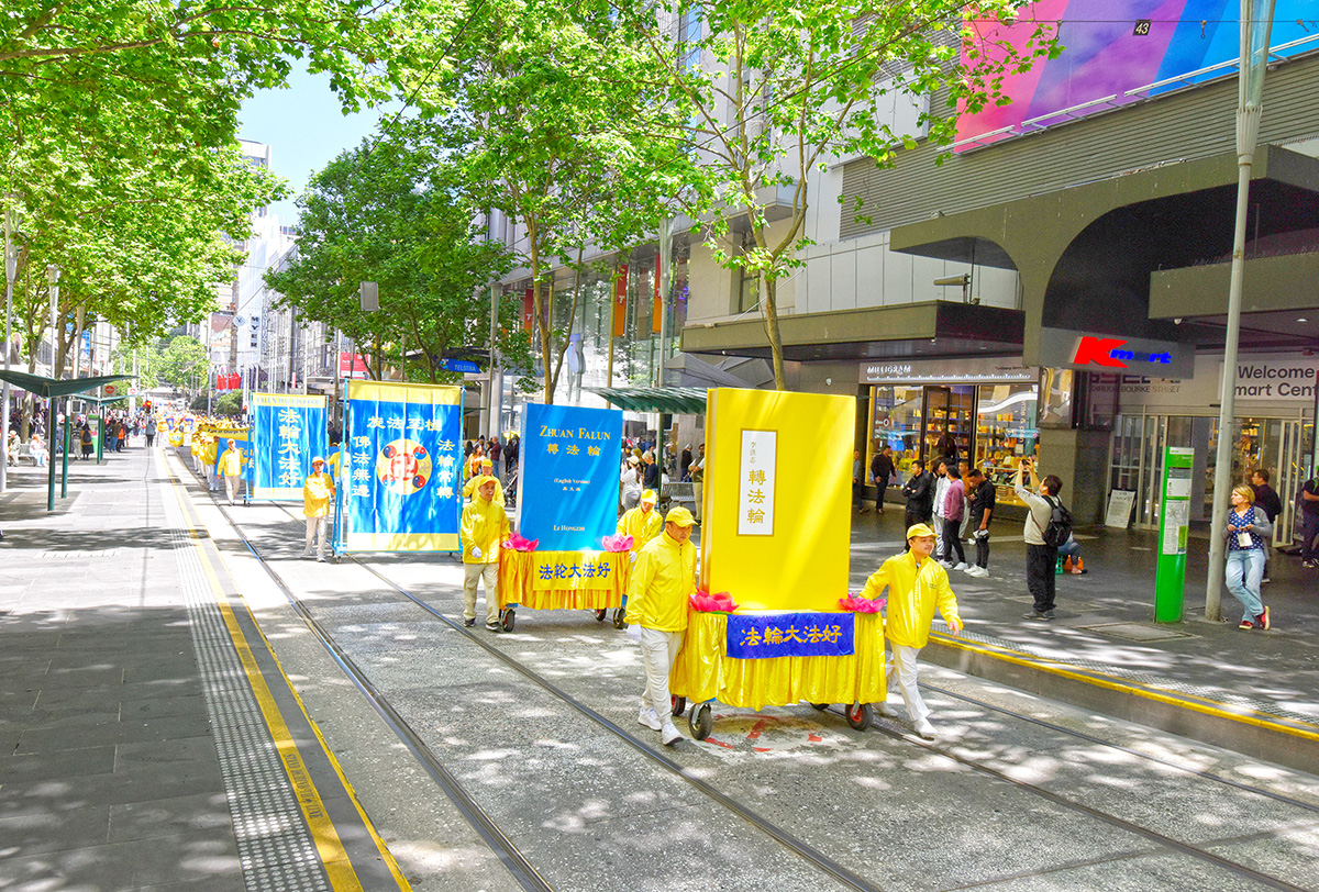 【明慧网二零二三年十月二十八日】(明慧澳洲记者站采访报道)二零二三年十月二十七日,南半球的春夏之交,澳洲的文化之都墨尔本迎来了全澳各地以及新西兰、越南等地的部分法轮功学员,他们在市中心举行了大游行。当地警方出动了警车和多名警员,为游行队伍开道、护航。