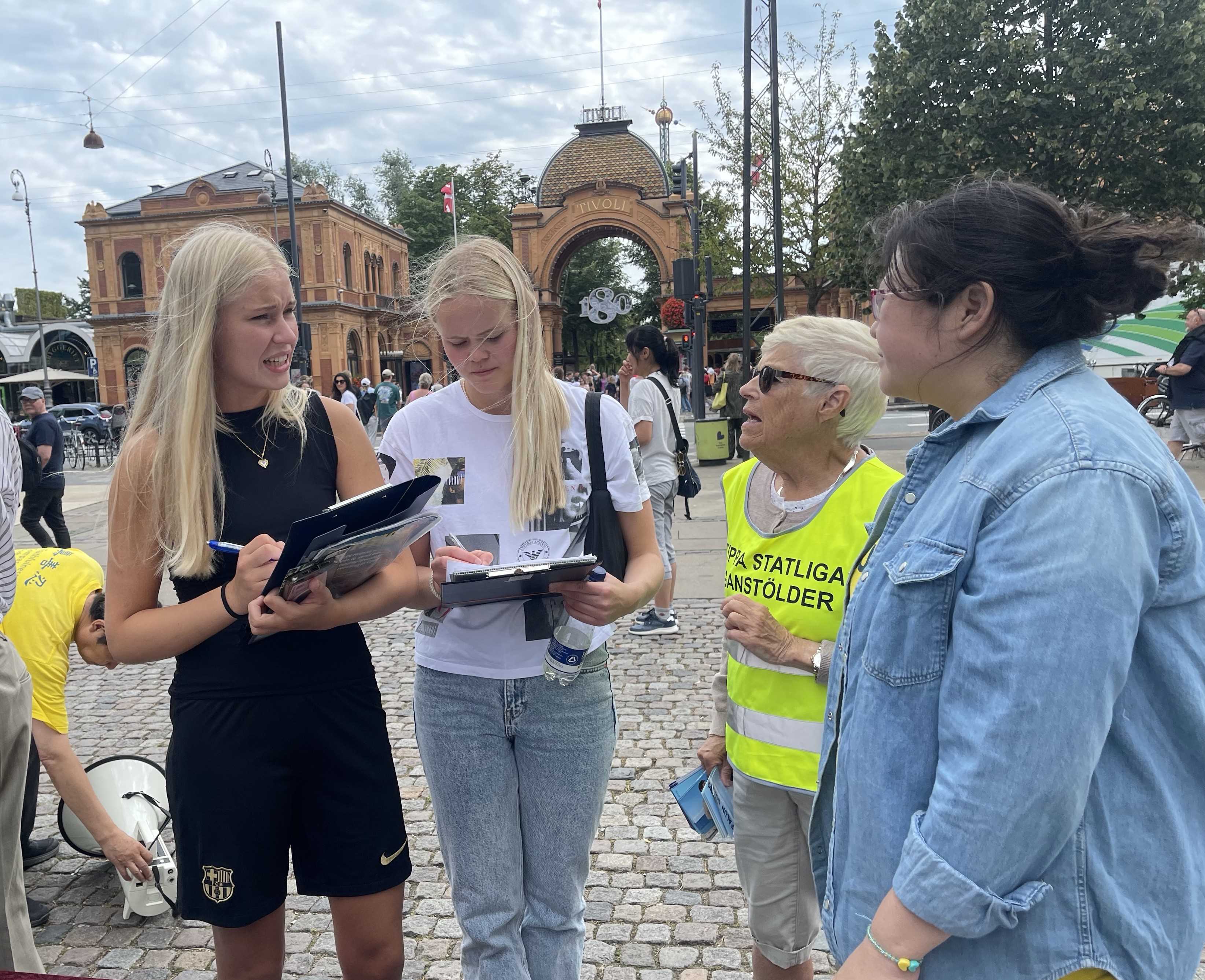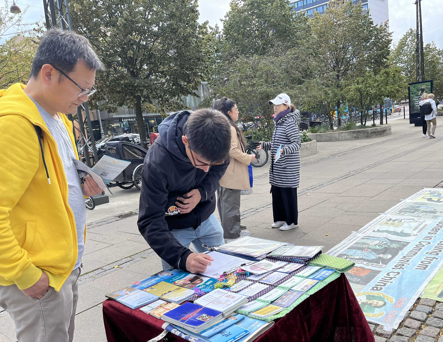 【明慧网二零二三年十月四日】(明慧记者林彤丹麦哥本哈根报道)位于北欧的丹麦王国,从春季一直到秋季,是人们在户外享受美好自然环境的好时节。每逢周六,丹麦与瑞典部分法轮功学员在丹麦首都哥本哈根市中心炼功、讲真相,他们向人们讲述法轮大法的美好,以及揭露中共迫害法轮功的真相。了解真相的人们签名支持解体中共。