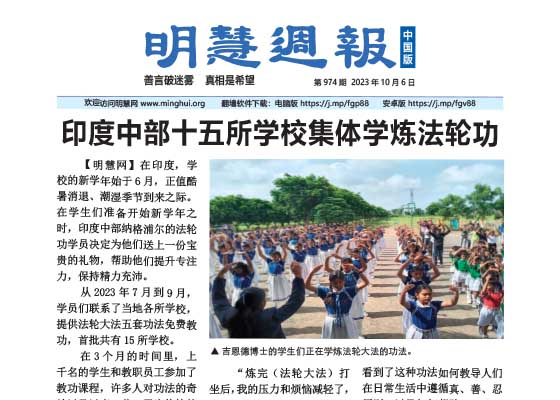 印度中部十五所学校集体学炼法轮功