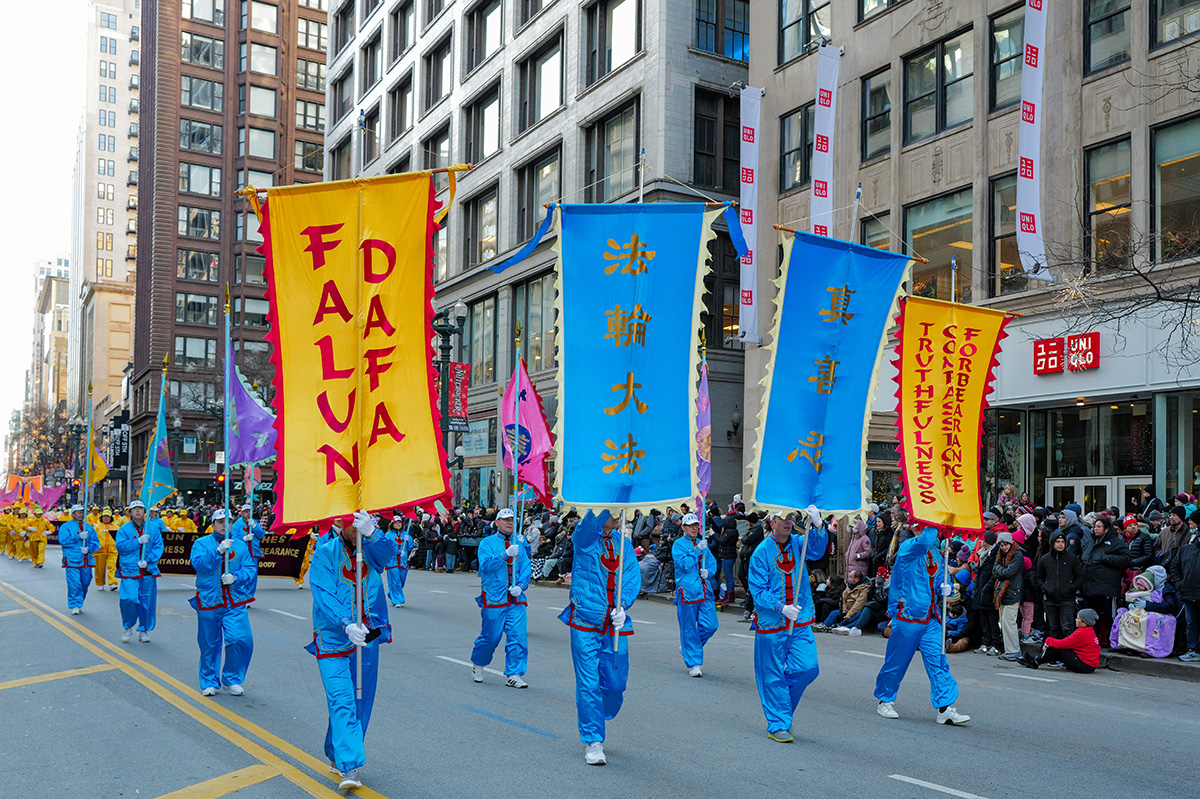 【明慧网二零二三年十一月二十四日】二零二三年十一月二十三日,法轮功学员参加了第八十九届芝加哥感恩节大游行。芝加哥感恩节大游行被“Time Out”杂志誉为“美国第二大感恩节游行”。大清早,街道两旁站满了热情的人群,难以计数的观众也同时通过电视和网络直播观看游行。