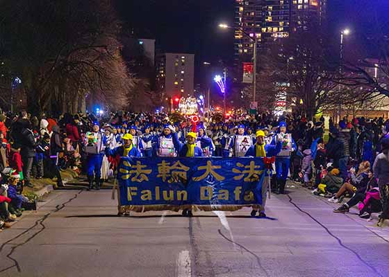 十一月二十五、二十六日周末,加拿大多伦多法轮功学员参加了周边四个城市的圣诞游行,将法轮大法的美好分享给了两旁观众。有观众表示:真、善、忍是神传给人的真言。