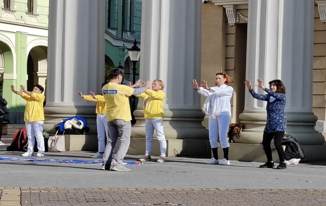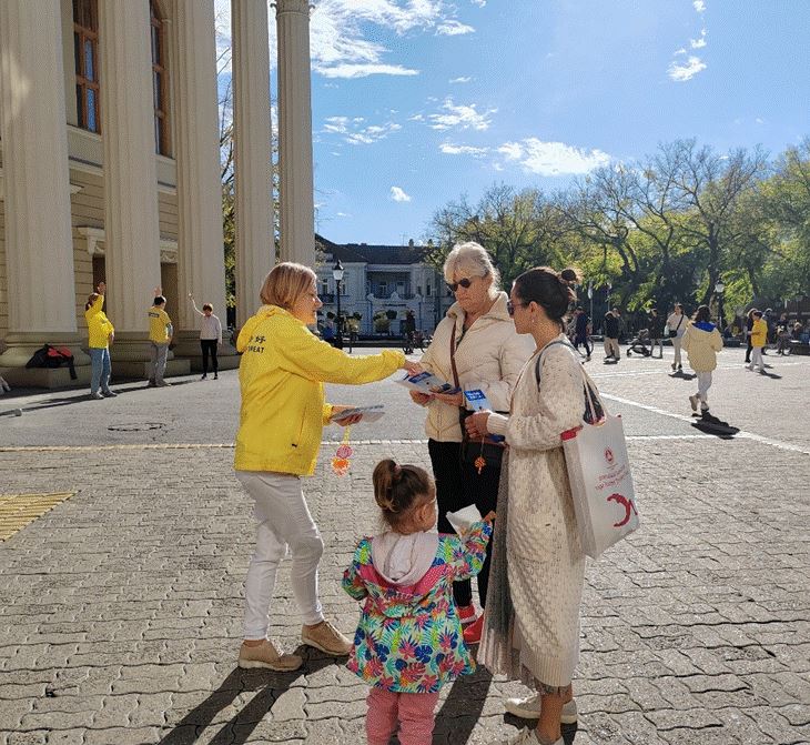 【明慧网二零二三年十一月八日】苏博蒂察市是匈牙利和塞尔维亚的边境城市。二零二三年十一月四日中午十二点至下午二点,塞尔维亚部分法轮功学员在苏博蒂察(Subotica)市中心广场举行了弘法和讲真相活动。