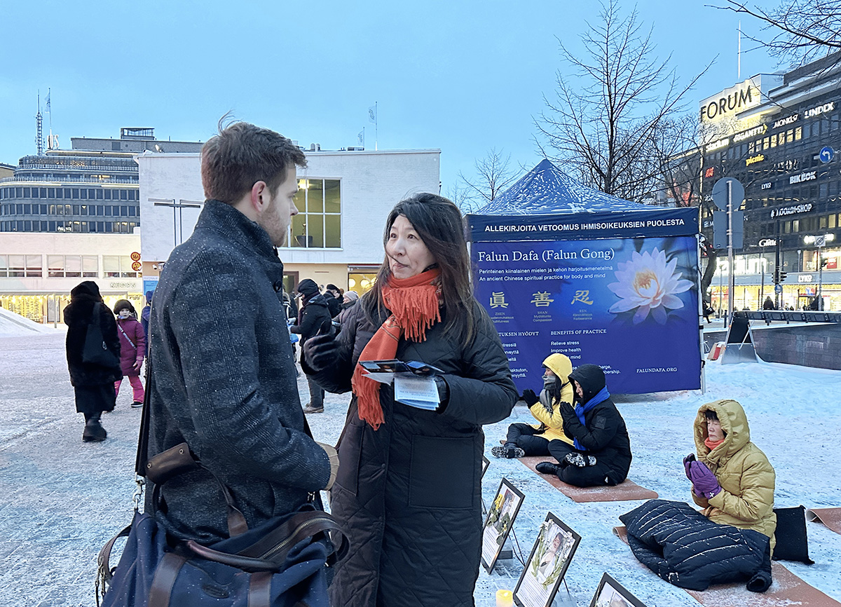 ![]() 图2:二零二三年十二月九日,法轮功学员在干比(Kamppi)广场举行活动,呼吁停止迫害。 |