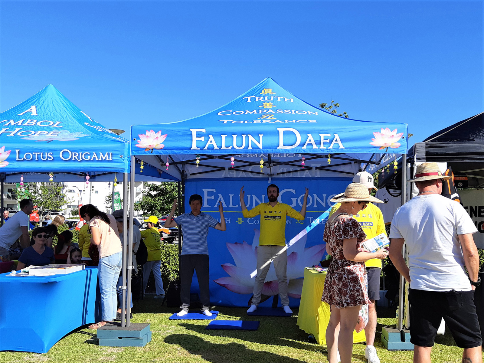 十二月九日,在珀斯艾伦布鲁克举行的圣诞庆祝活动中,法轮功学员设立了展位,向民众演示优美舒缓的五套功法,介绍法轮功。有的人在现场学炼动作后,表示“感到能量很强,很有效”,还有的人表示“我向每个人推荐法轮大法”。