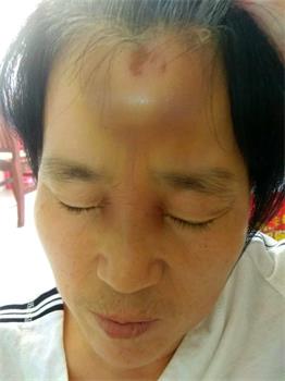 后来,张京琼闯出看守所,她的额头、手臂、大腿、背部受伤严重(见照片为证)。另外,警察的殴打也造成张京琼的内伤,她回到家,骨头、内脏也感觉很痛,手臂都抬不起来。